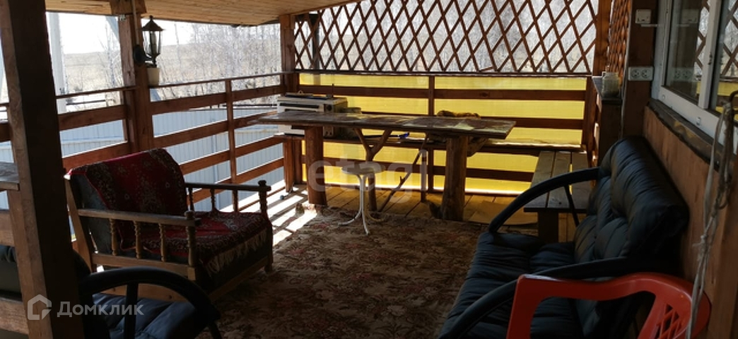 На территории участка находится 2-х этажный дом с великолепной большой верандой. В доме печное отопление и теплые полы. Проснувшись и выйдя на веранду с чашечкой кофе, можно послушать пение птиц, вдохнуть свежесть утреннего воздуха, а в вечернее время увидеть звездное небо. На первом этаже расположена летняя веранда, кухня-веранда, 2 спальни, санузел (есть уличный туалет). На втором этаже одна комната-спальня с отличными видовыми характеристиками. Канализация - септик.
