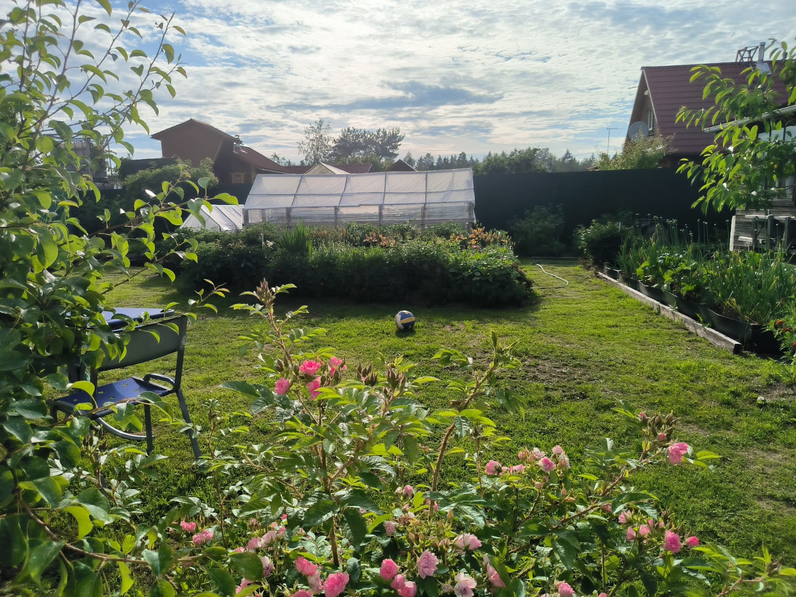 Участок 6 соток разработан, огорожен забором из метало-профиля, с калиткой и въездными воротами.