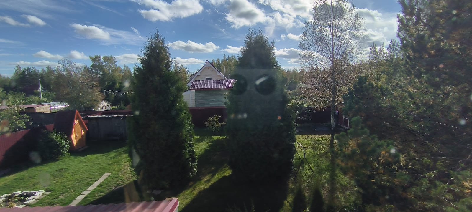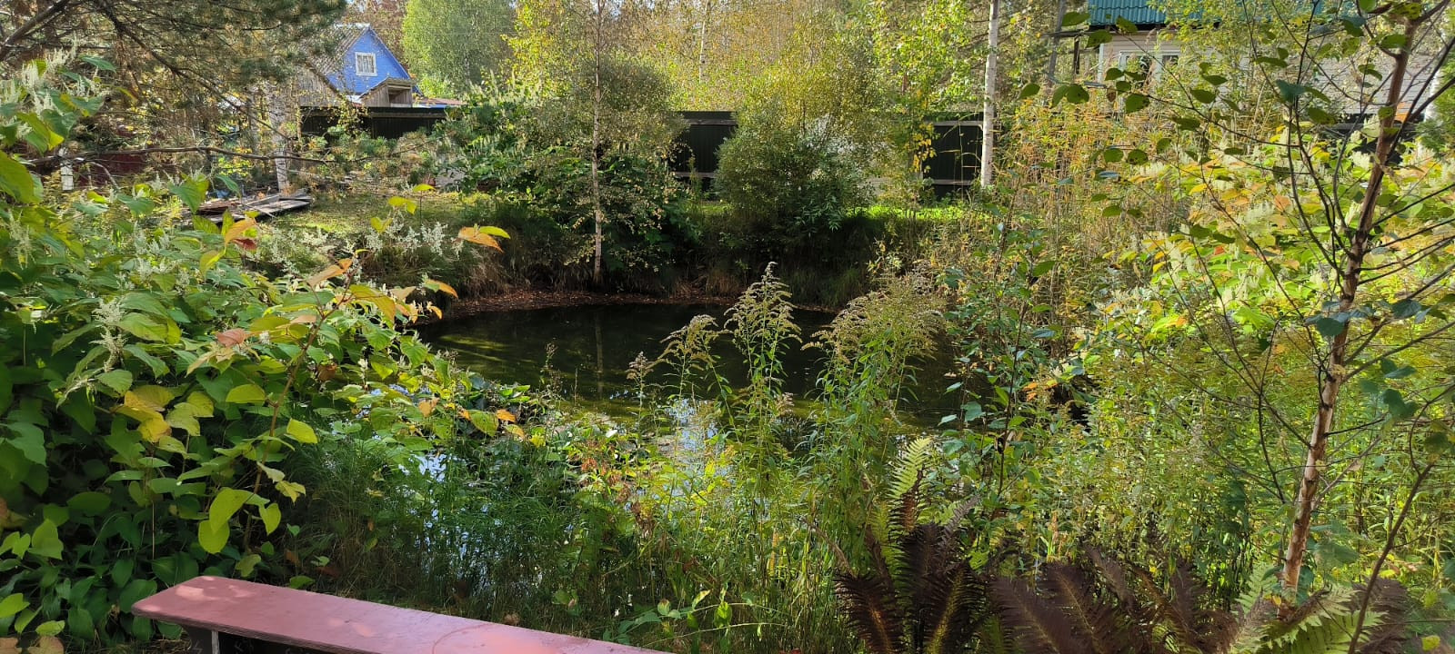 Много посадок: туя,яблони,вишня,смородина. Колодец для поливки и свой пруд с рыбой.