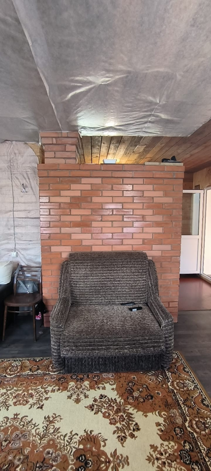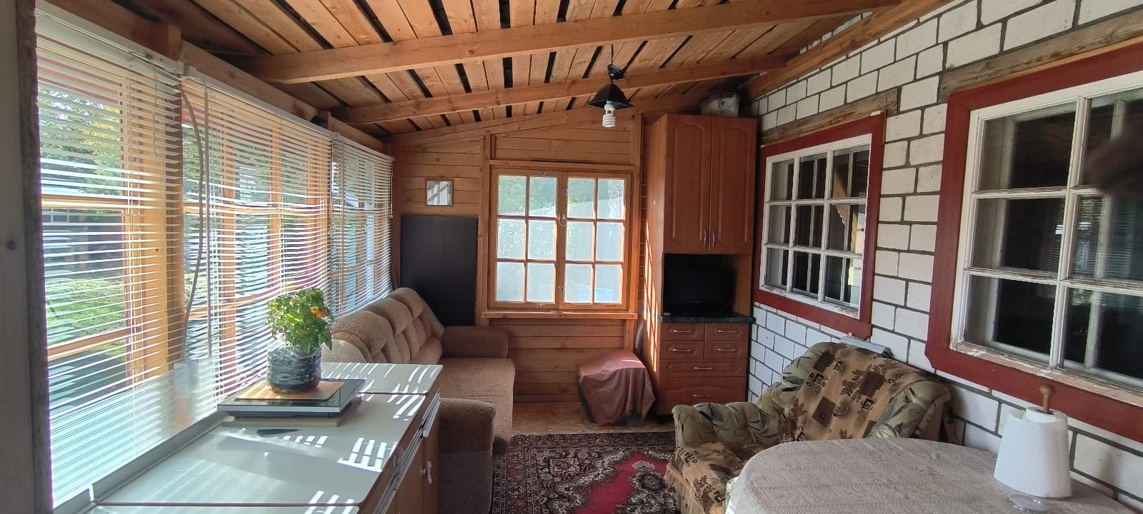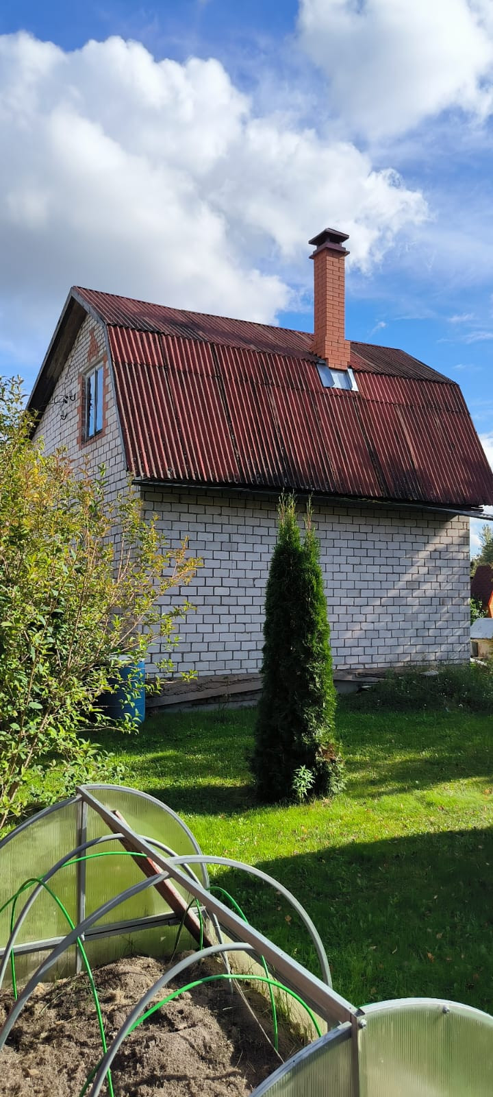 Крыша покрыта ондулином.