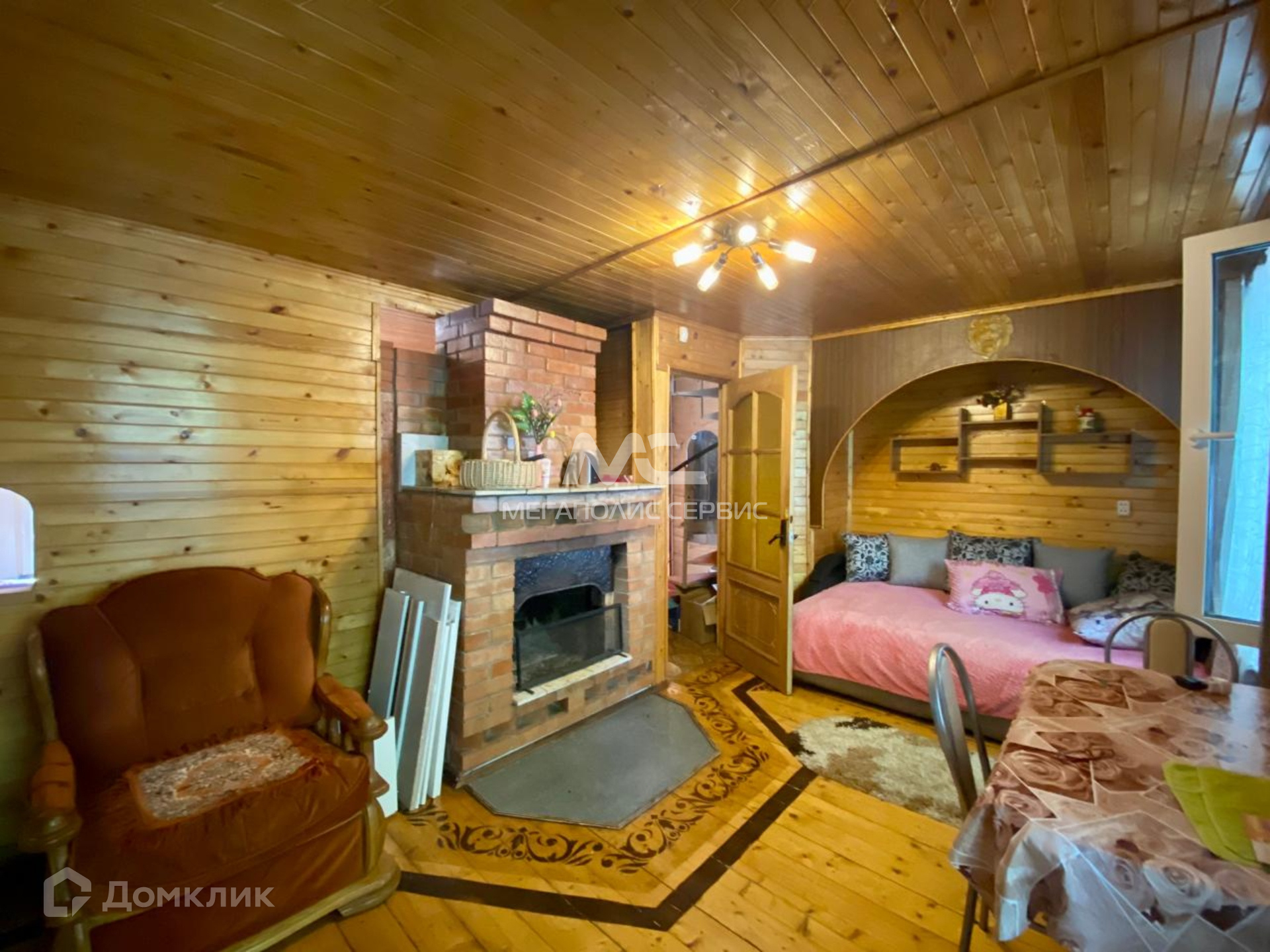 Двух этажный дом на высоком ленточном фундаменте, выполнен из деревянных материалов, утеплен мин.ватой. Крыша - металлочерепица. Первый этаж облицован кирпичем, второй - эмитация бруса. Есть подвал. Внутри дом отделан вагонкой. Пол - доска+линолеум. Все необходимые коммункации в доме. Установлен электрокотел, а также в наличии функционирующие печь и камин. На первом этаже кухня, санузел, 2 (две) комнаты, второй этаж мансардный - 2 (две) комнаты.