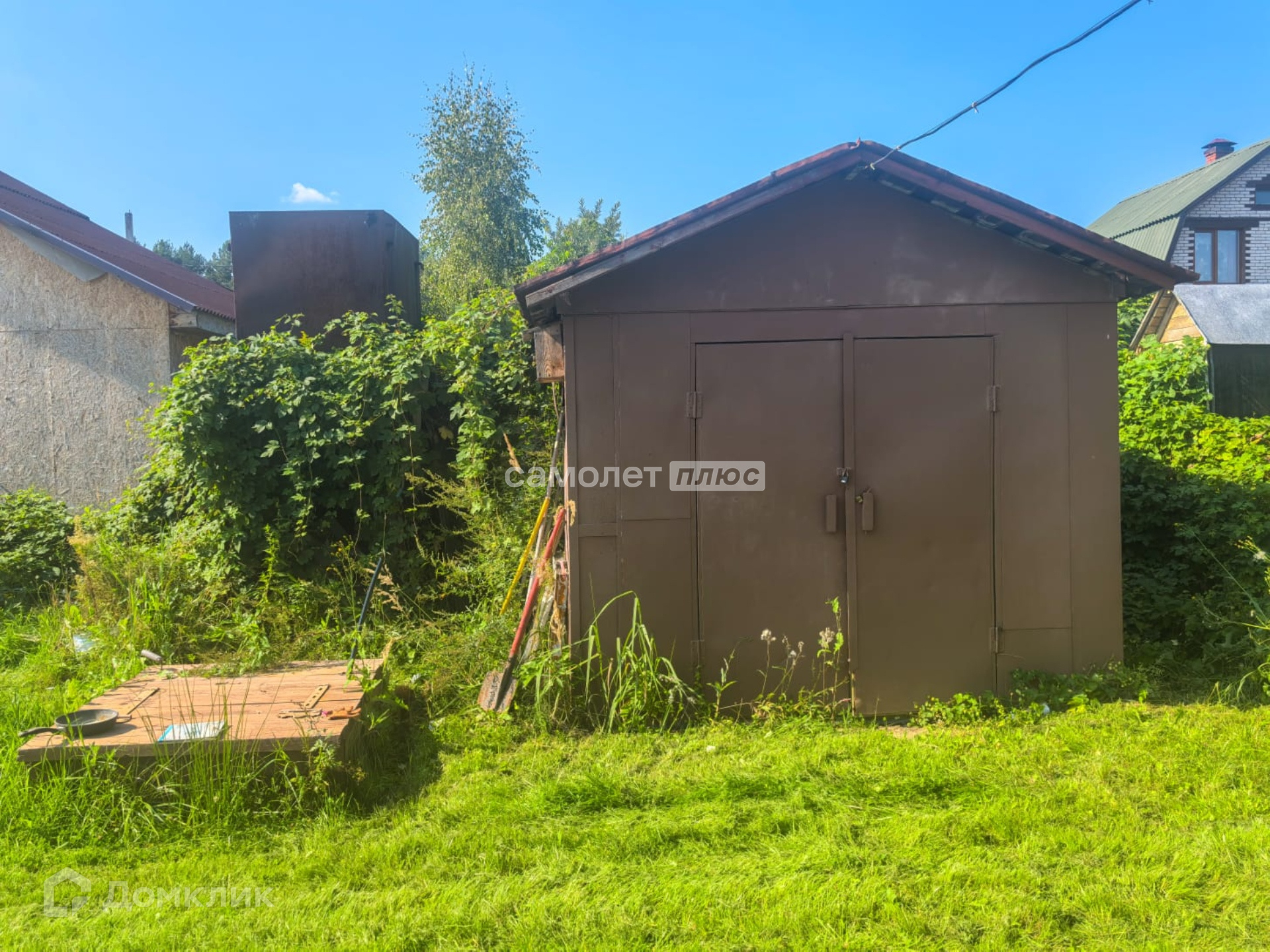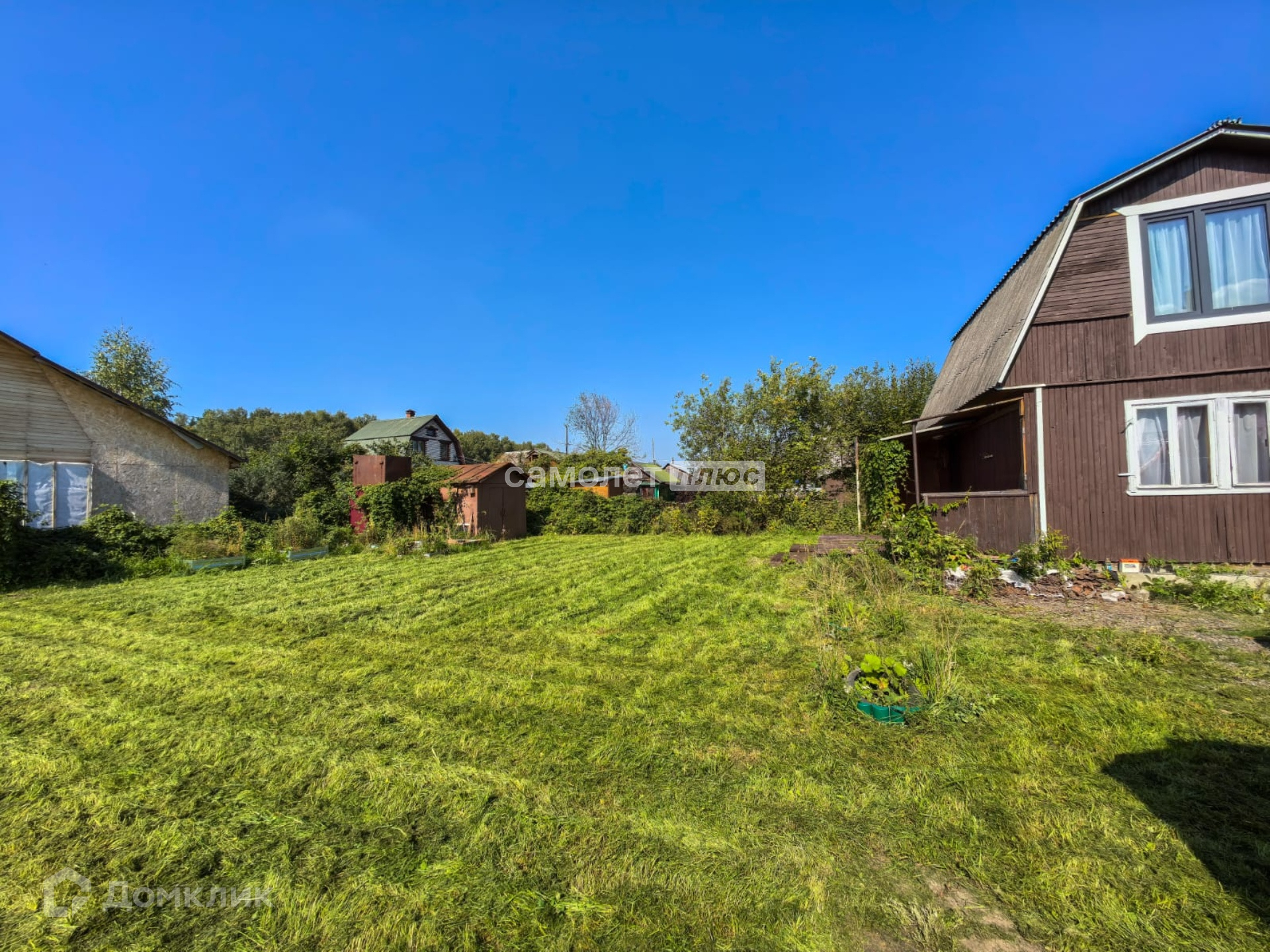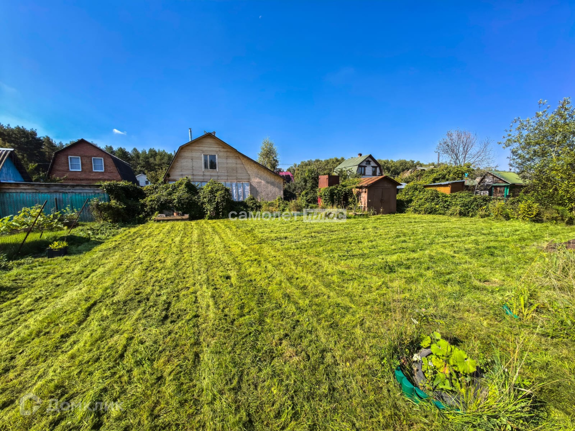 Участок 5.3 соток. Зарегистрирован с определением границ. По всему периметру огорожен металлическим забором: передняя часть -профлист, по бокам и задняя часть- сетка рабица. Прямоугольный. Правильной формы. Высоко поднят. В период весеннего половодья и дождей не затапливается. Ухожен. Посажено много садовых деревьев и кустарников. Из построек на участке: летний дом, металлический хоз. блок для садового инвентаря, колодец, летний туалет.