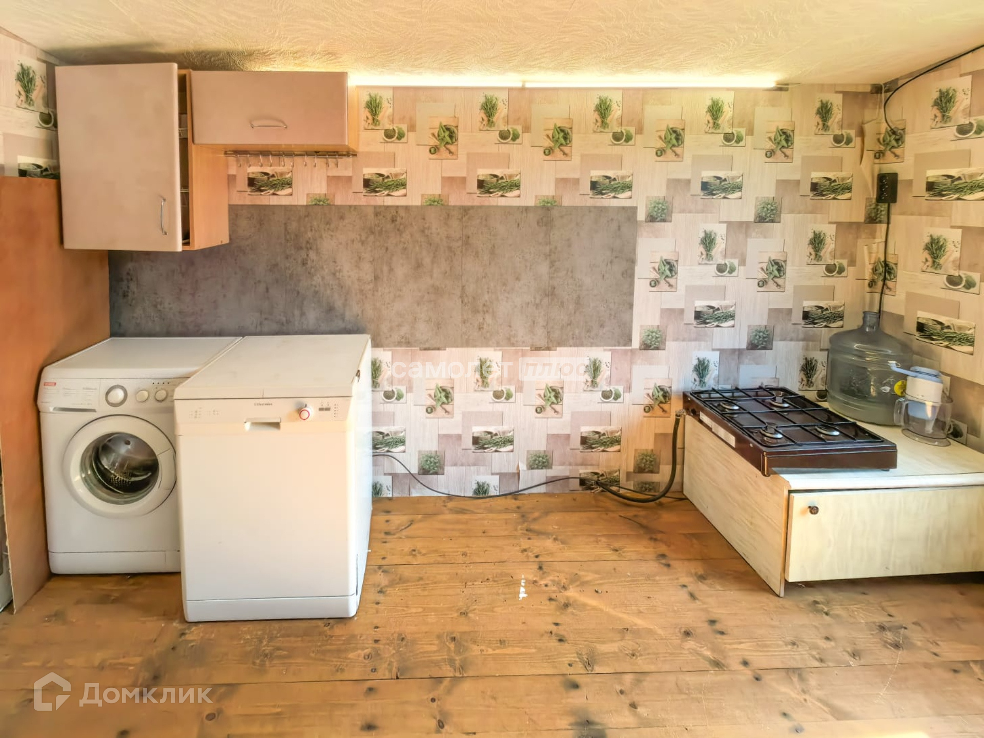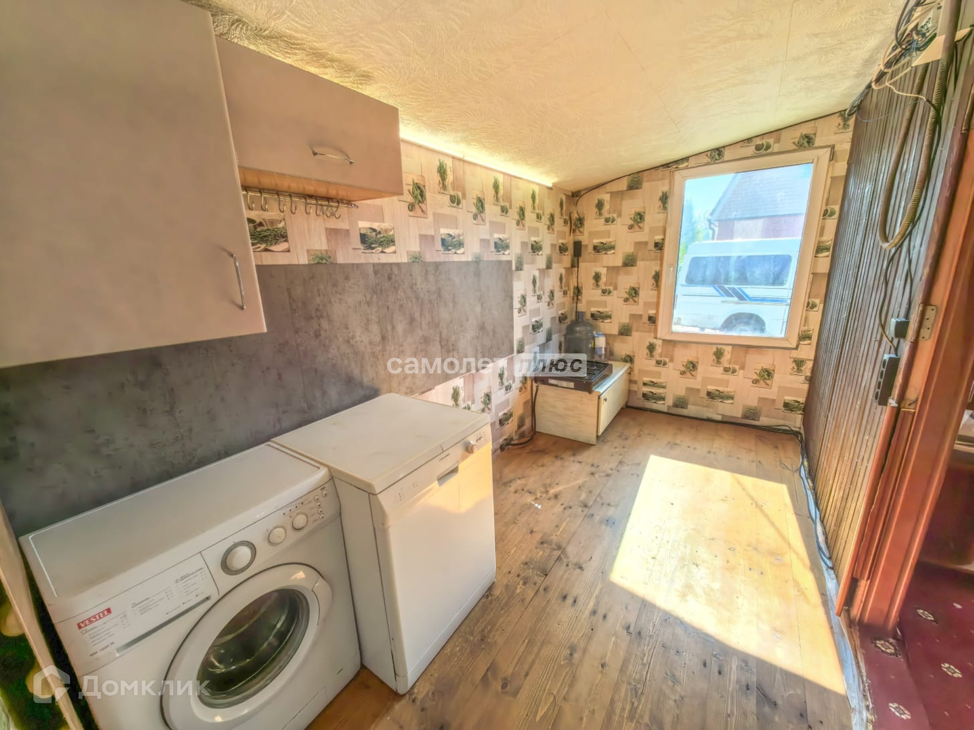На первом этаже: терраса, прихожая, кухня, с/узел, жилая комната.