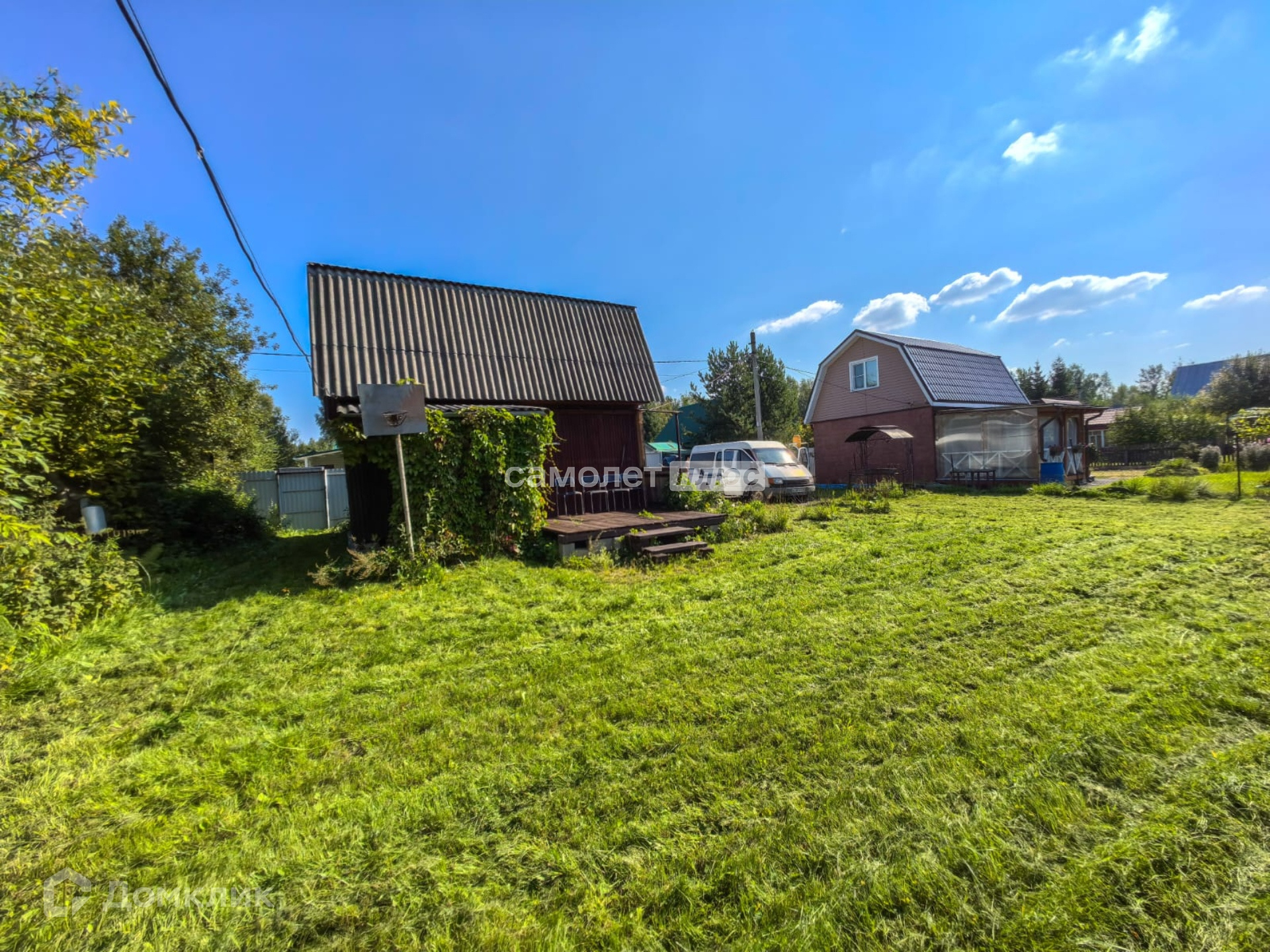 Основное строение - двухэтажный каркасно-щитовой дом. Зарегистрирован. Ленточный фундамент. Крыша покрыта шифером. Дом утеплен минватой. Из коммуникаций в доме: электричество, вода (колодец), канализация. Отопление - электрические конвекторы.