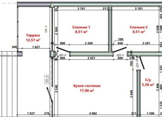 Общая площадь: 53 м2