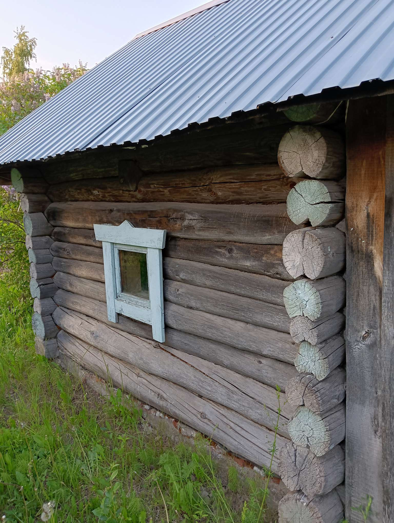 На участке  баня с предбанником и подсобка под общей крышей (не новая постройка, все в рабочем состоянии). Все это расположено в глубине участка и не помешает строительству дома.