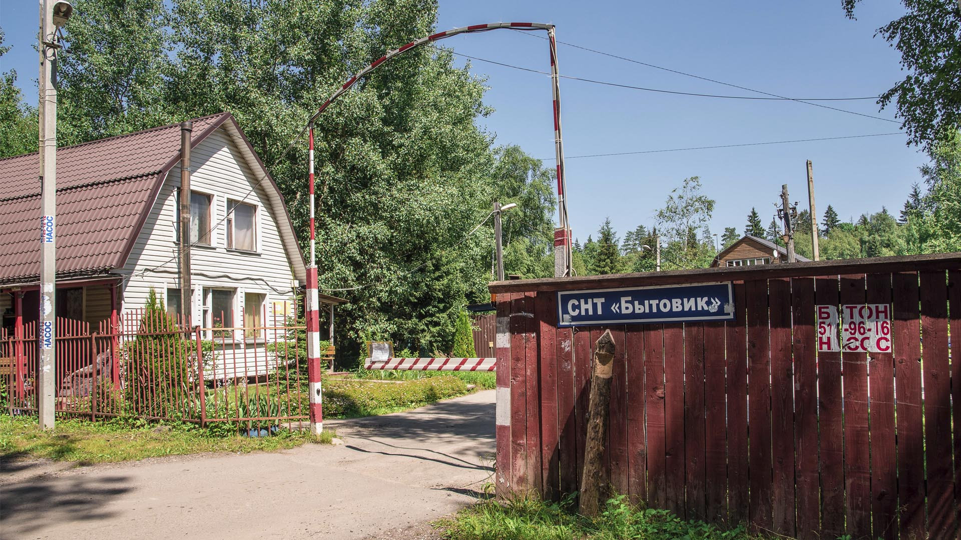 СНТ под охраной, при въезде шлагбаум, камера видеонаблюдения. Мусор вывозится, дороги чистятся и освещаются. При въезде есть детская площадка.