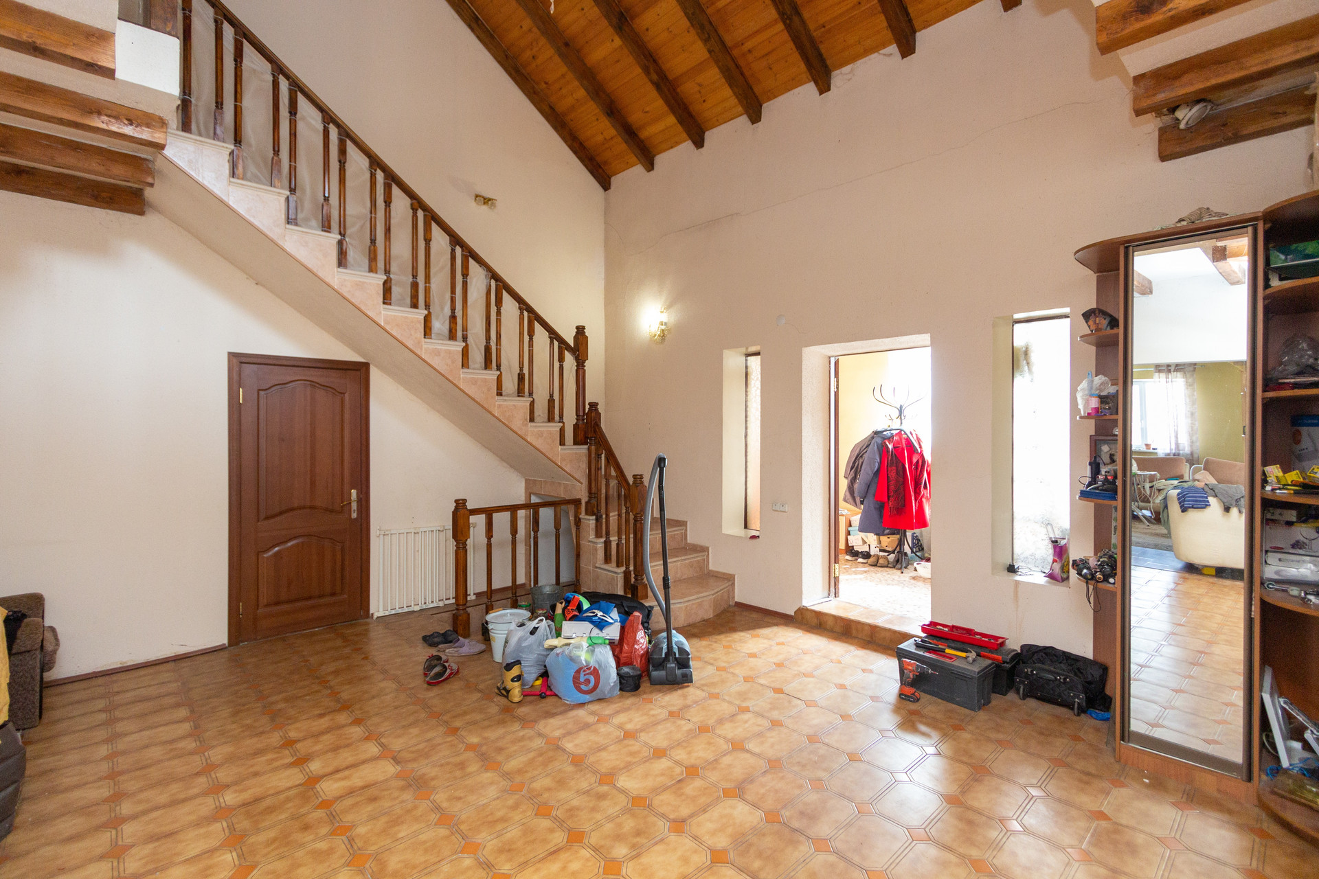 1 этаж: прихожая, холл, кухня - гостиная, ванная, с/узел, кабинет, выход во двор.