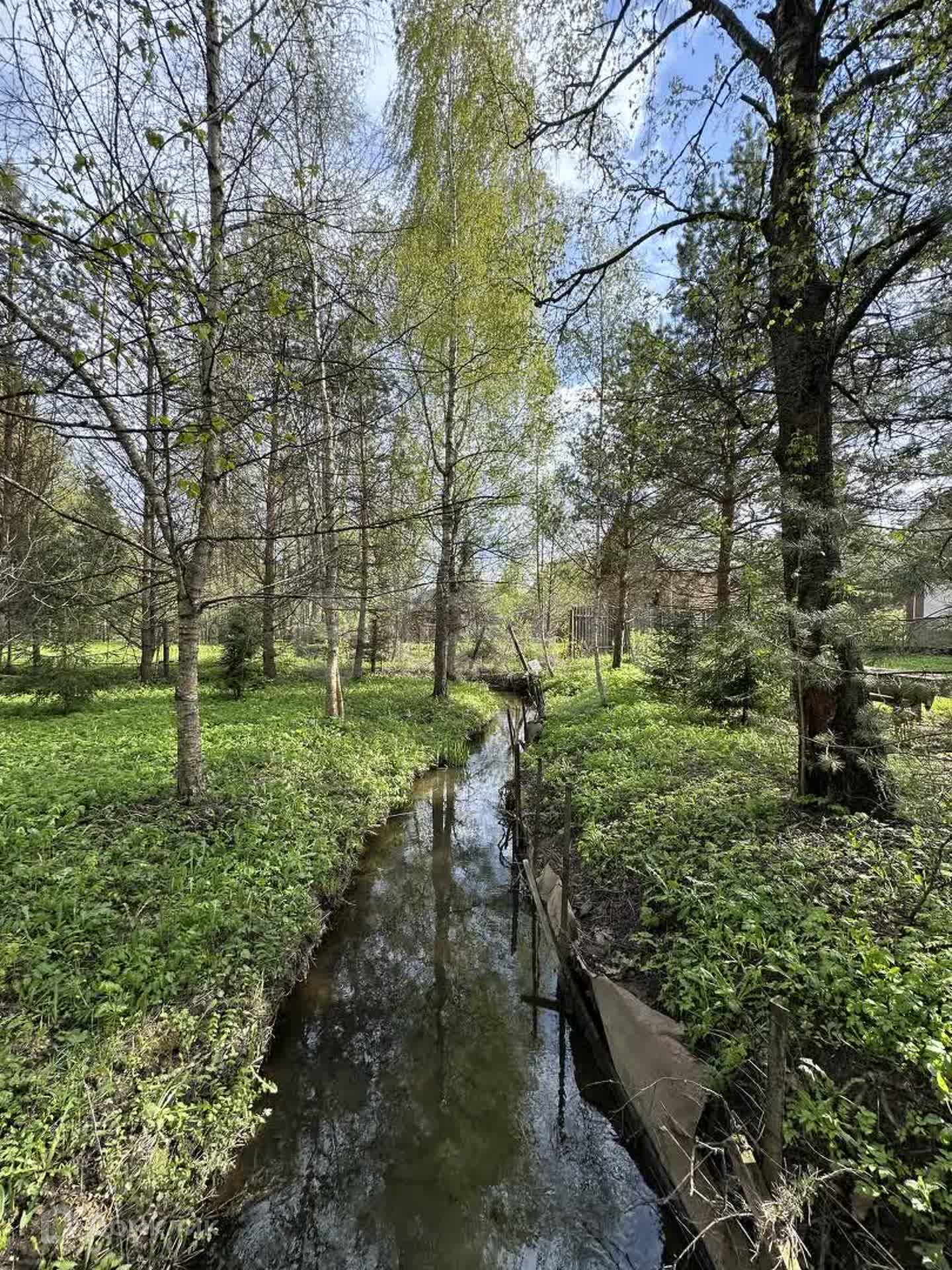 На участке есть хвойный лес, плодовые деревья и протекает ручей. По документам участок составляет  8 соток , но есть самозахват,  по желаю его можно оформить в собственность.