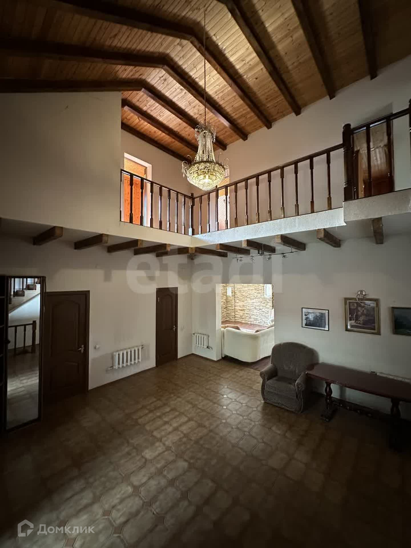 - На 1 этаже расположена просторная кухня-гостиная 64,2 кв.м., просторный холл 32,7 кв.м., комната  18,2 кв.м., ванная и санузел