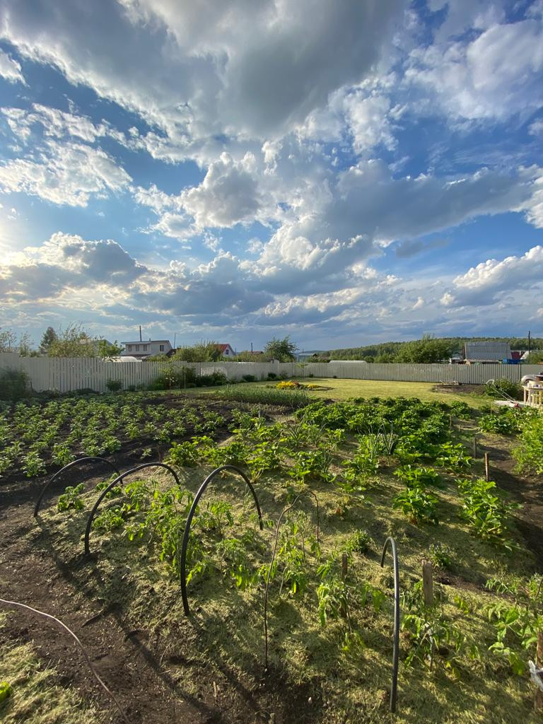 Участок ухоженный, 1/2 участка выделена под огород, вторая половина газон.