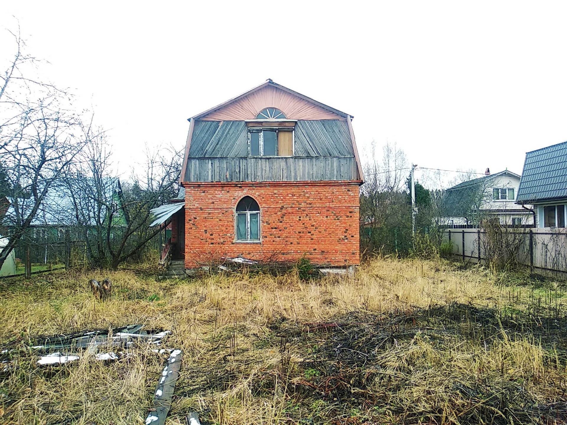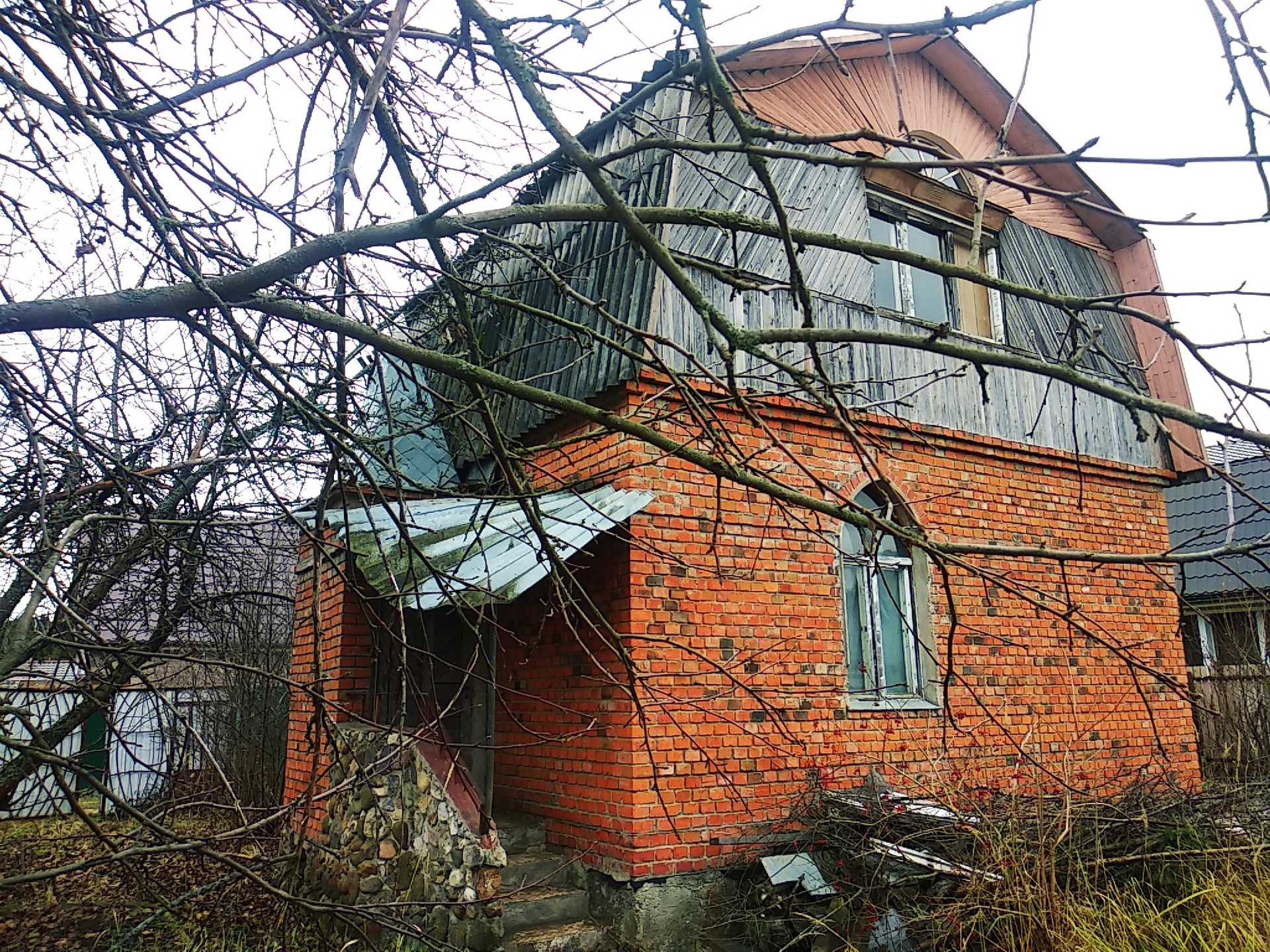 Дом-6х5 м; кирпичный, общая площадь-60 кв.м. Первый этаж с отделкой, на полу паркет, печь и камин, а второй этаж под ремонт.