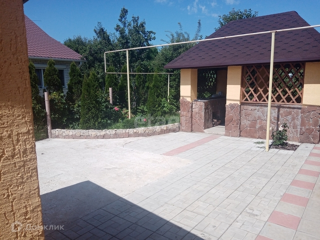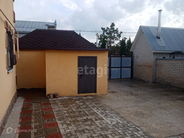 Во дворе уложена тротуарная плитка.