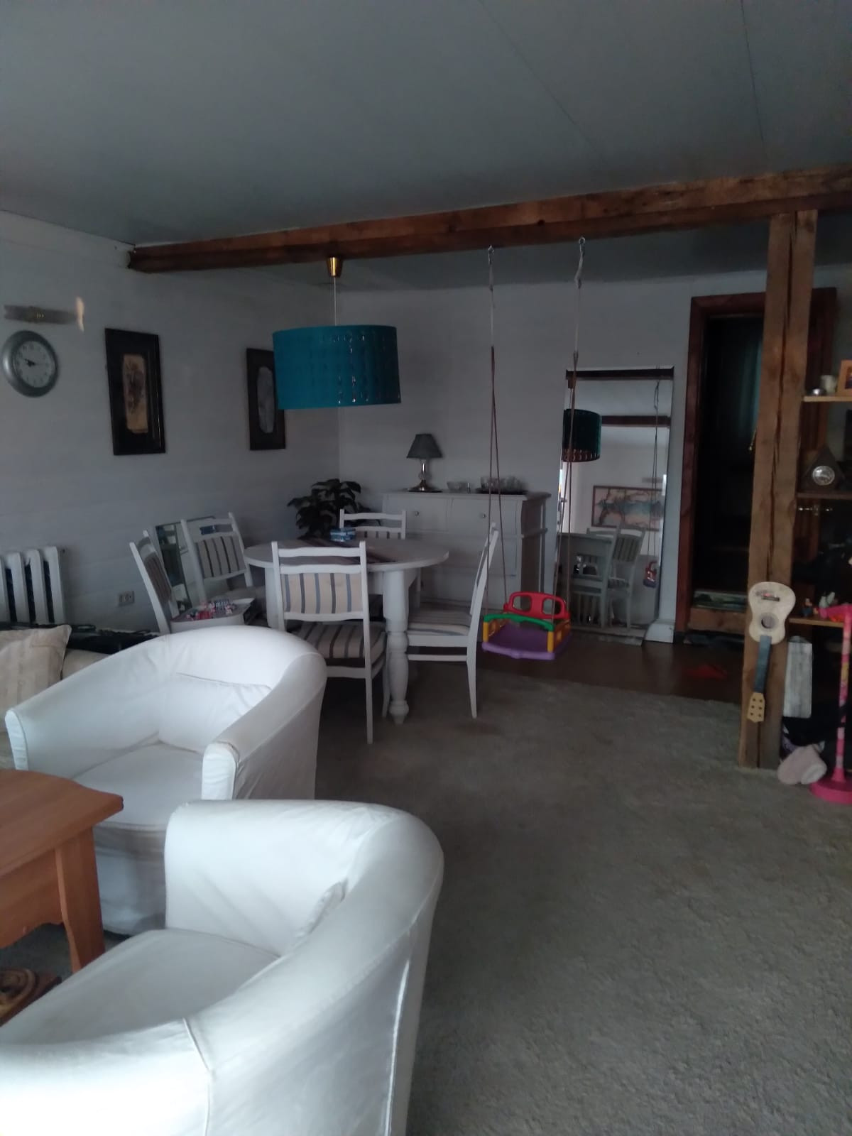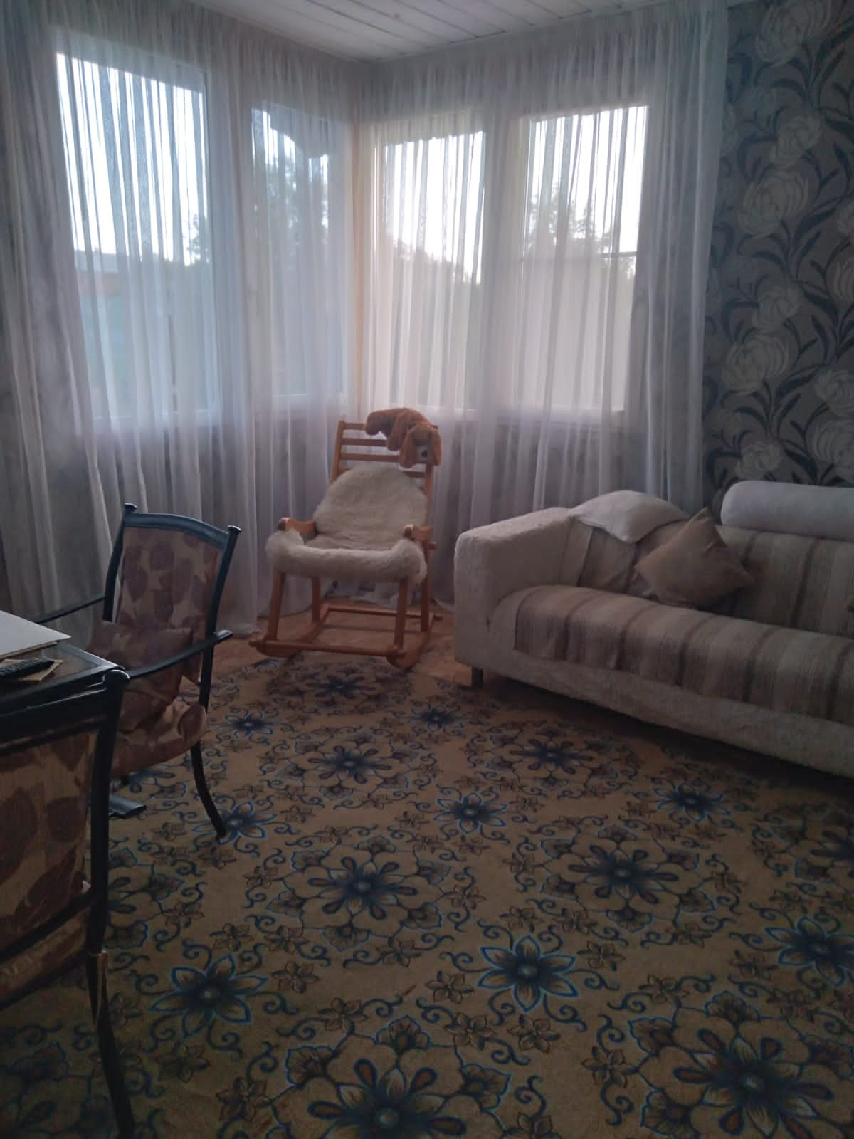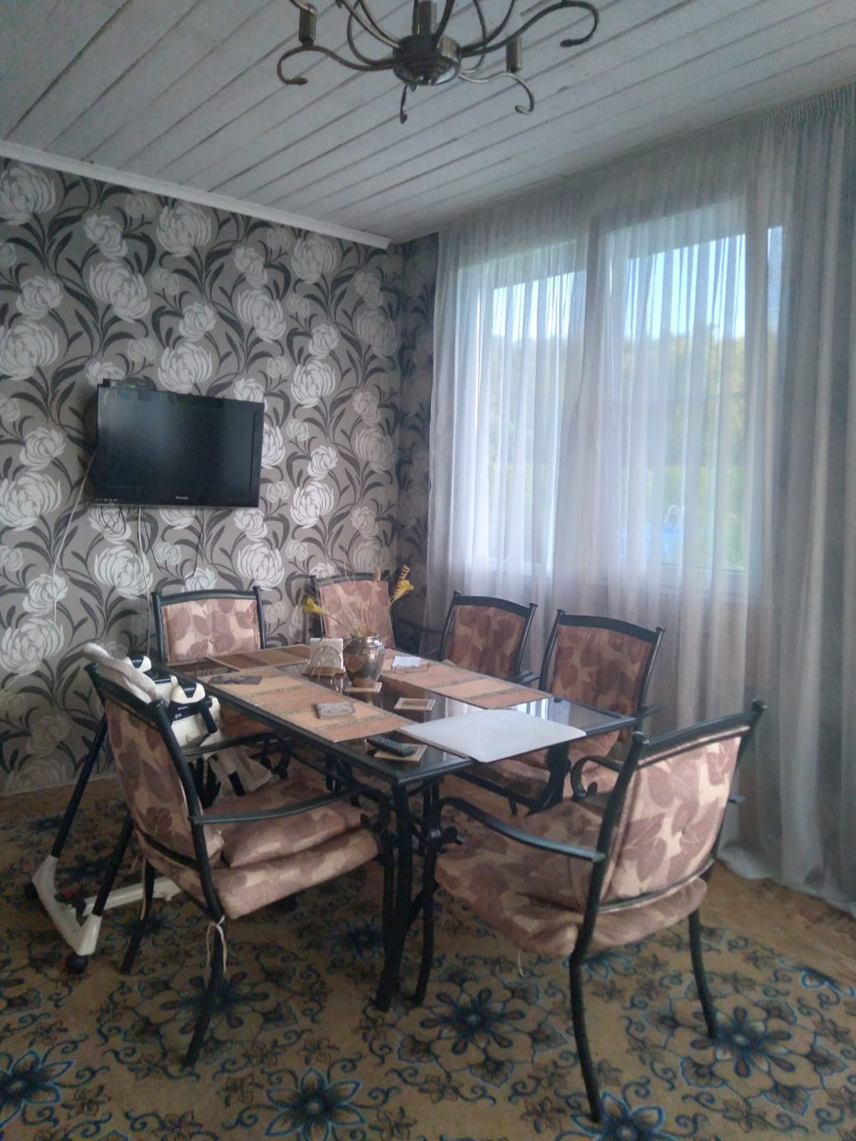Дом из бруса для круглогодичного проживания (еще утеплен - URSA и OSB). Отопление - два котла (твердотопливный и электро), канализация, скважина, охранная сигнализация (тревожная кнопка), евро окна, баня в доме (из бревна, котел Термофор), в столовой камин.