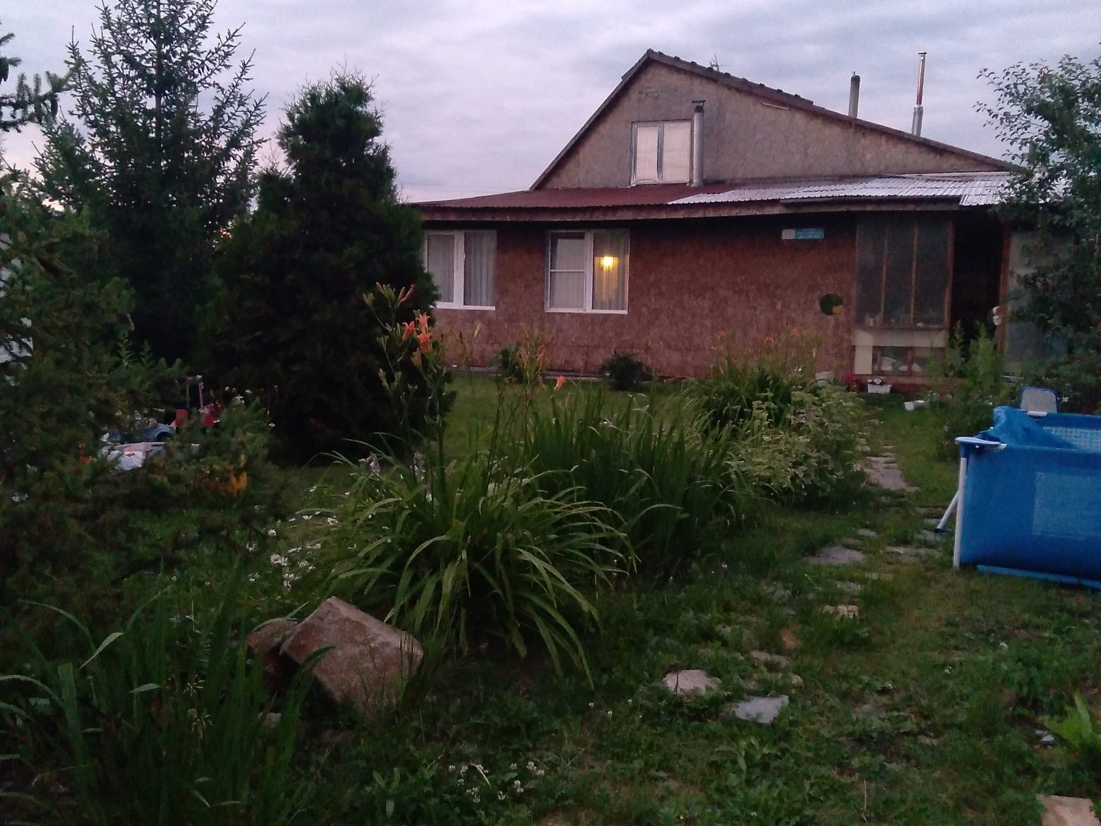 Участок ухоженный- лужайка, сосны, туи, елки, много многолетних цветов. Плодовые деревья - яблони, груши, вишня, крыжовник, малина, жимолость, смородина, слива (в том году посадили абрикос).