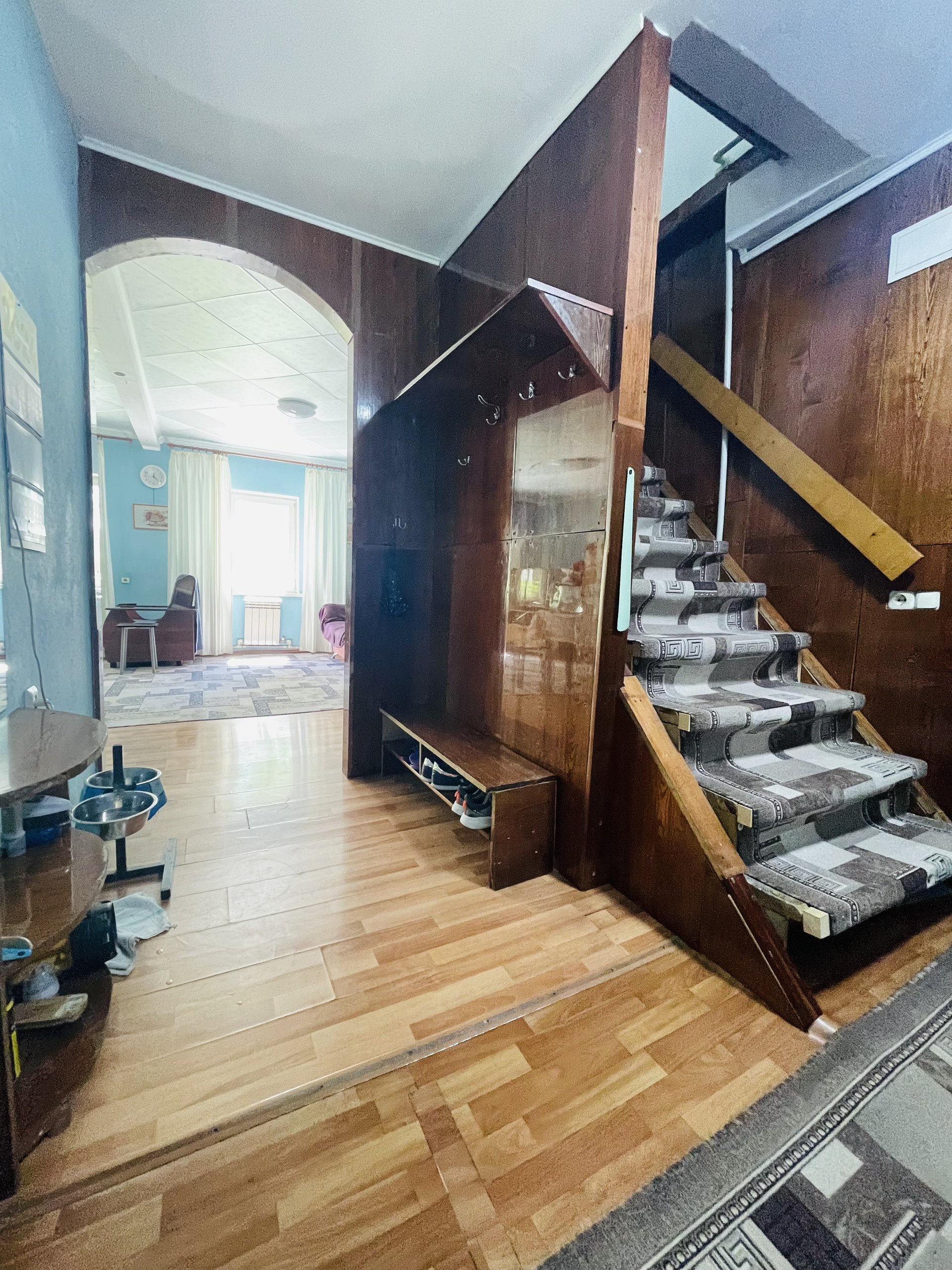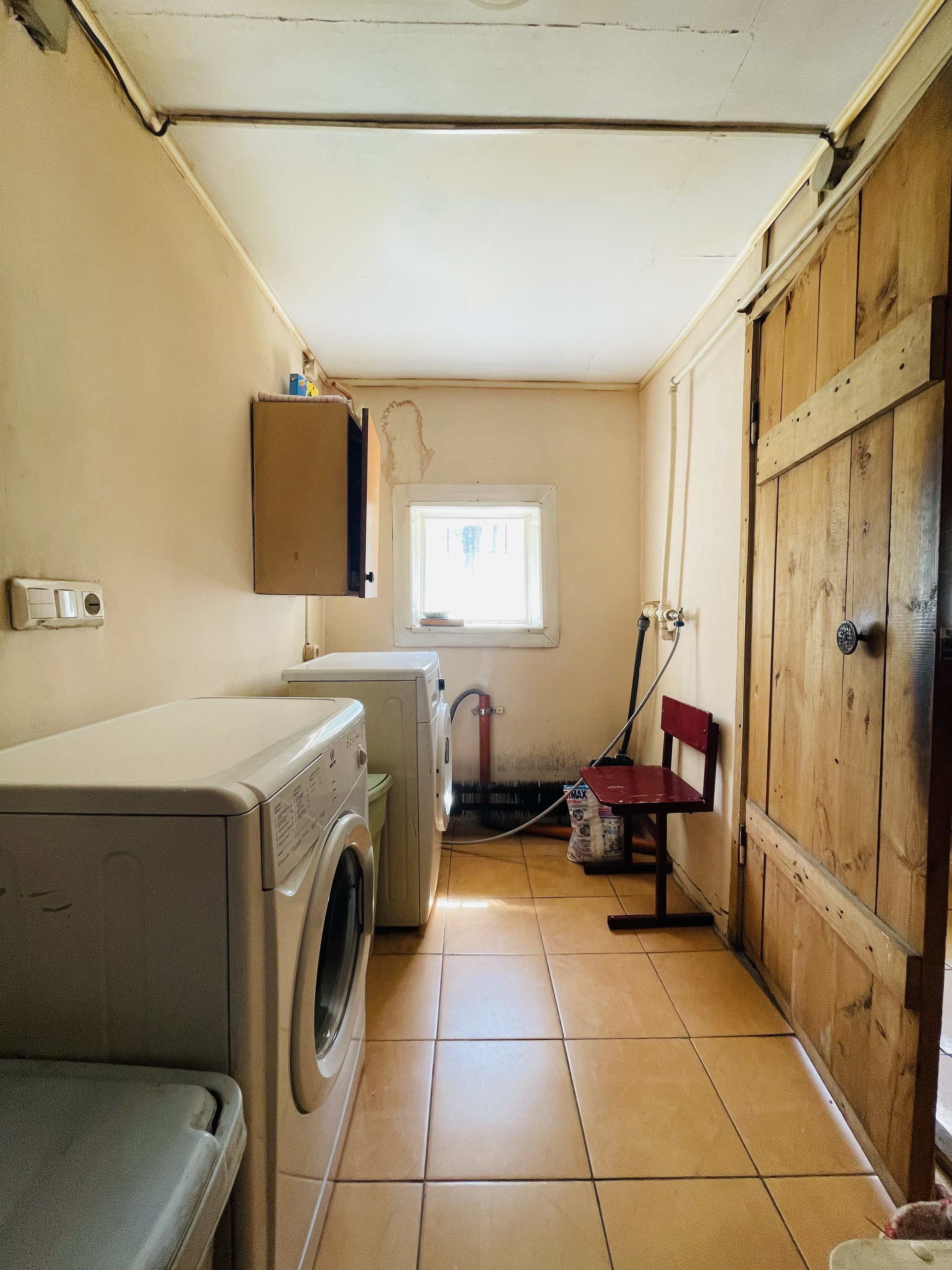 Есть гараж (выход из гараж напрямую в дом), территория у дома заасфальтирована (возможно поставить 4-5 машин), баня.