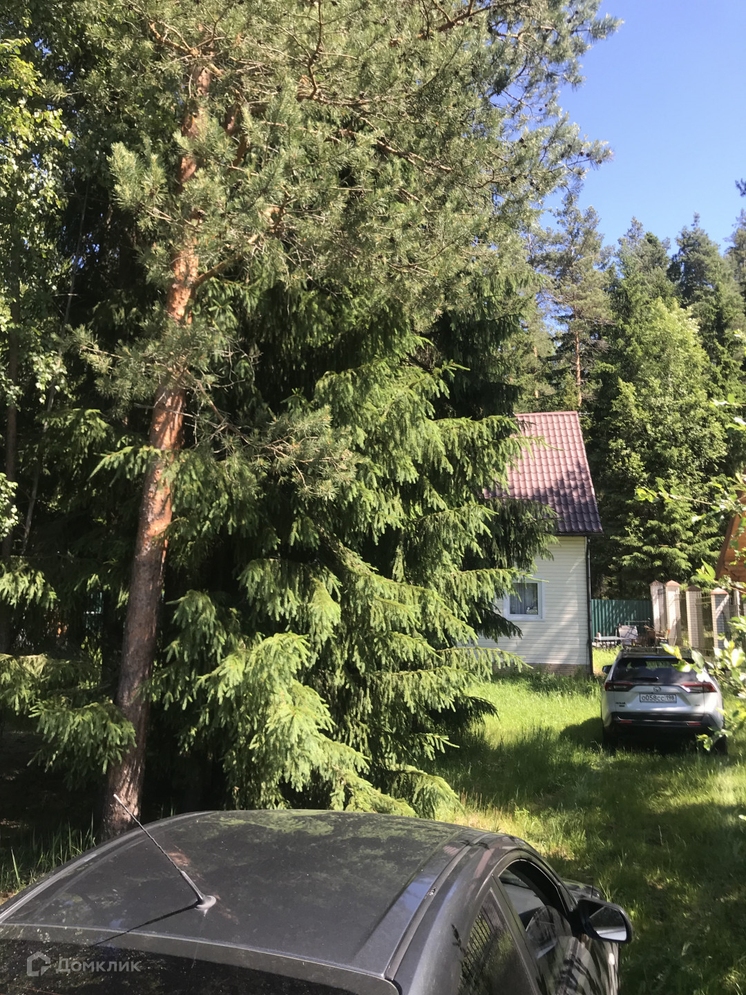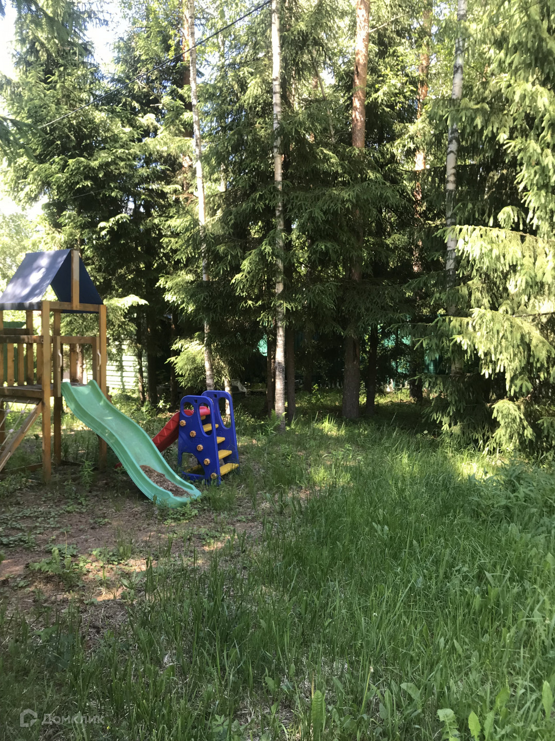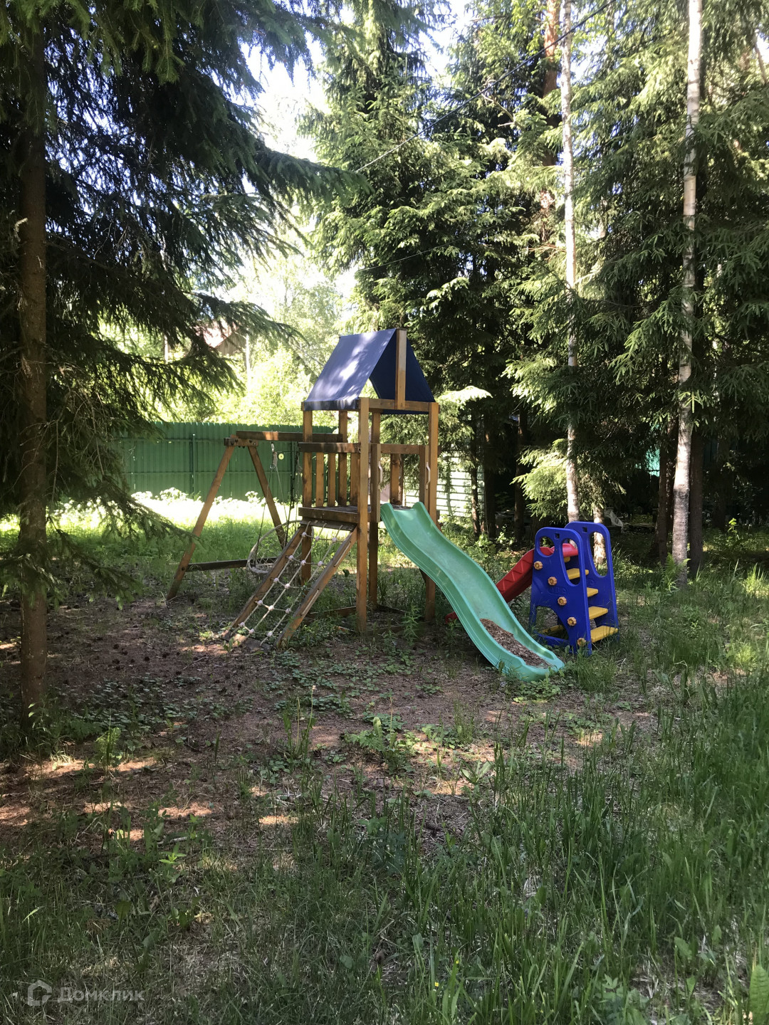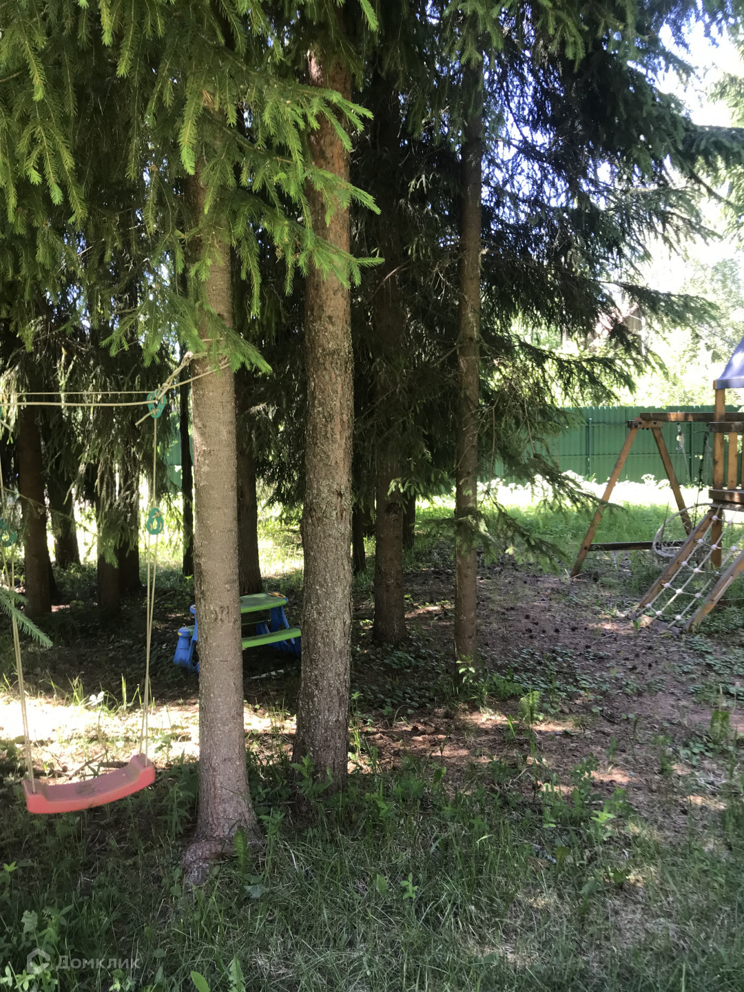 На участке ели, сосны, березы, детская площадка, газон. Чистейший лесной воздух.