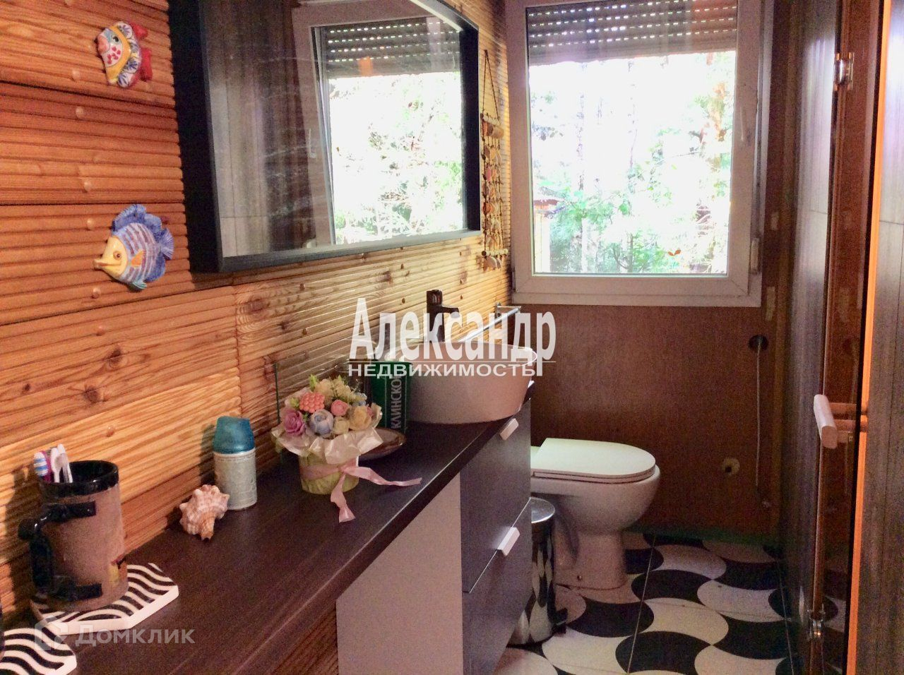 Душевая облицована керамической плиткой. Внутренняя отделка современными дорогостоящими материалами: на полу столовой лежит испанская плитка, стена декорирована толстой лиственницей и кирпичом, стены спальни облицованы зеркалами и МДФ панелями. В столовой и с/узле - теплый пол. Продается с мебелью, и материалами для полной чистовой отделки.