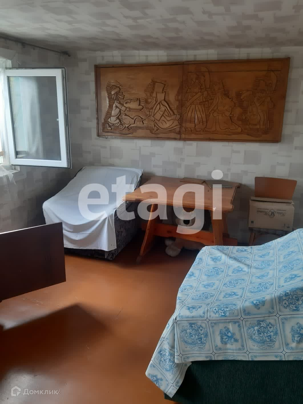 В доме русская печь, мебель.
