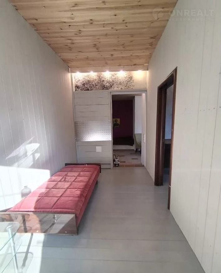 Другая половина каркасная, утепление минвата, внутри и снаружи обшит вагонкой.