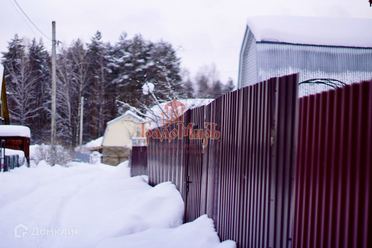 С лицевой части участок огорожен забором из крашеного профлиста, с калиткой и воротами, въезд отсыпан песком.