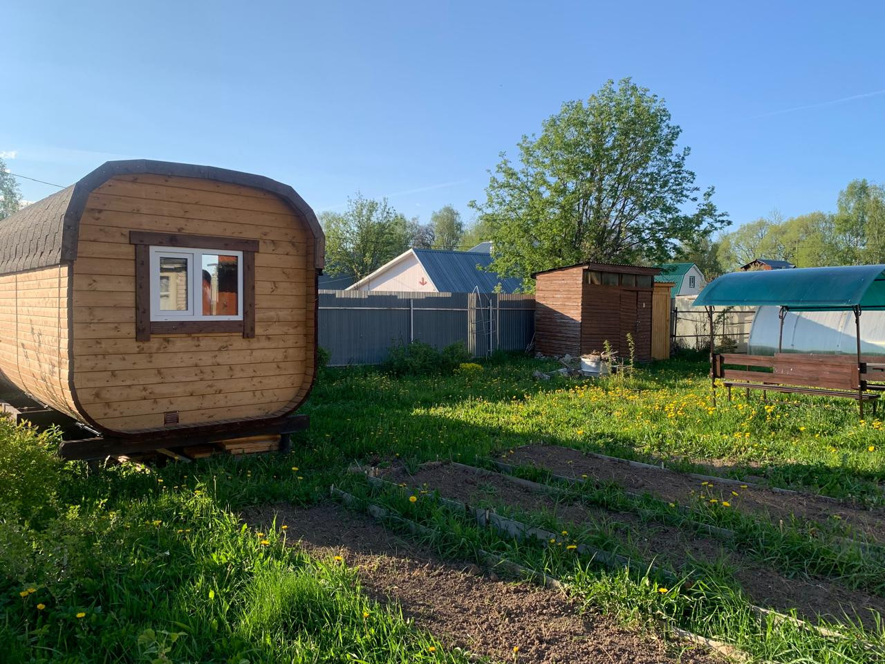 *ВСПОМОГАТЕЛЬНЫЕ СТРОЕНИЯ: новая баня-бочка (установлена в 2023 г.), установлена на винтовых сваях; внутреннее помещение разделено на три зоны: комната-отдыха, поддон для принятия душа, парилка. Функционирует отлично! На участке имеется отдельно стоящий хозблок и туалет, стол со скамьями под навесом из поликарбоната.