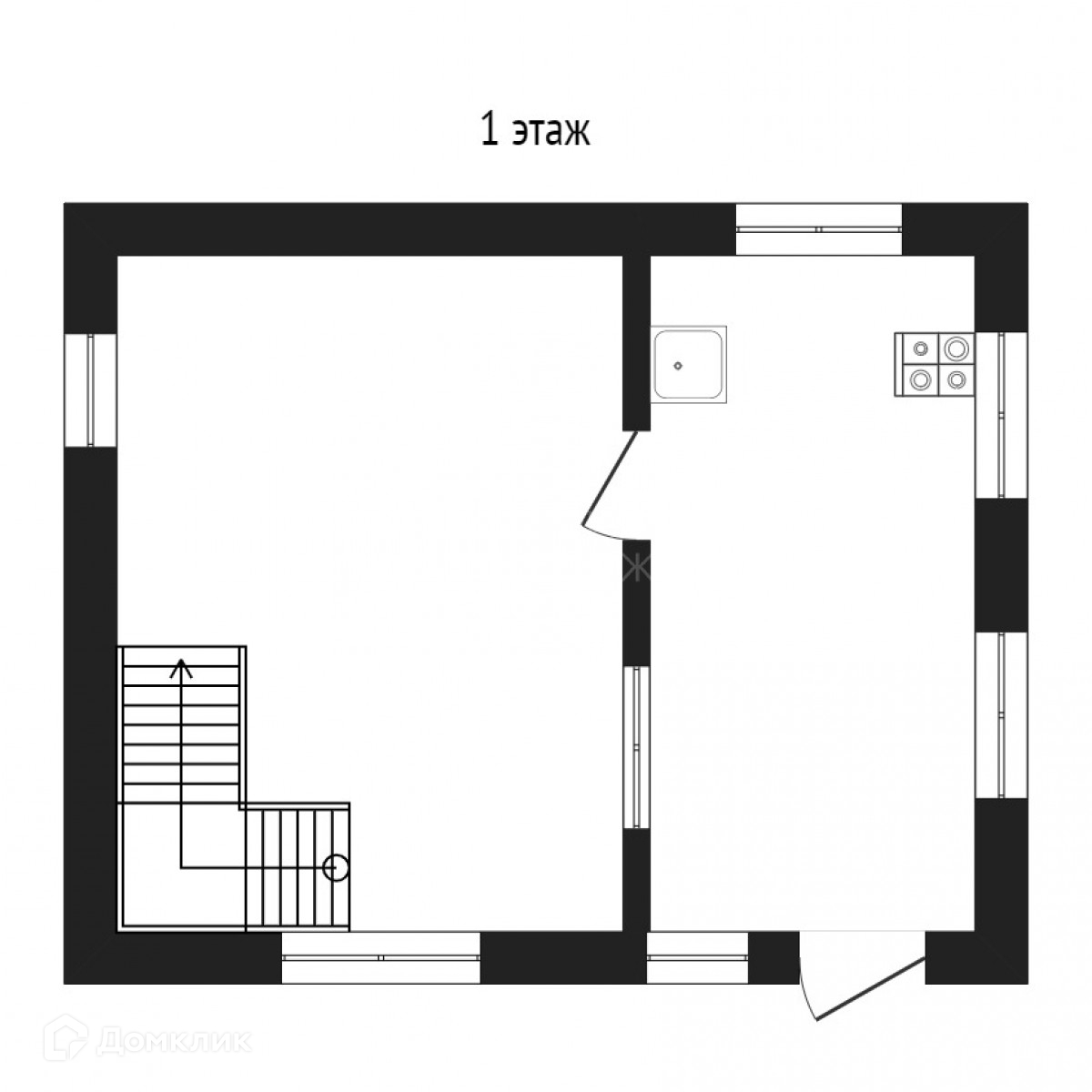 На первом этаже комната и кухня, на втором комната с выходом на балкон. Окна пластиковые.