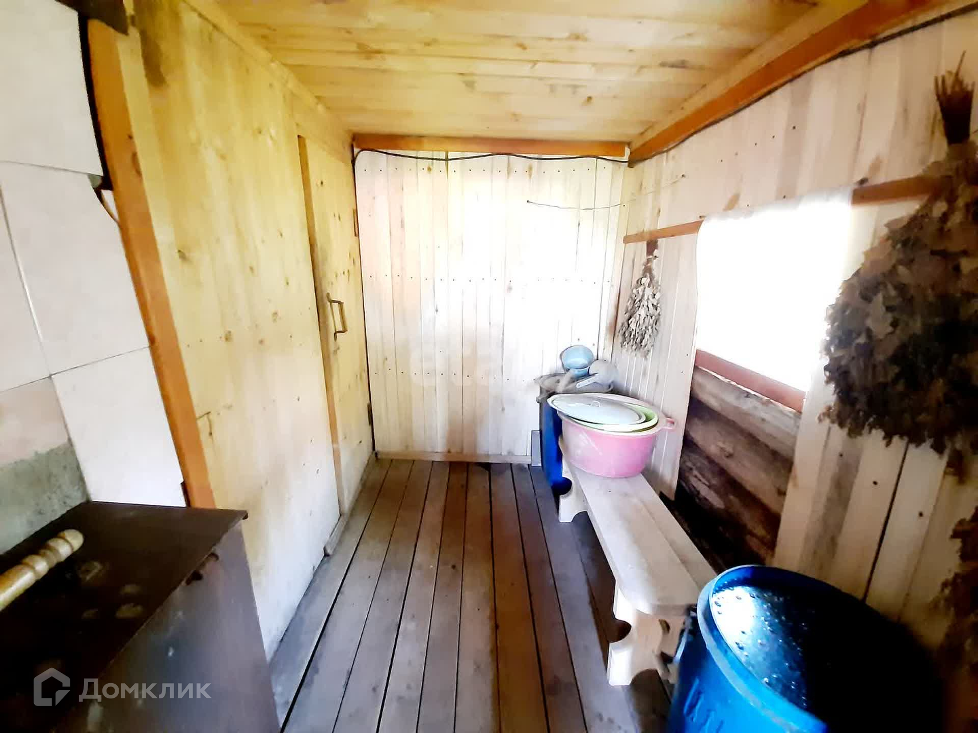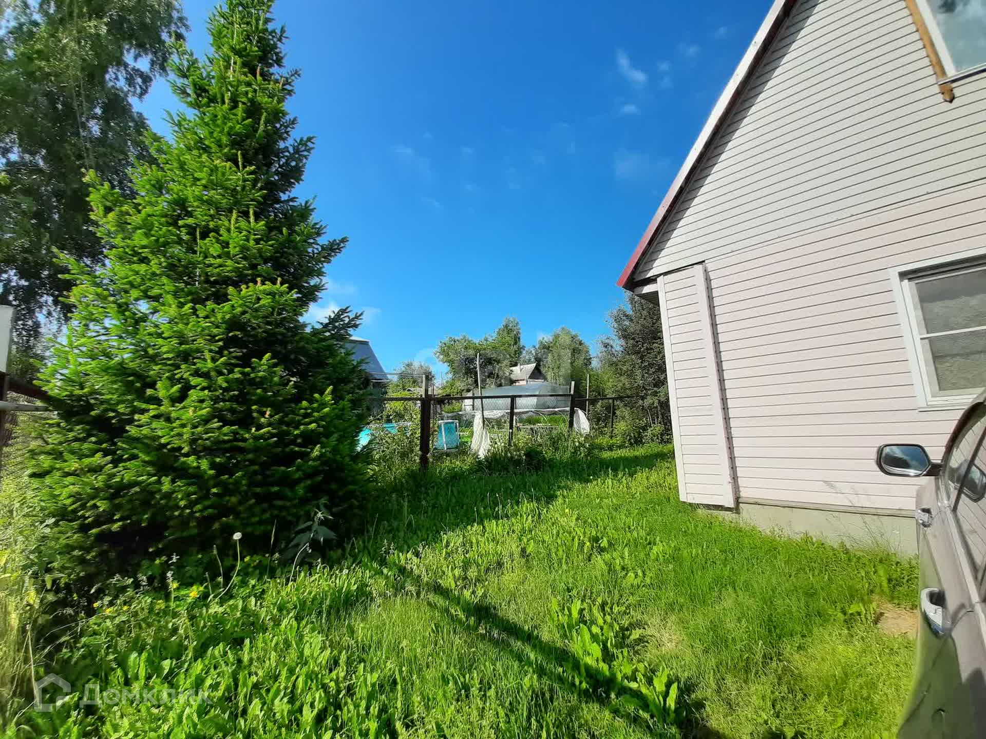 На территории новая баня с парилкой, фасад оформлен виниловым сайдингом.