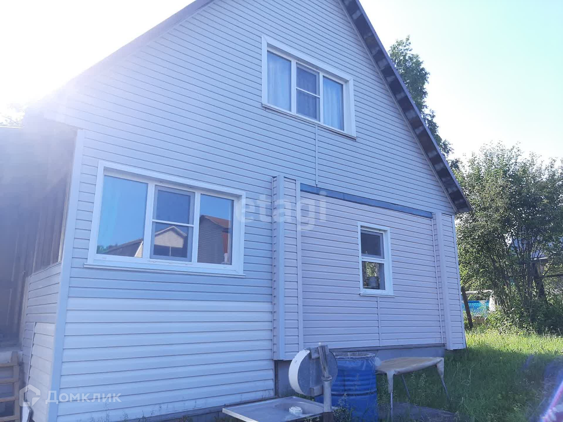 Материал стен дома- бревно, облицовка- виниловый сайдинг.