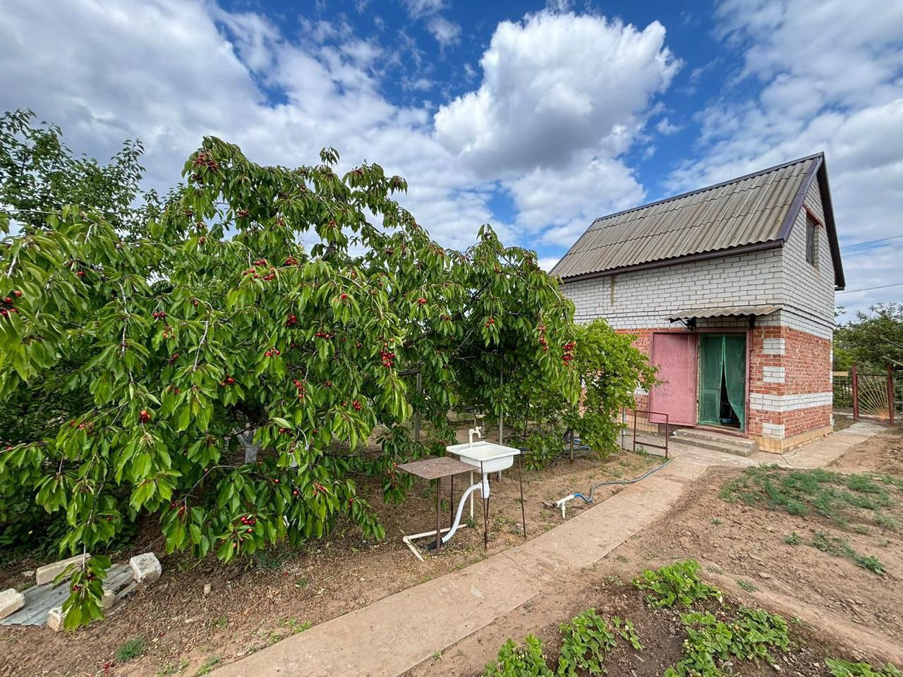 Продается дача. На участке 9 соток кирпичный двухэтажный дом, площадью 24 кв. м. Перекрытие между этажами - плита. На первом этаже кухня и зал, на втором этаже - спальня и балкон. В дом проведена вода из центральной поливной трубы и сделан слив. На втором этаже накопительная бочка с подогревом, на случай если нет воды. Сделан капитальный ремонт крыши. Также в доме есть погреб. Парковочное место выложено брусчаткой и имеет навес. На территории участка разводка труб выполнена из пластика, проведена под землей, имеется умывальник со сливом. Имеется емкость с водой, которая подключена к трубам. Когда нет воды, можно заниматься поливом без ведер. Душ с подогревом (качественная пластиковая бочка), совмещен с санузлом. У душа собственный слив. На участке две теплицы и два хозблока. Новый хозблок выстроен из блоков, установлены стеллажи. 13 деревьев, все ухожены и плодоносят - крупная черная сладкая черешня, вишня, вкусные желтые и красные яблоки, абрикосы, сливы, груши. С одной стороны по длине всего участка высажены кусты малины, с другой стороны - очень вкусный сортовой виноград: дамские пальчики и пр. Также имеется клубника разных сортов, в том числе и ремонтантная клубника. Вкусная крупная черная смородина, крыжовник. Беседка из неукрывного винограда - вкусный, сладкий. Дача освещается с трех сторон: на парковочное место (заезд), вход в дом и со стороны душа на весь огород. По участку проложены бетонные дорожки. Организована игровая зона для детей: качели, турник, песочница и т.д. Есть место для бассейна. Дачный участок располагается на широкой улице, по которой свободно проедут грузовые автомобили и спецтехника.