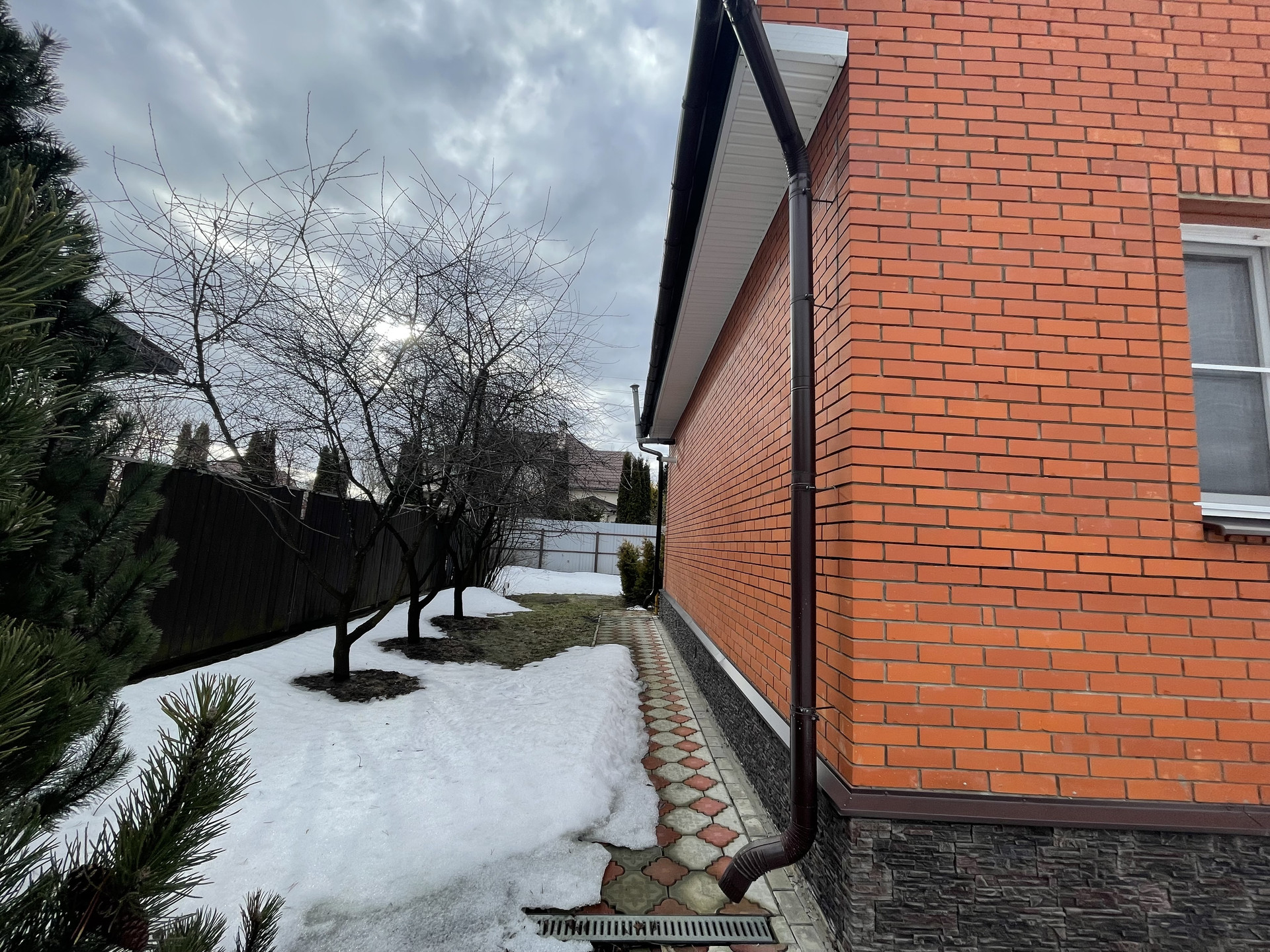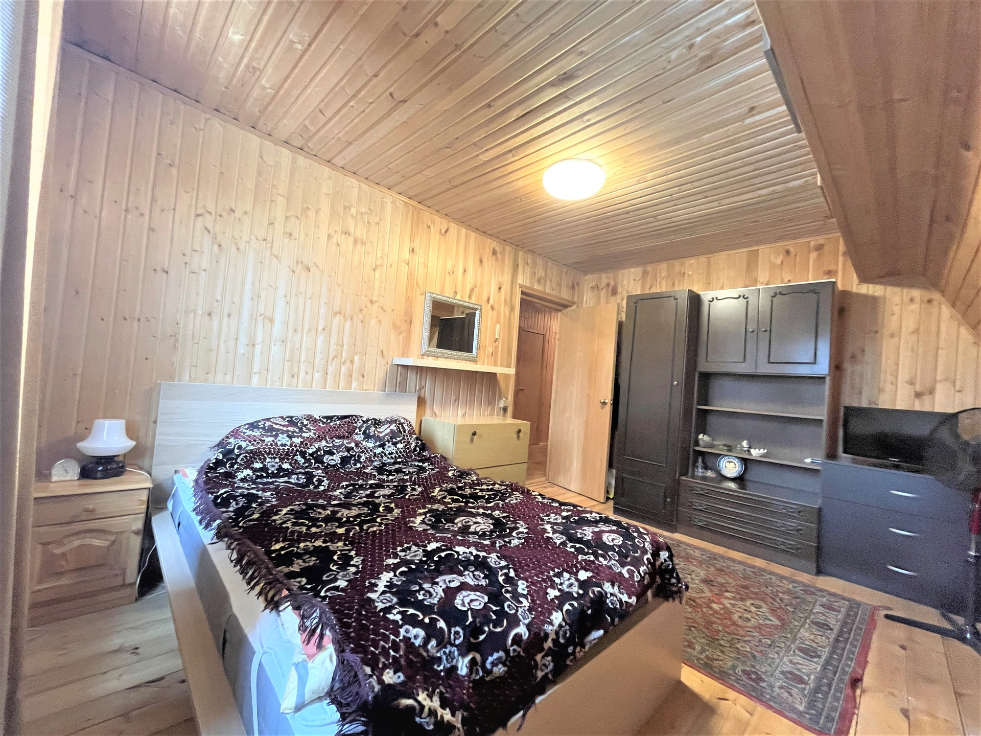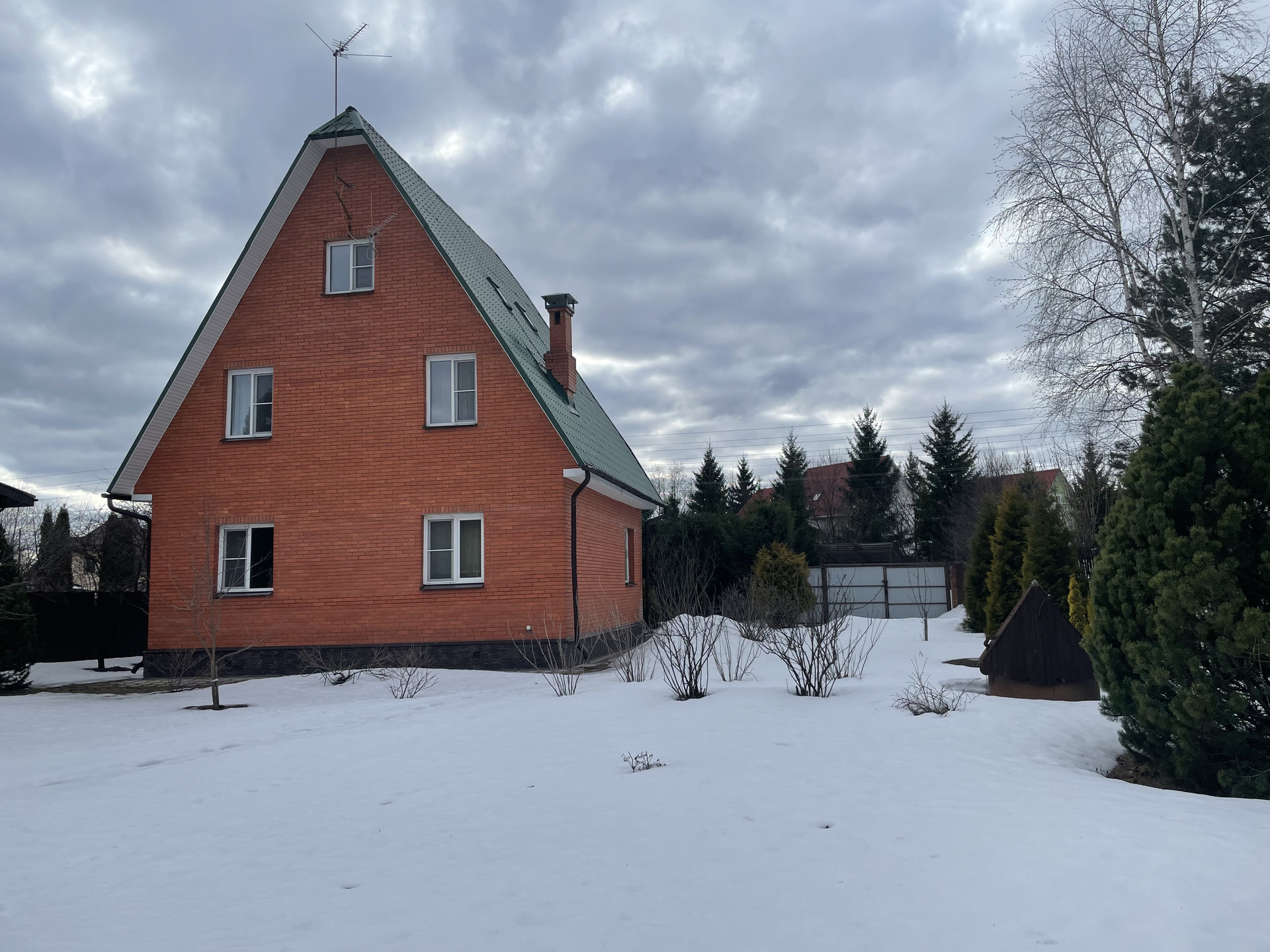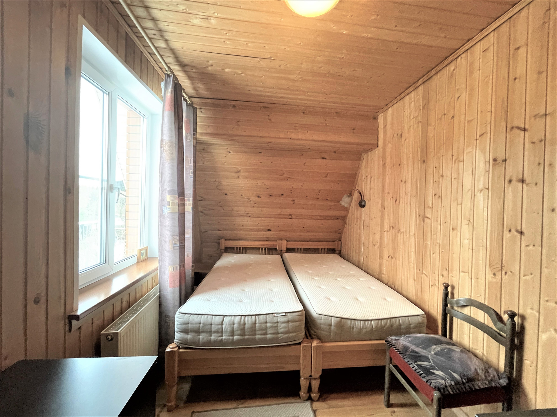 Материал стен дома – брус 200 мм, фасад из кирпича. Внутренняя отделка вагонкой.