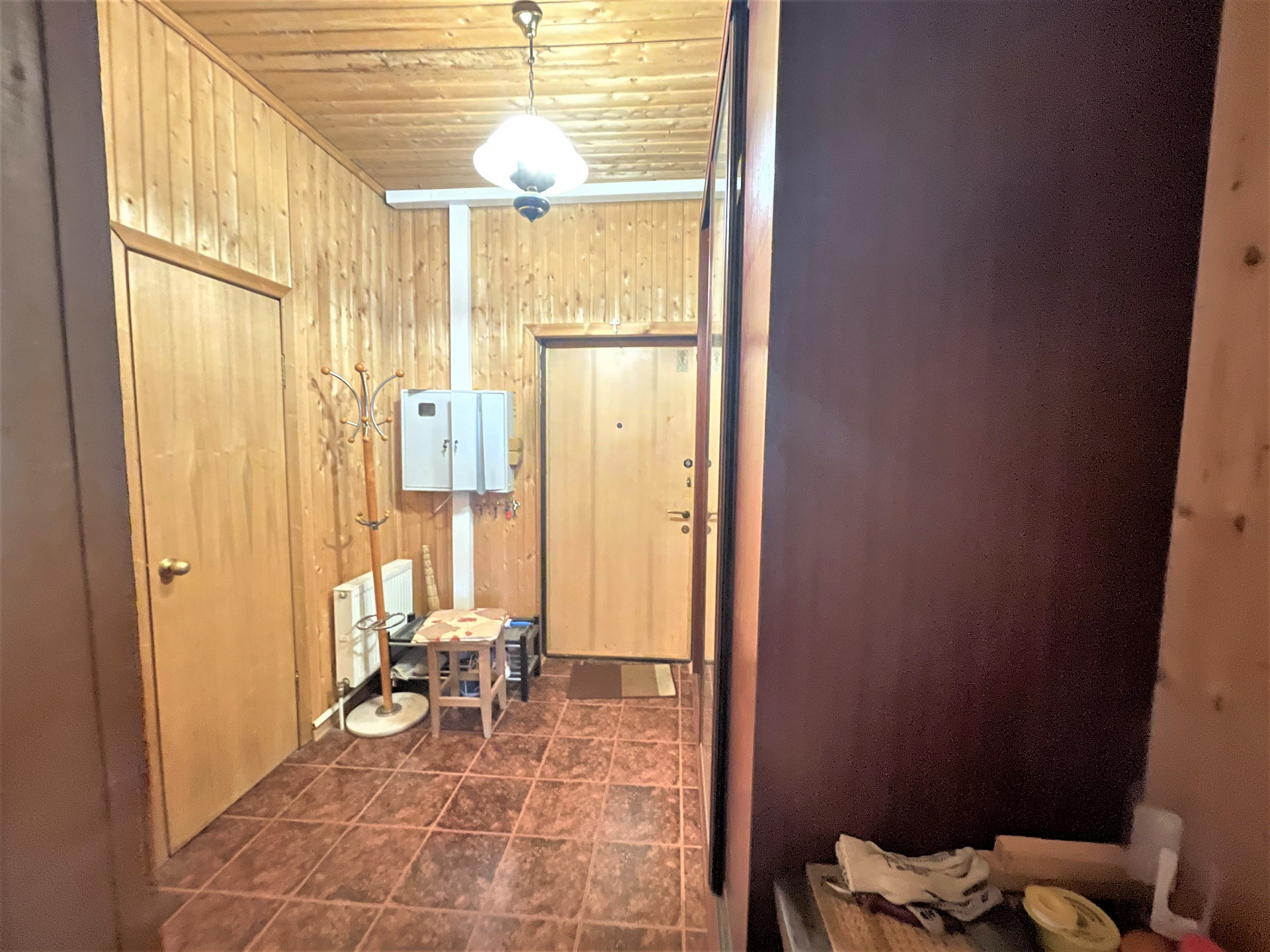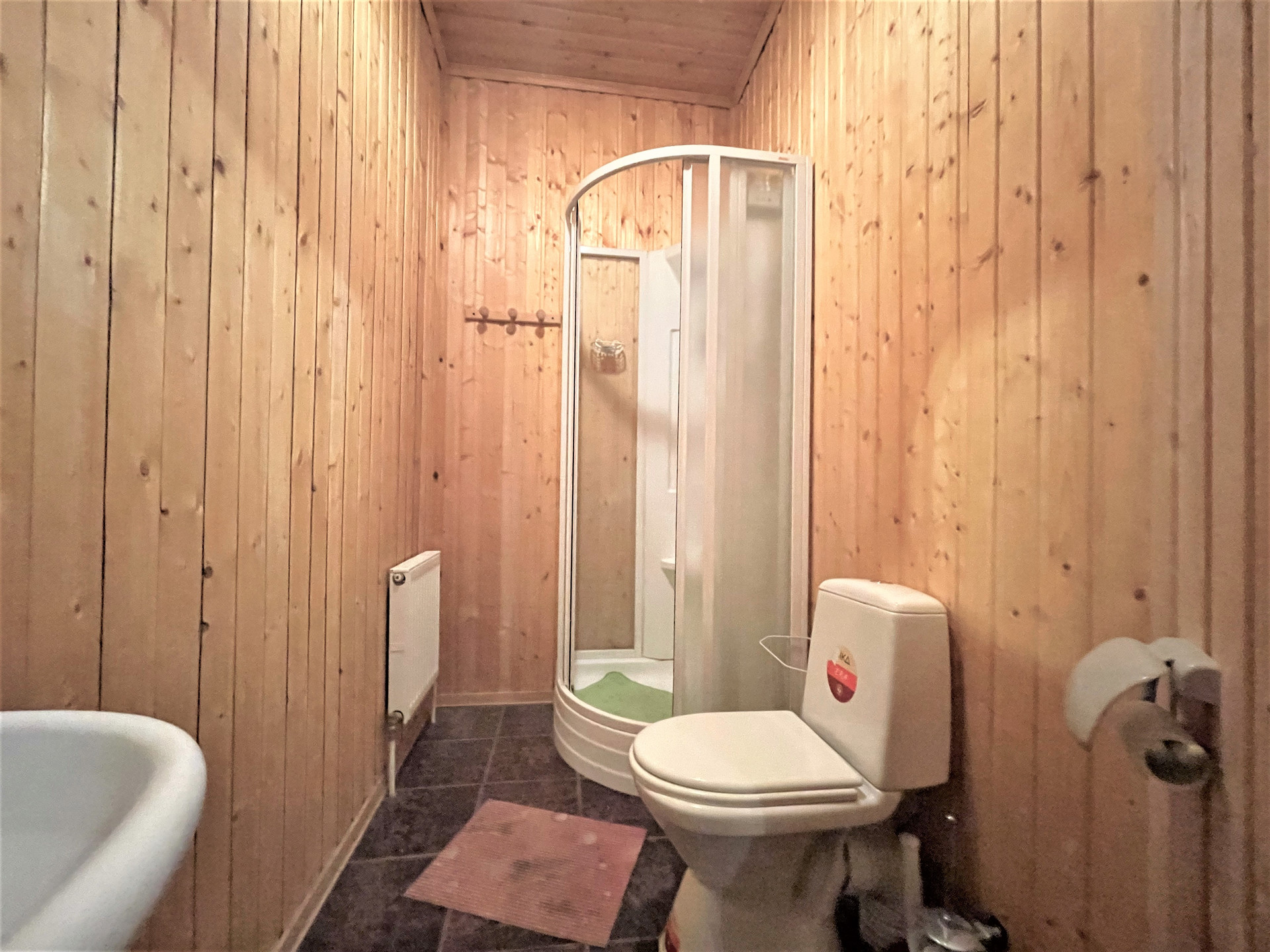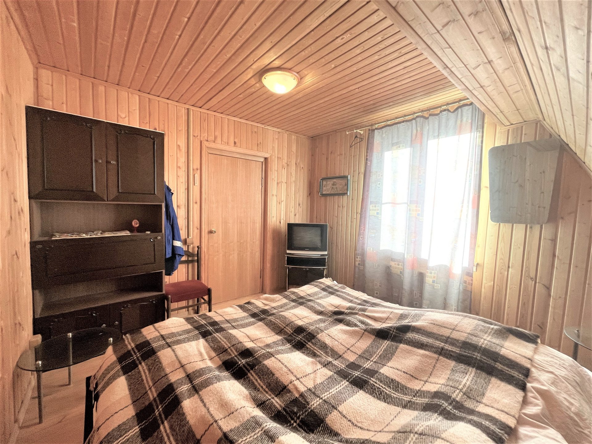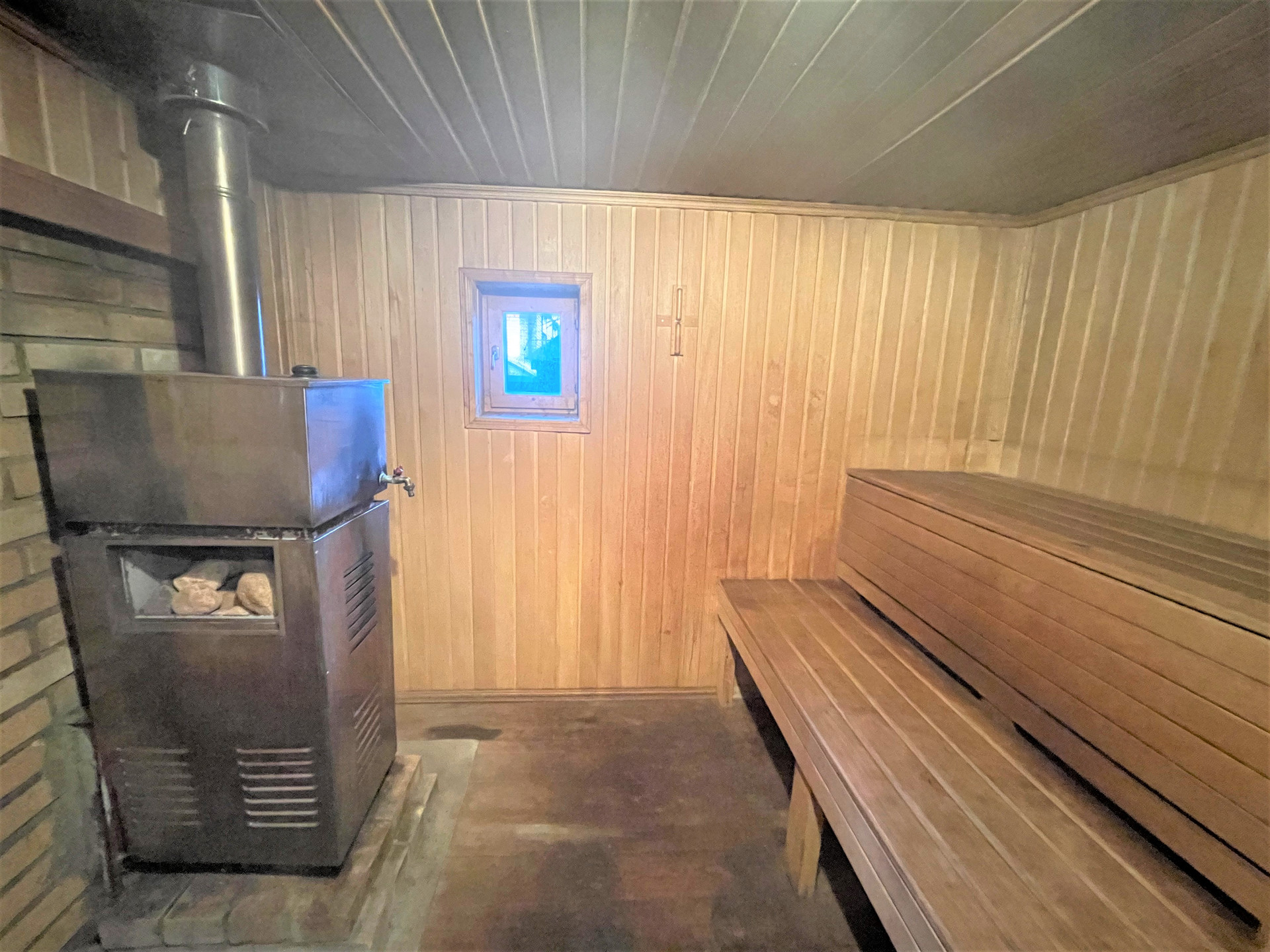 Материал стен дома – брус 200 мм, фасад из кирпича. Внутренняя отделка вагонкой.