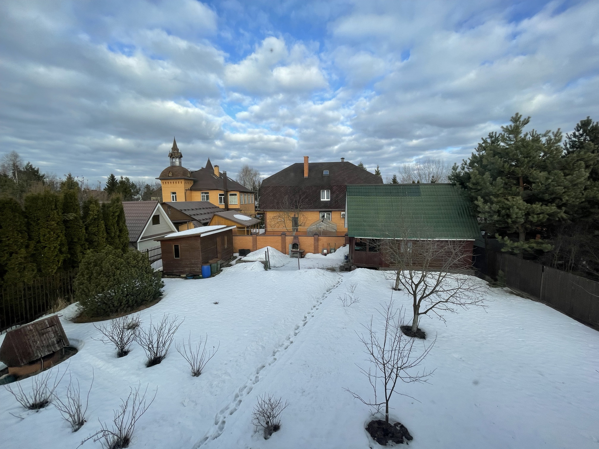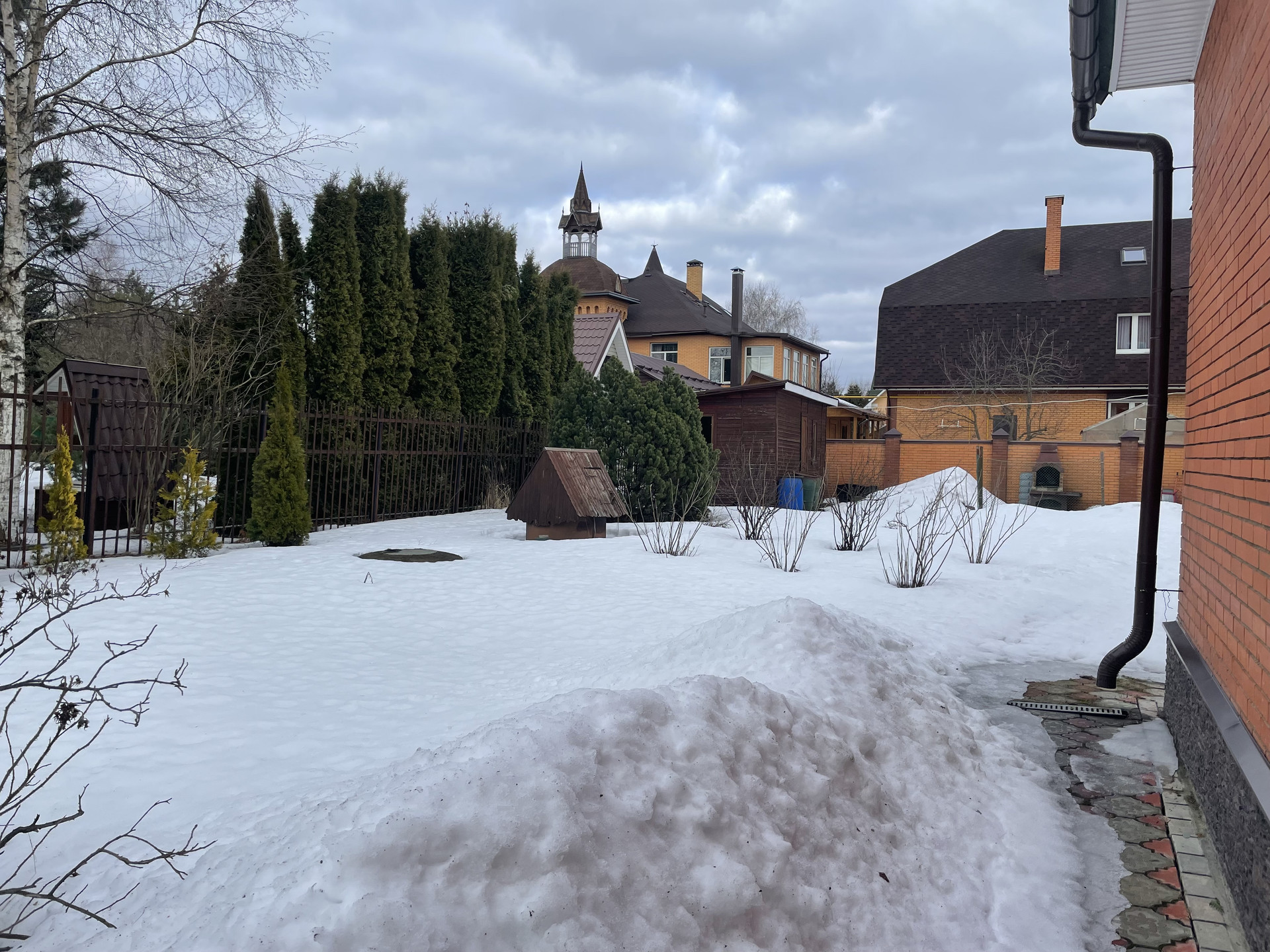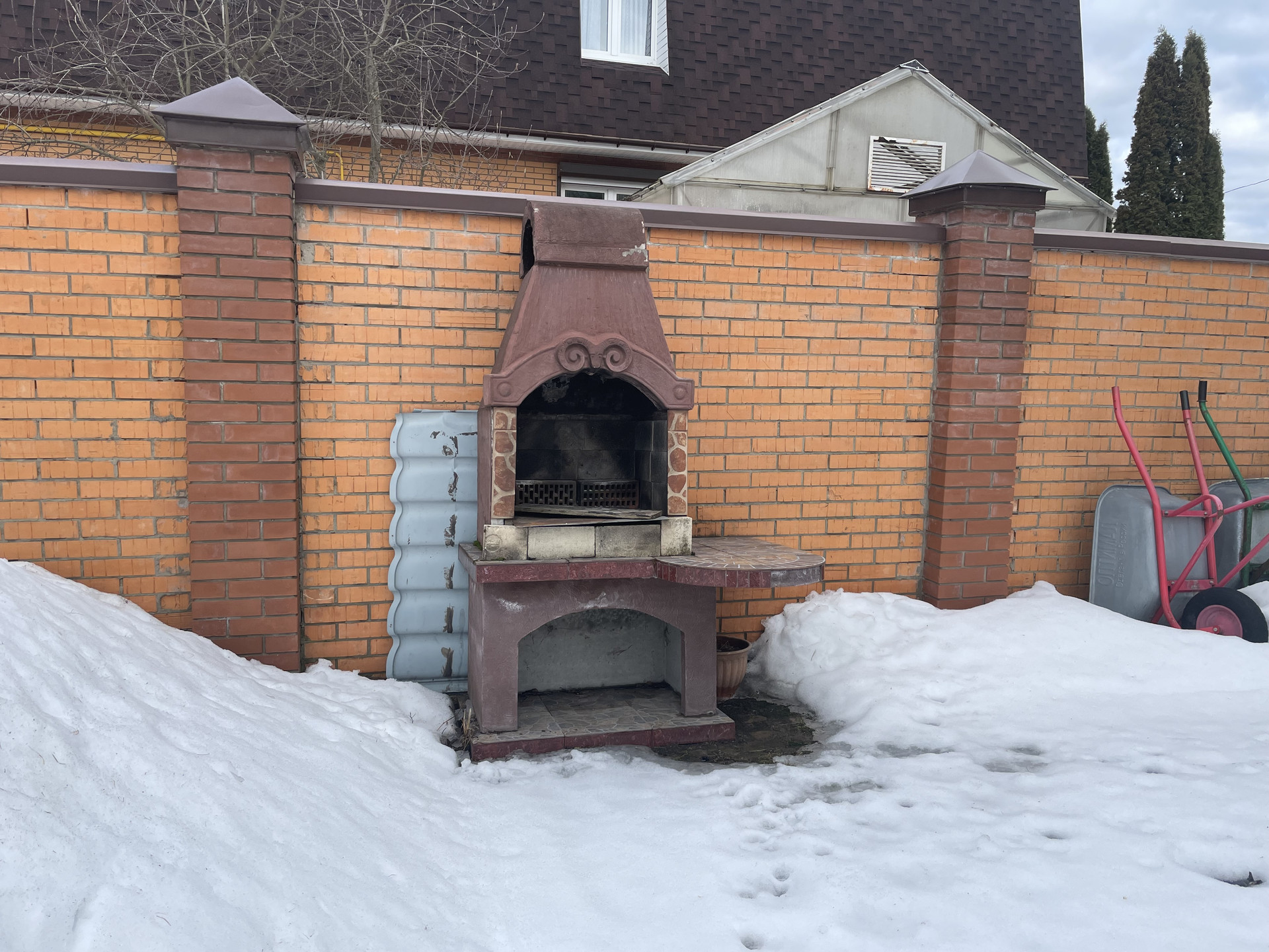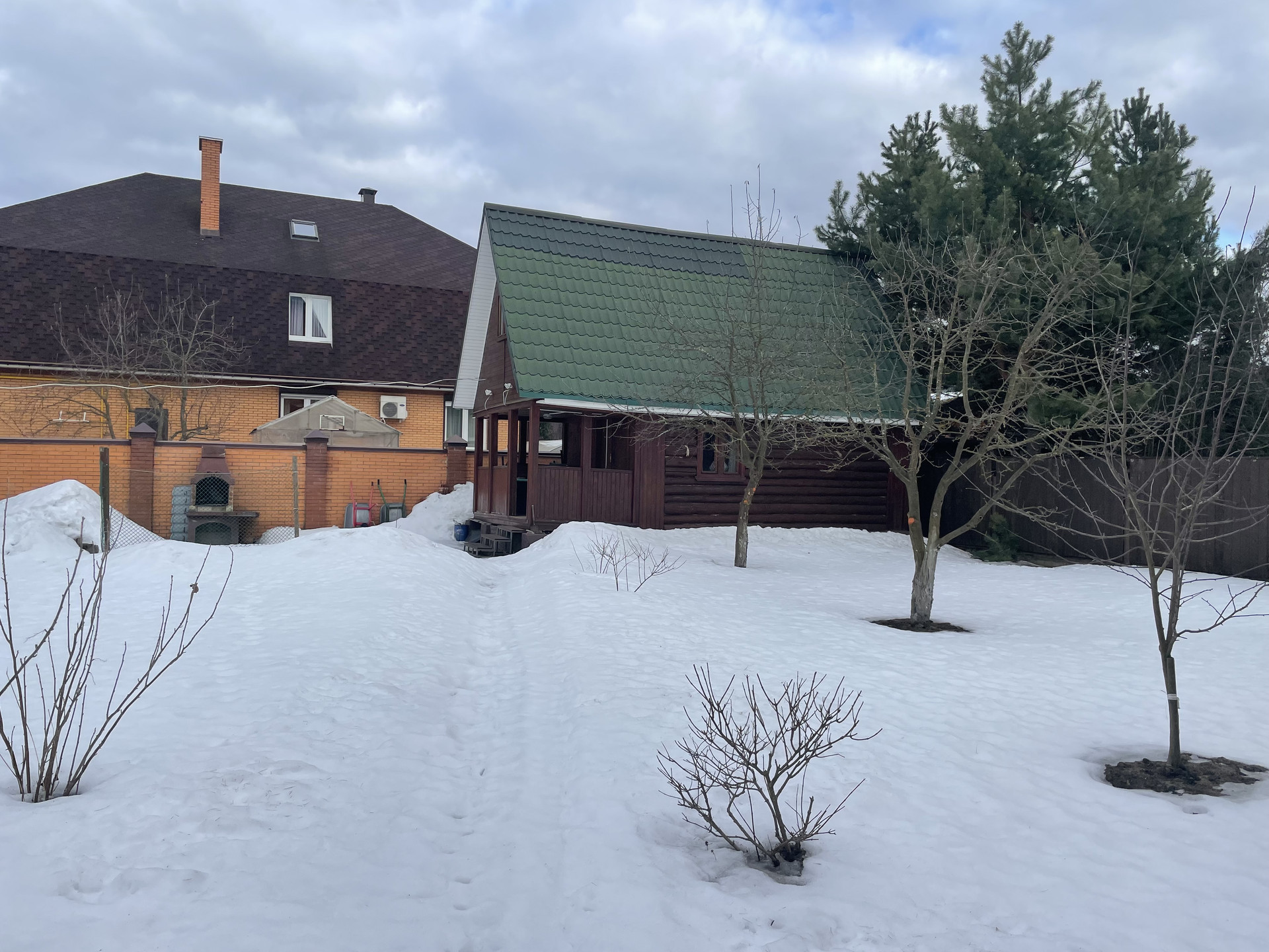 Участок ухоженный: красивый сад, плодовые и декоративные хвойные деревья, гортензии, пионы, огород, зона барбекю, парковка, дорожки, освещение, кирпичный капитальный забор.