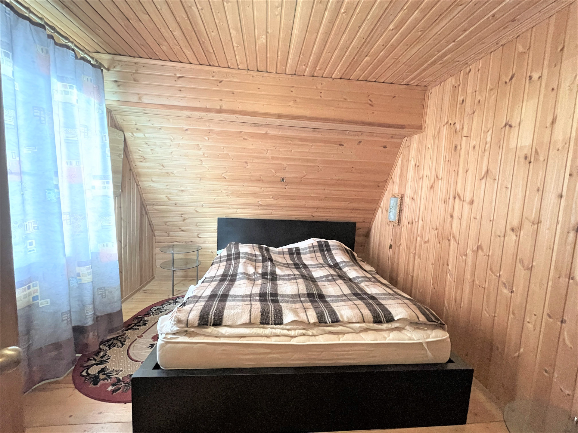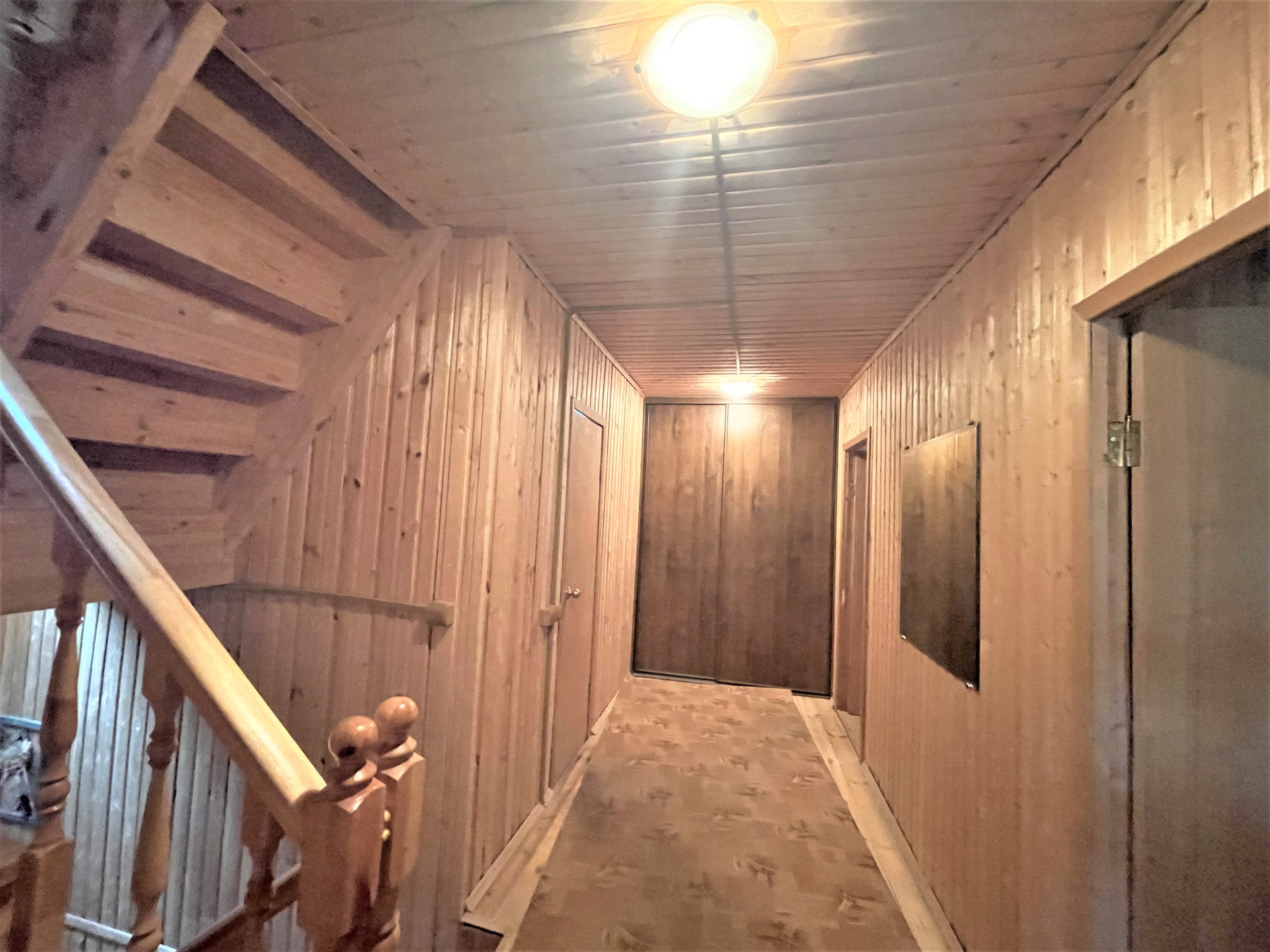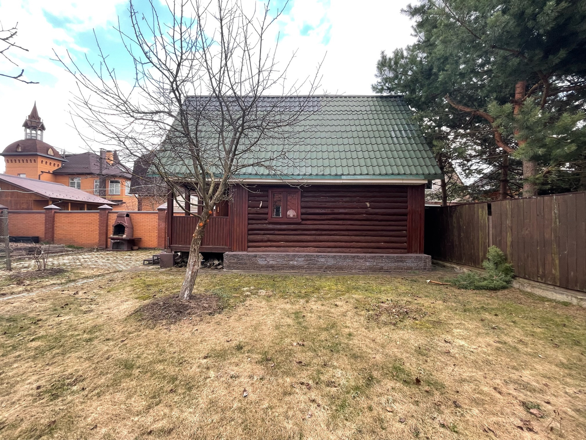 Материал стен дома – брус 200 мм, фасад из кирпича. Внутренняя отделка вагонкой.