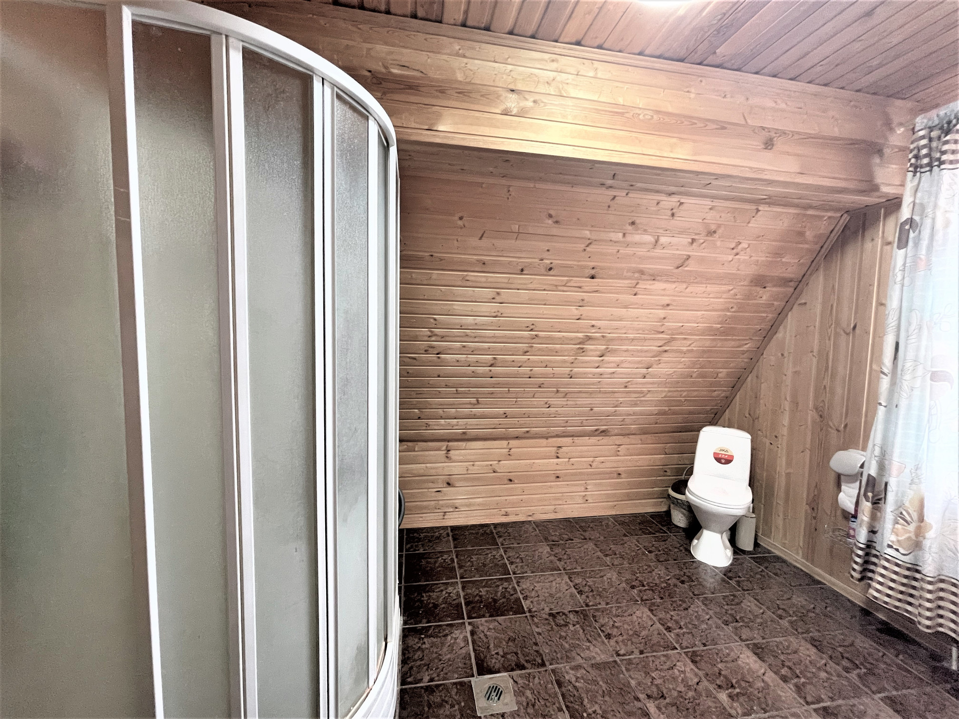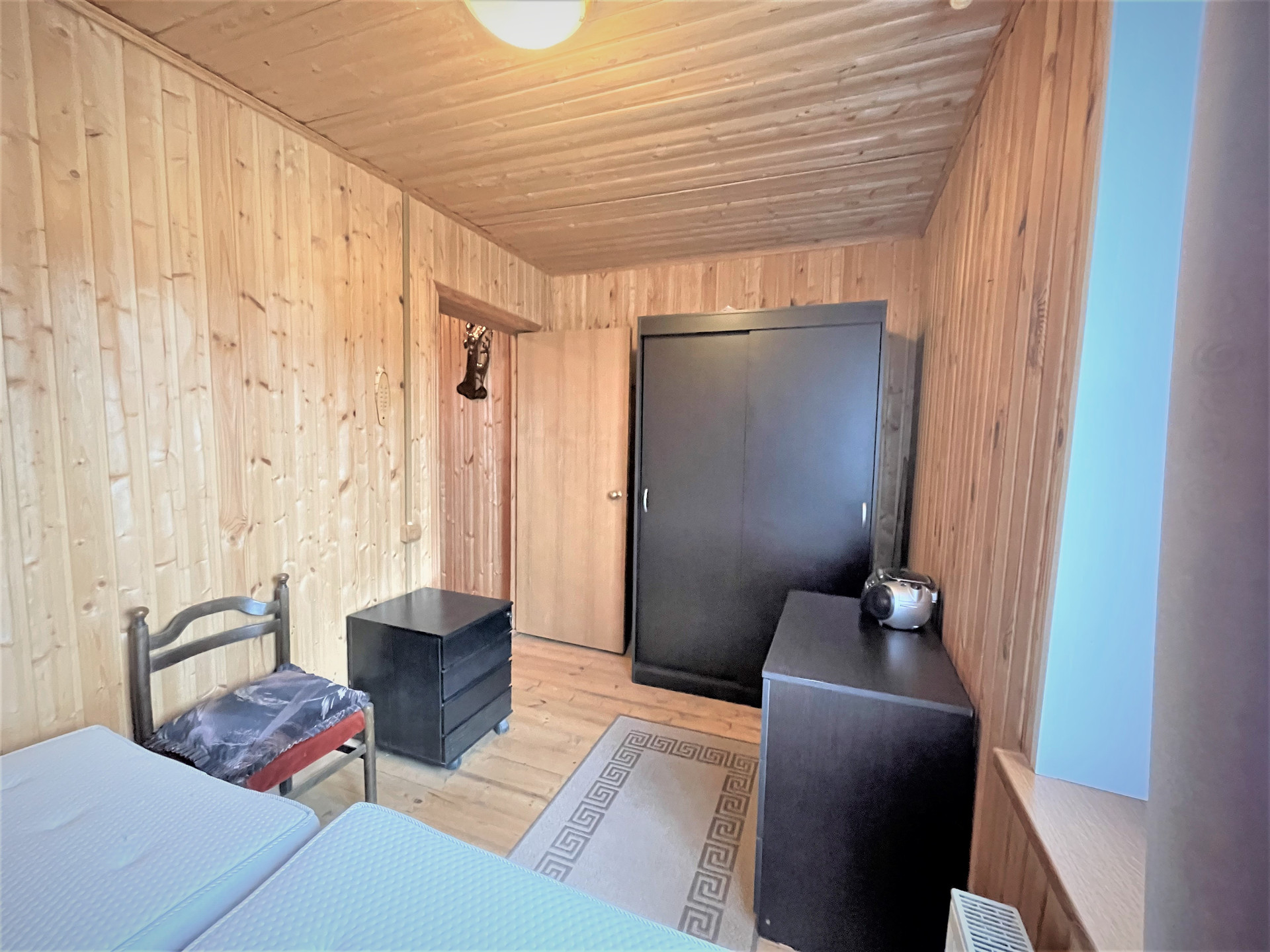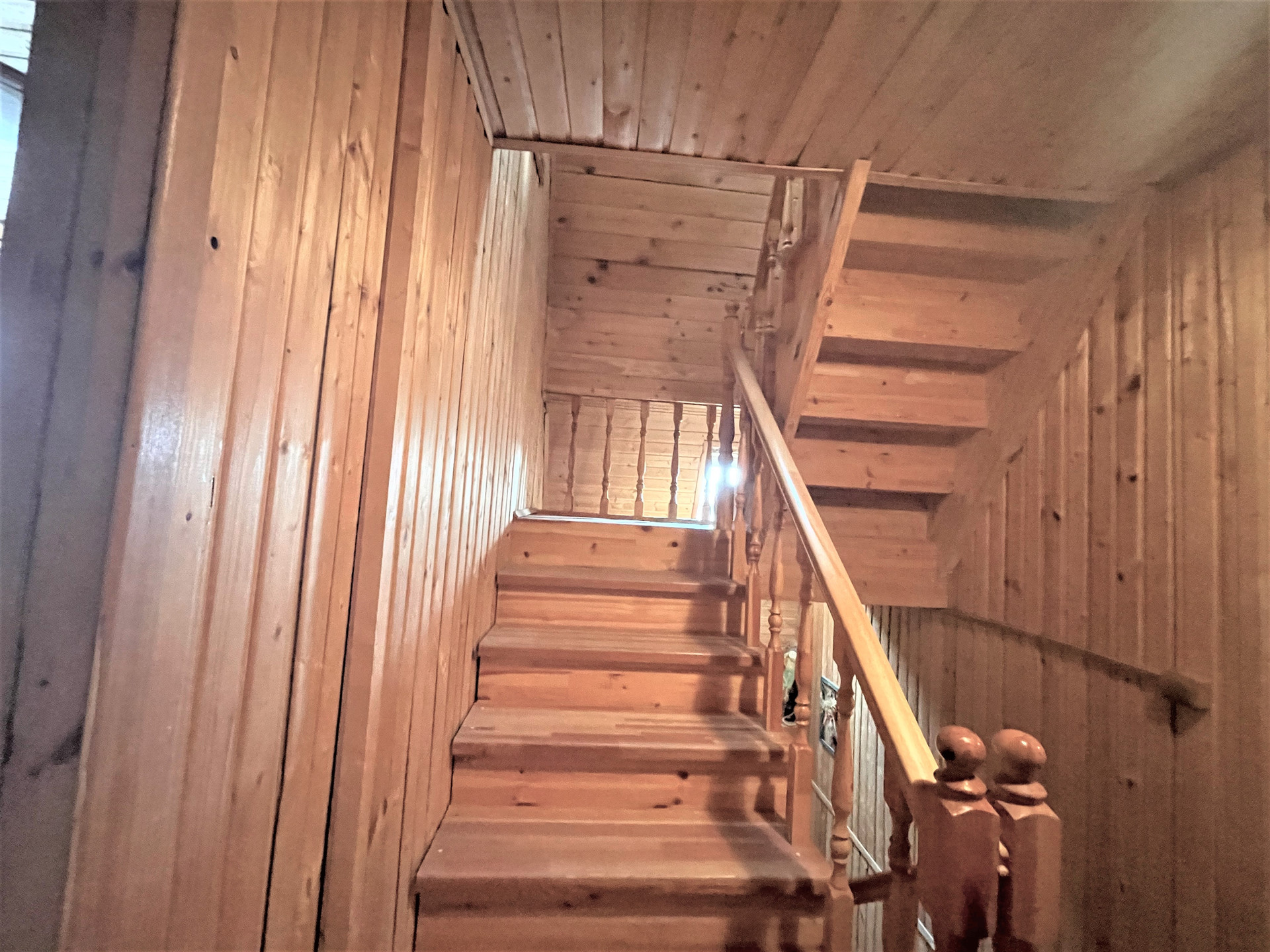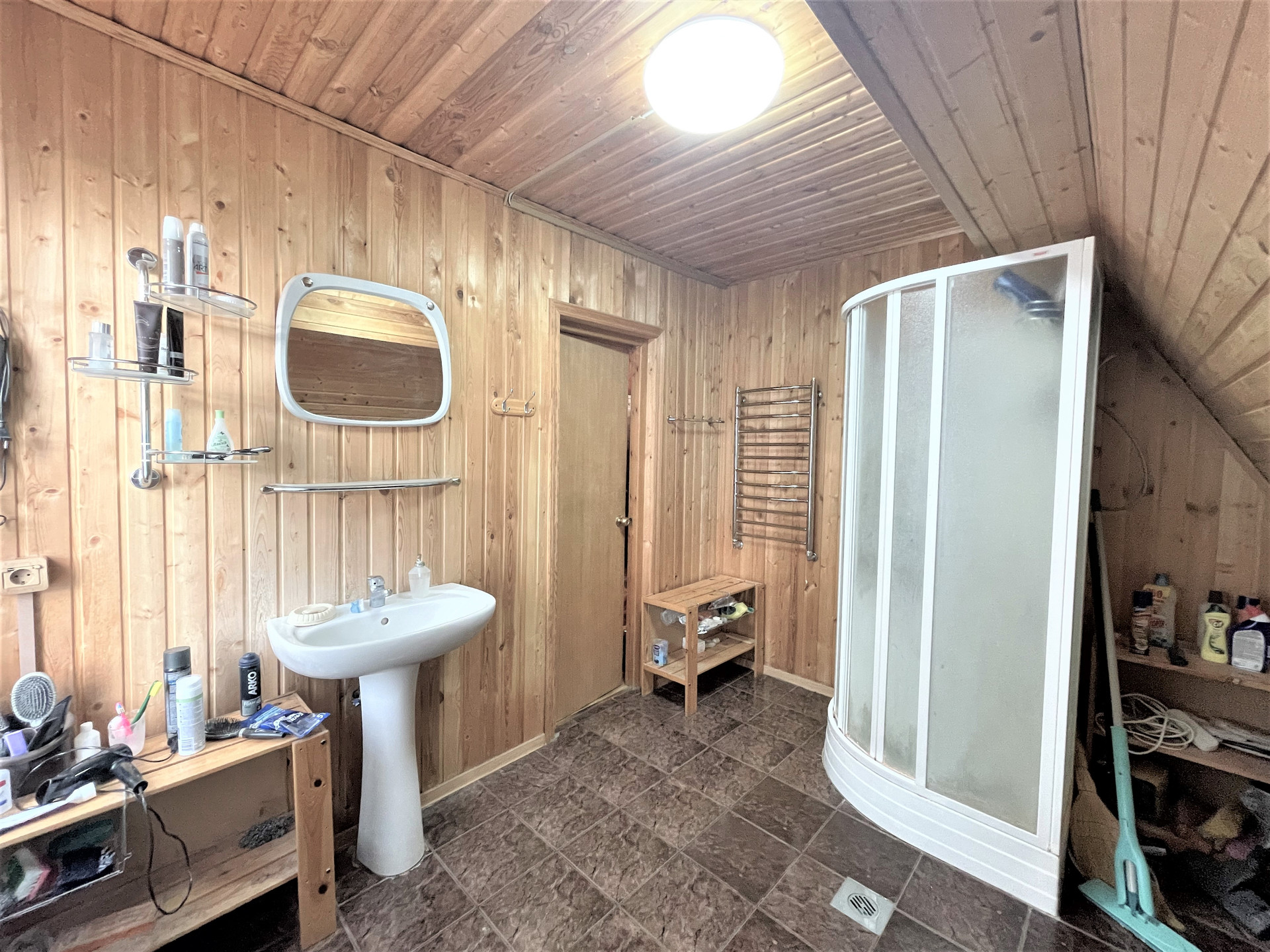 Материал стен дома – брус 200 мм, фасад из кирпича. Внутренняя отделка вагонкой.