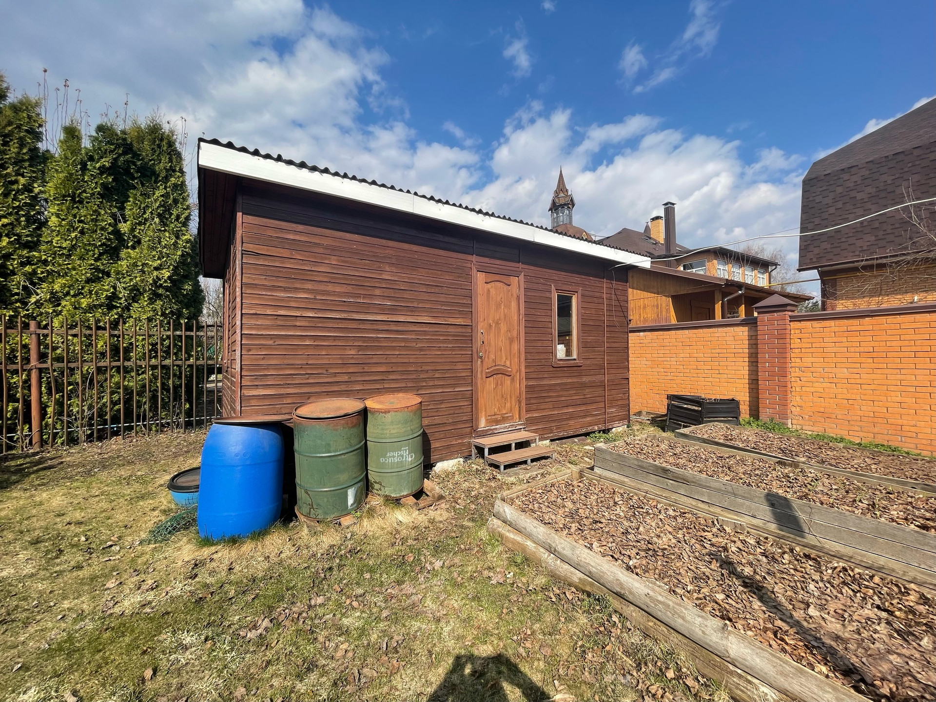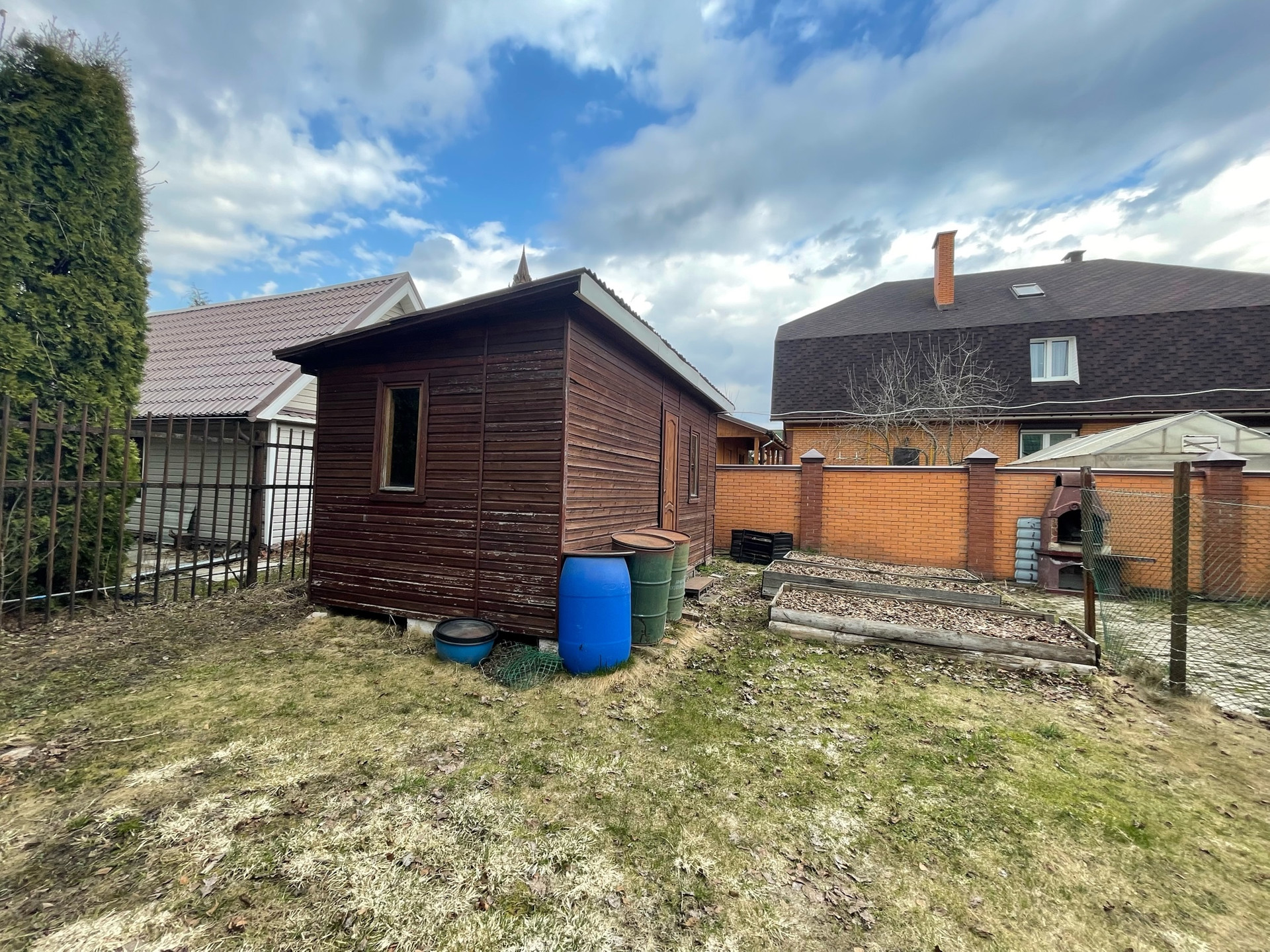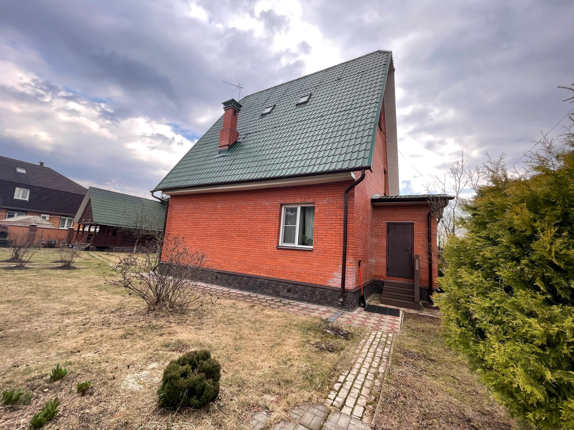 Участок ухоженный: красивый сад, плодовые и декоративные хвойные деревья, гортензии, пионы, огород, зона барбекю, парковка, дорожки, освещение, кирпичный капитальный забор.