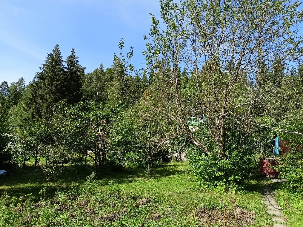 Колодец с питьевой водой, на дне которого находиться минеральный камень шунгит. В тени огромной ели можно отдохнуть в знойный летний день. Плодово – ягодные насаждения все остаются.