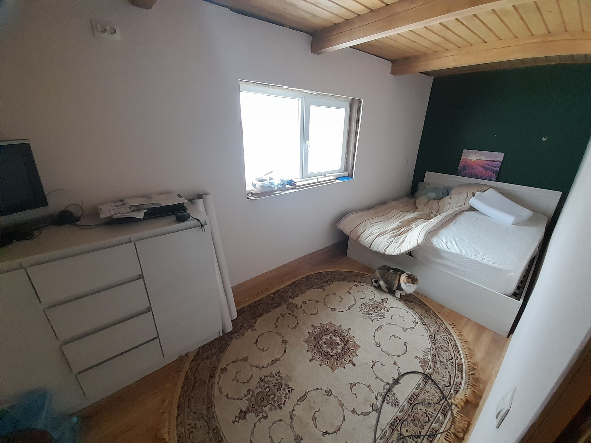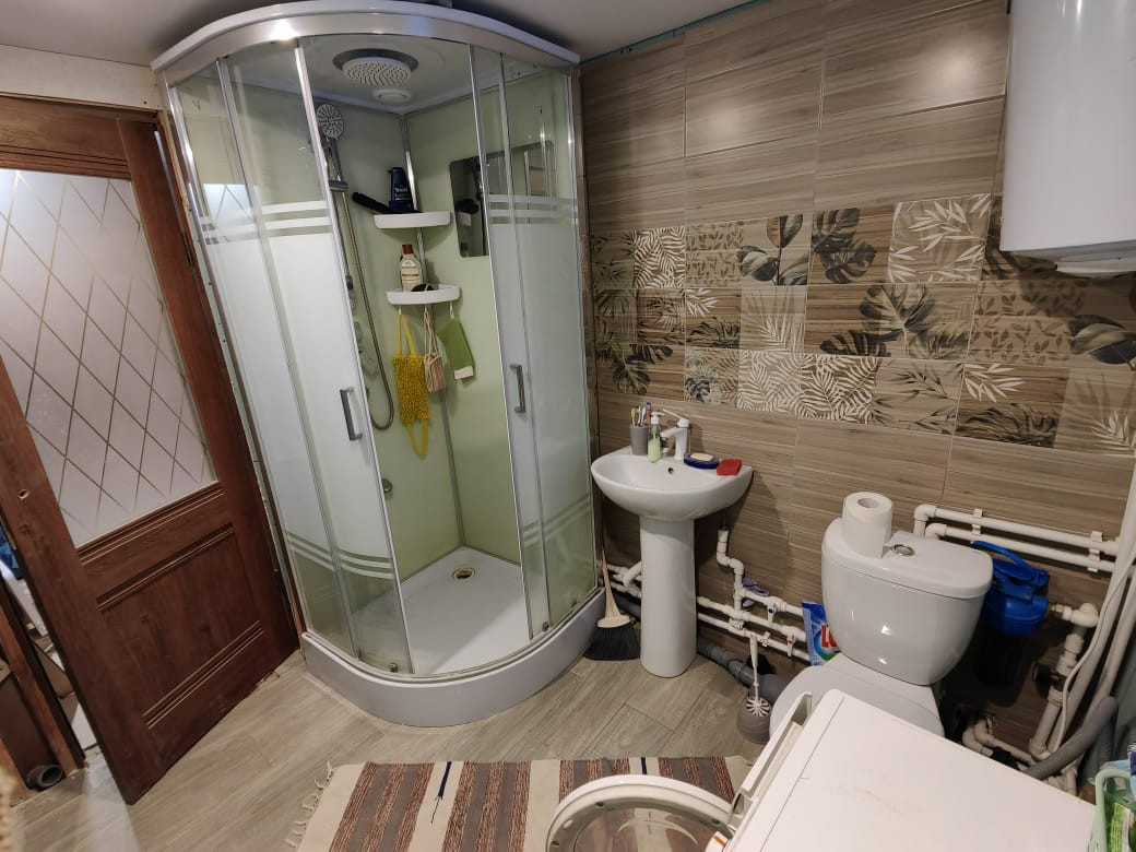 Дом 76 кв.м. на свайно-винтовом фундаменте, 2 этажа. Есть газ(пропан балон) отопление керамические обогреватели в доме свой водопровод ,вода питьевая.Септик на 4 куба. На участке есть небольшая хоз.постройка, посажены яблони,кусты. Есть теплица 4×3 . Вместе с домом остаётся утеплитель: 5 кубов,3 куба половой доски, 2.5 куба имитации бруса для обшивки дома. Вся мебель  и техника