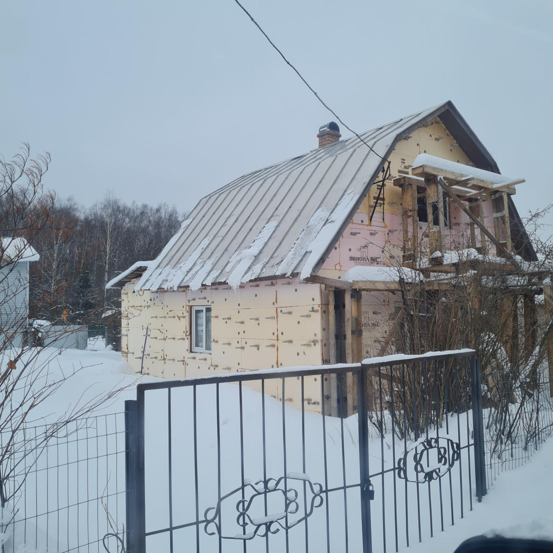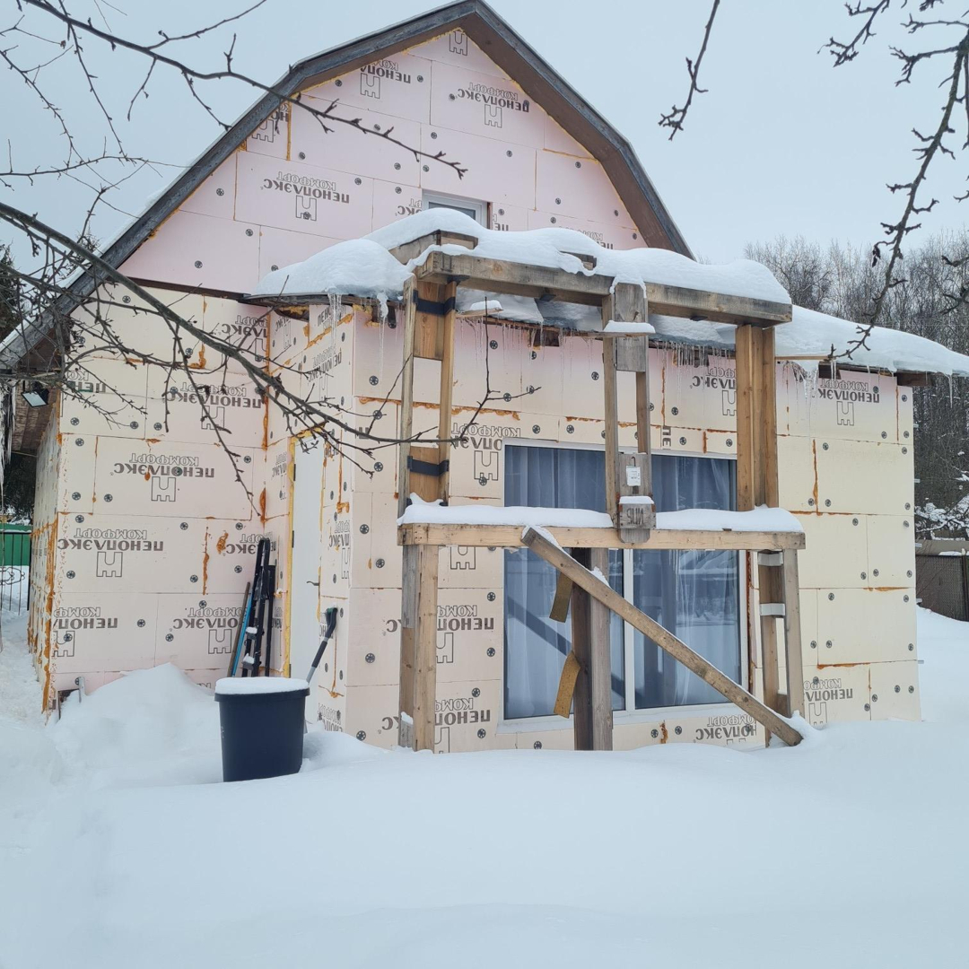 Дом утеплен и готов к обшивке сайдингом.