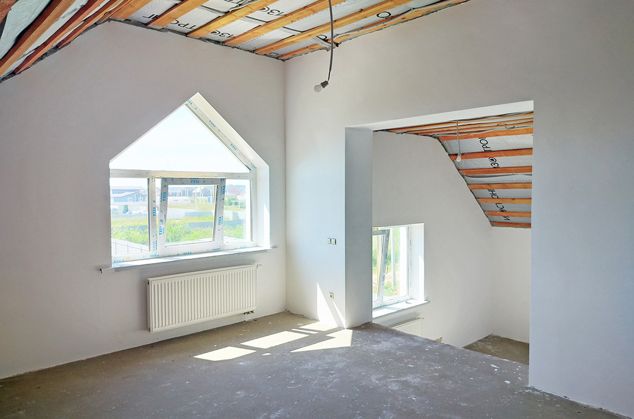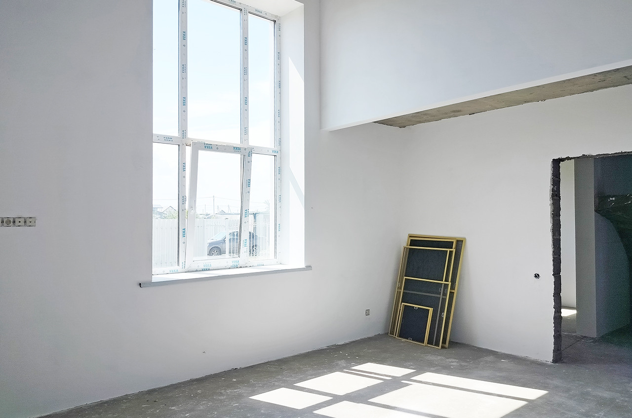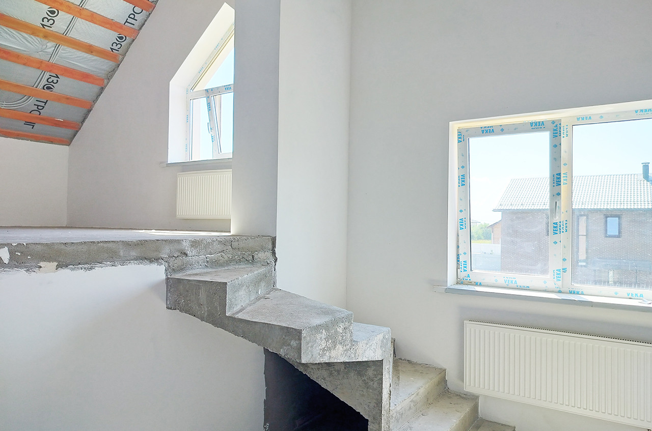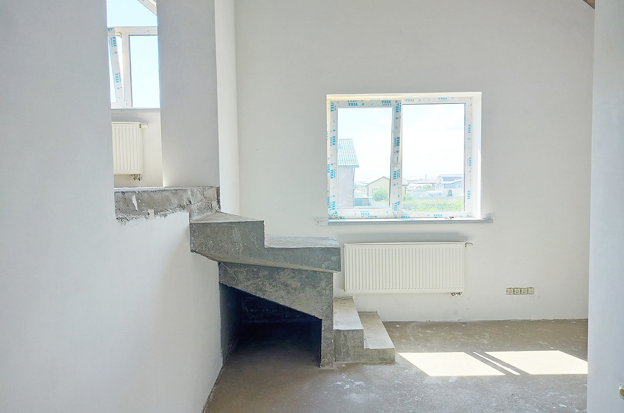Стены оштукатурены, полы выровнены стяжкой, что идеально подходит для укладки плитки или паркета. Полностью проведена электрическая разводка и отопление, установлены выключатели, розетки и счётчики.