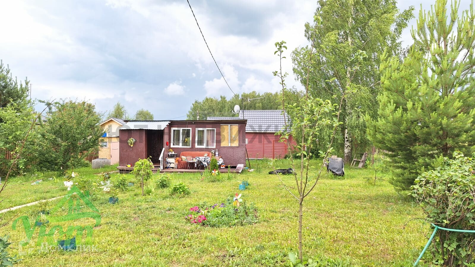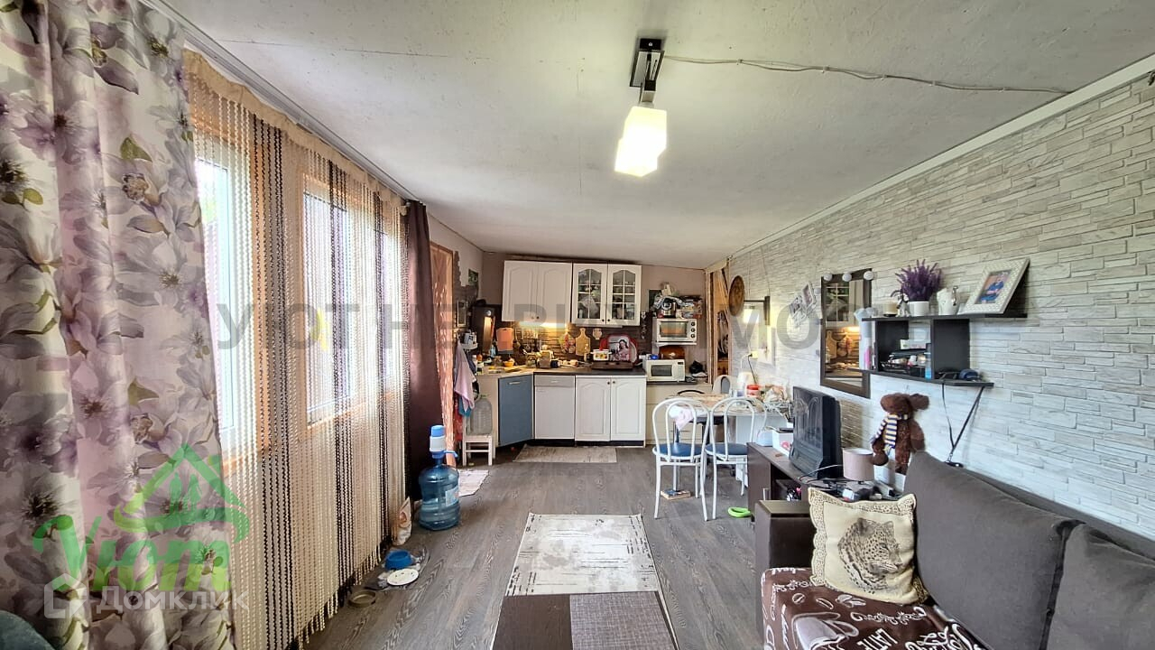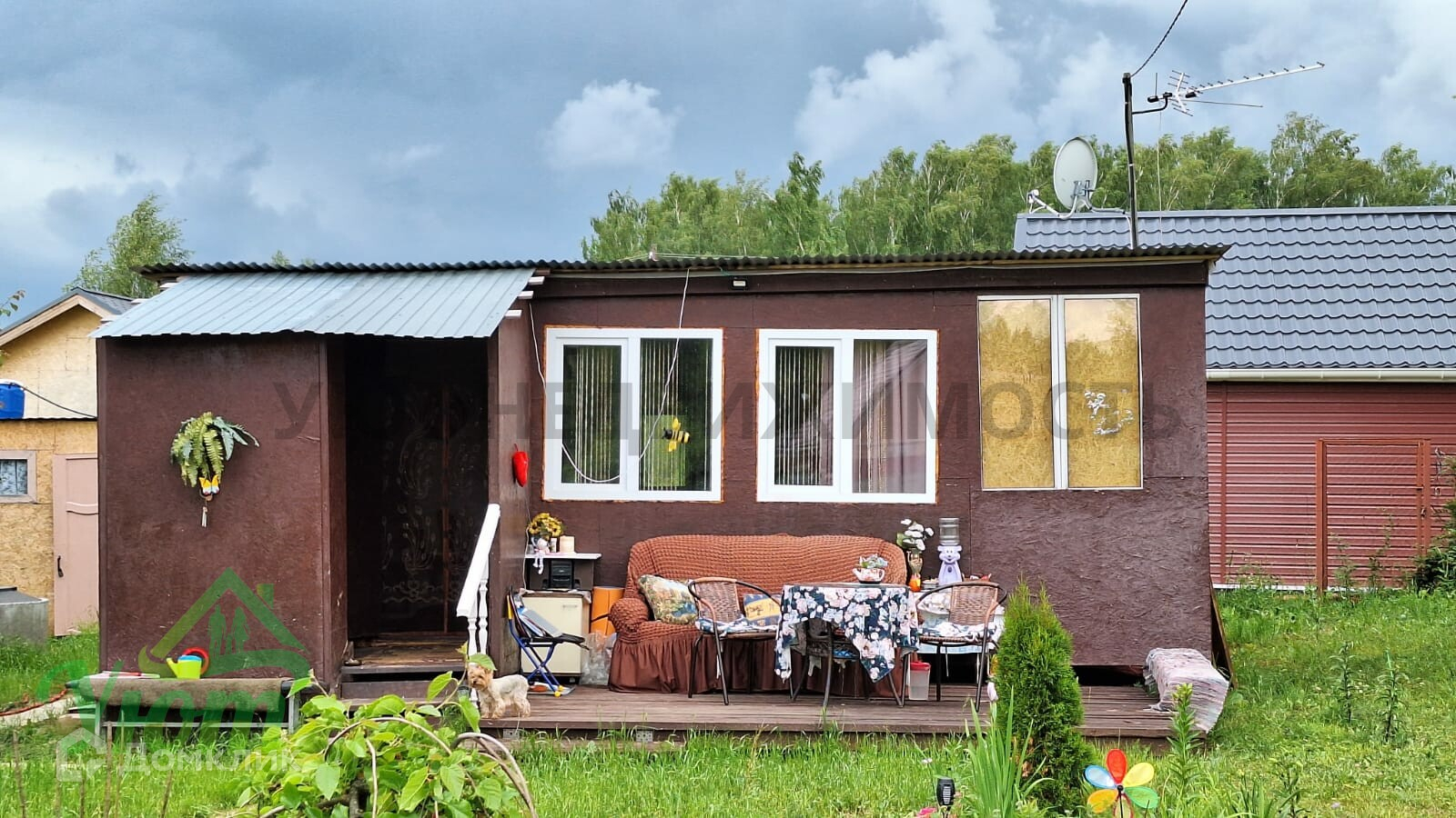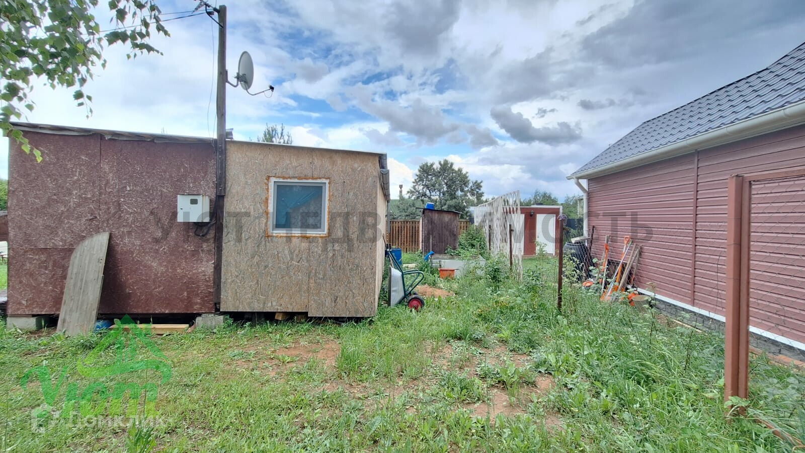Дом сделан из двух бытовок, 2 комнаты. Внутри дома есть все необходимое для комфортного проживания: мебель, бытовая техника, посуда. Свет 5 кВт, скважина. На участке расположены плодовые деревья и кустарники, а также есть место для парковки автомобиля. Участок сухой, ровный, правильной формы, облагорожен.
