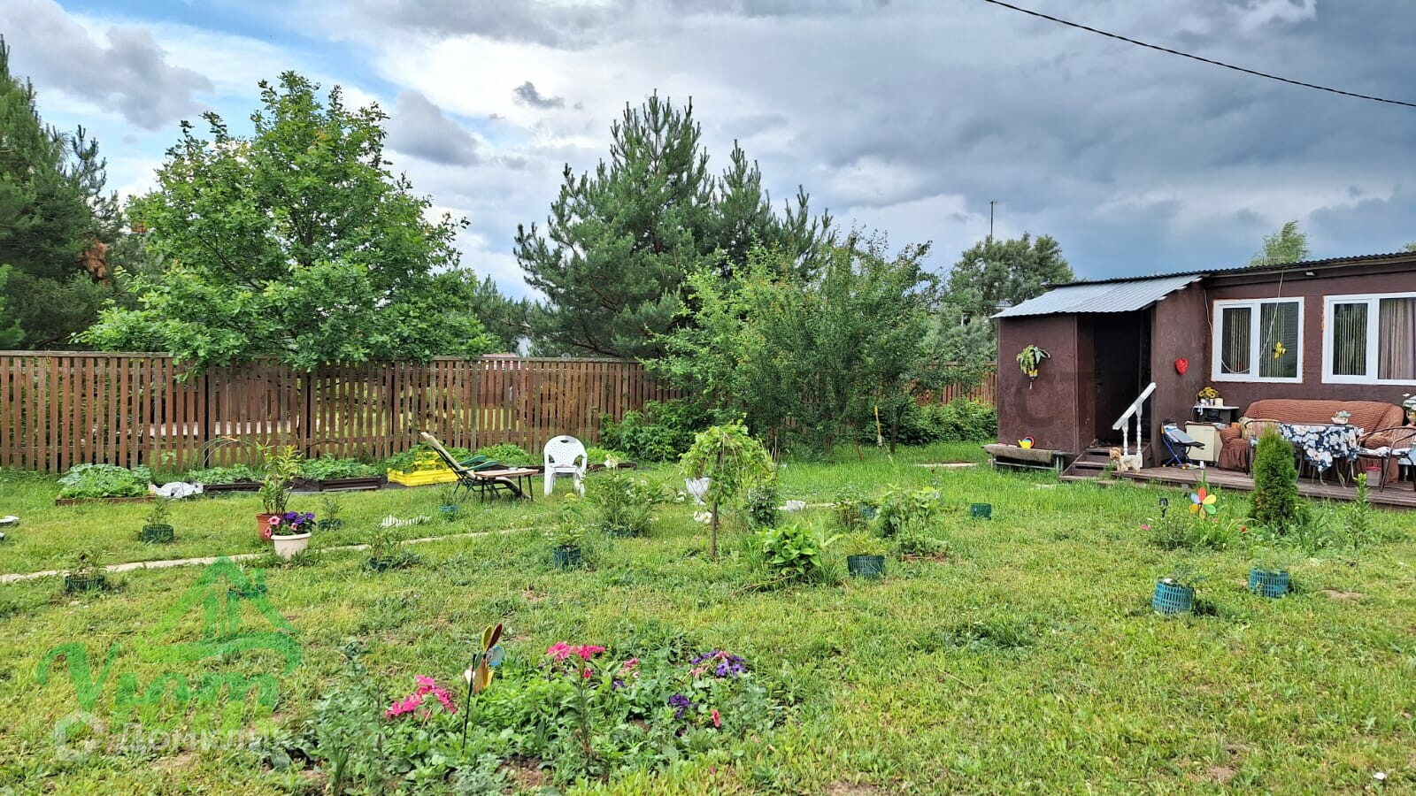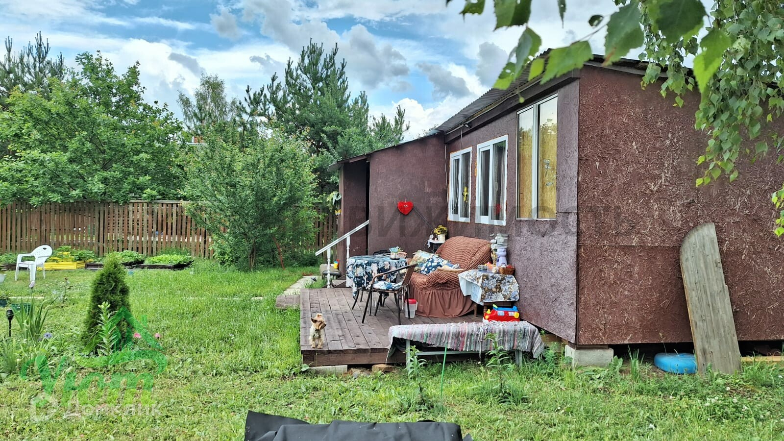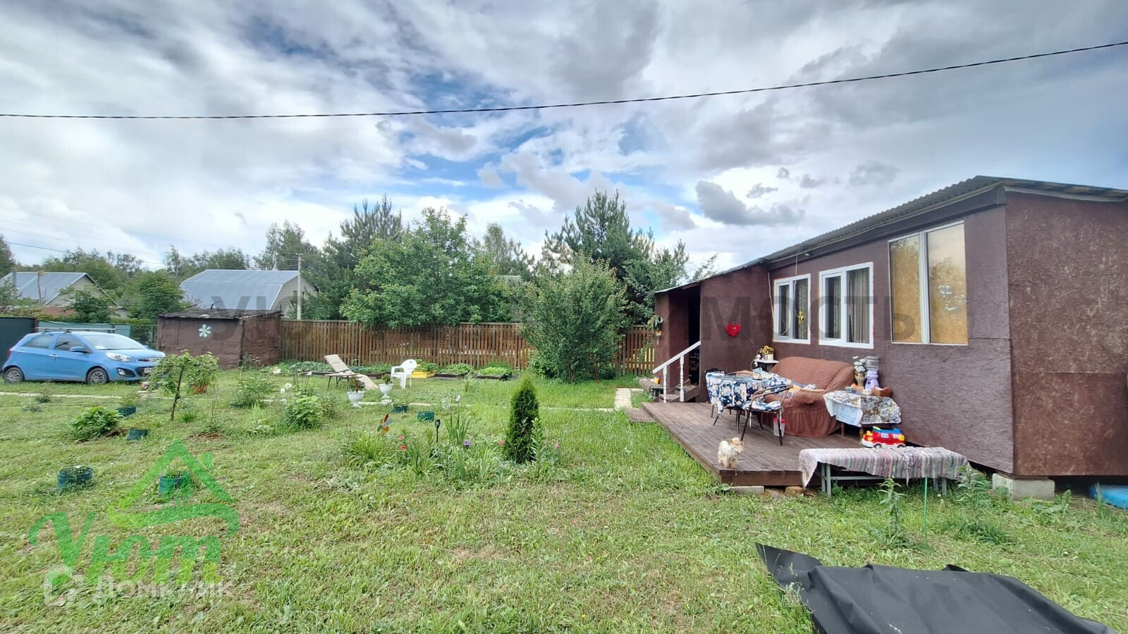 Дом сделан из двух бытовок, 2 комнаты. Внутри дома есть все необходимое для комфортного проживания: мебель, бытовая техника, посуда. Свет 5 кВт, скважина. На участке расположены плодовые деревья и кустарники, а также есть место для парковки автомобиля. Участок сухой, ровный, правильной формы, облагорожен.
