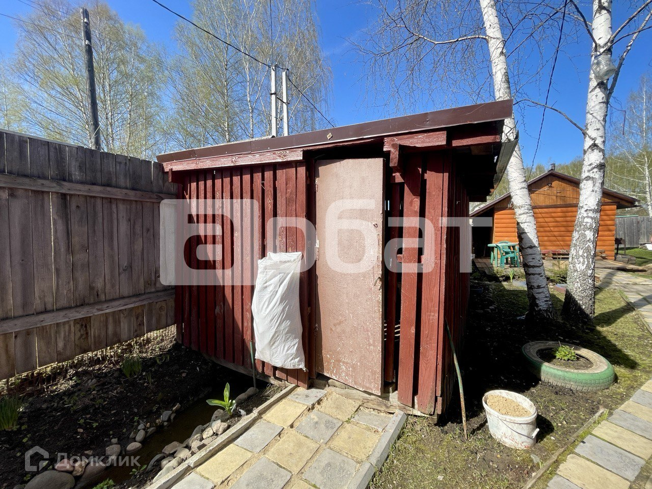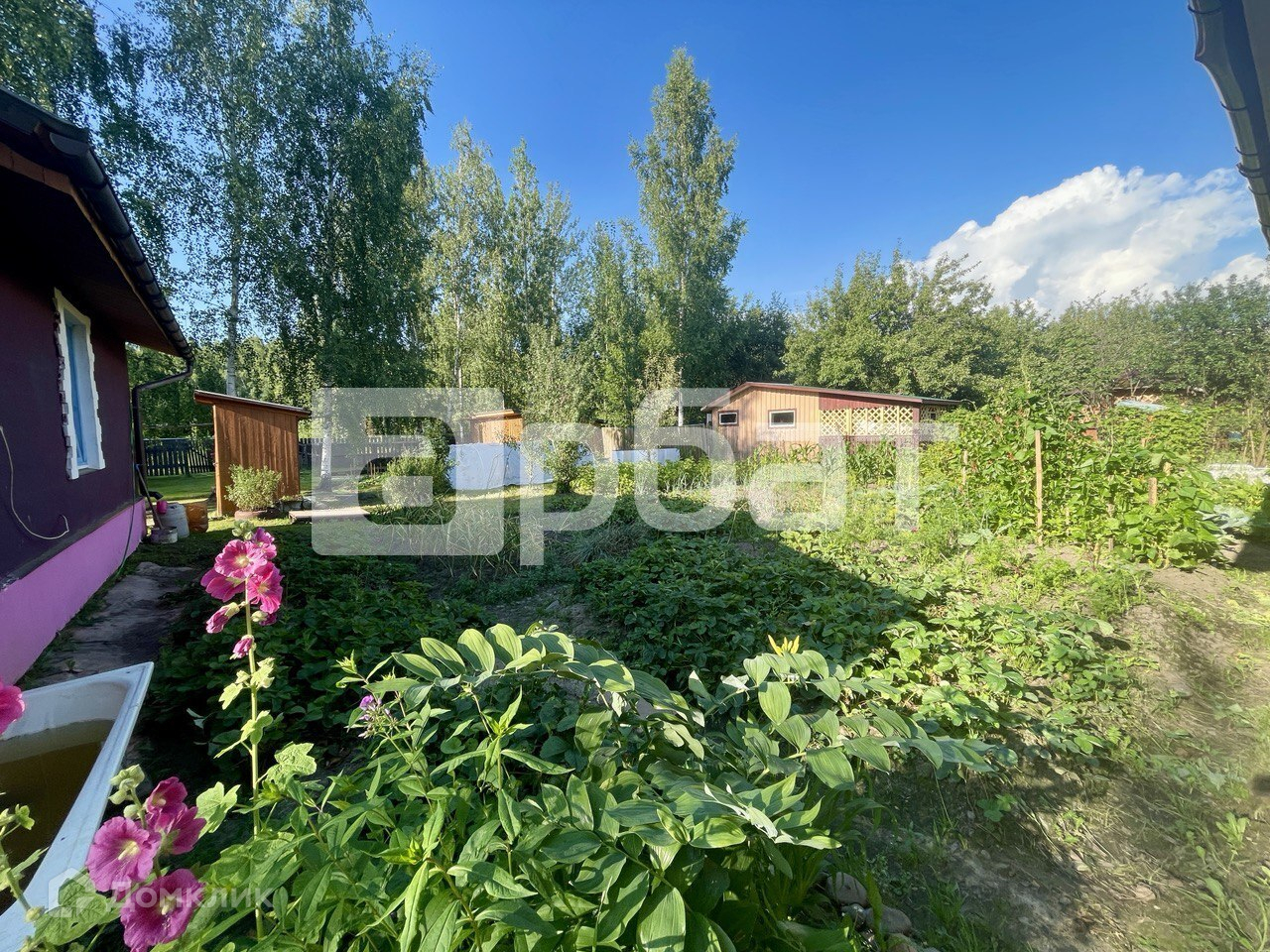 На участке расположена баня, большой гараж 6*4 м (строился под микроавтобус), дополнительное парковочное место и хозпостройки. Плодово-ягодные насаждения - груши, слива, смородина, крыжовник. Участок постоянно обрабатывается и дает хорошие урожаи.