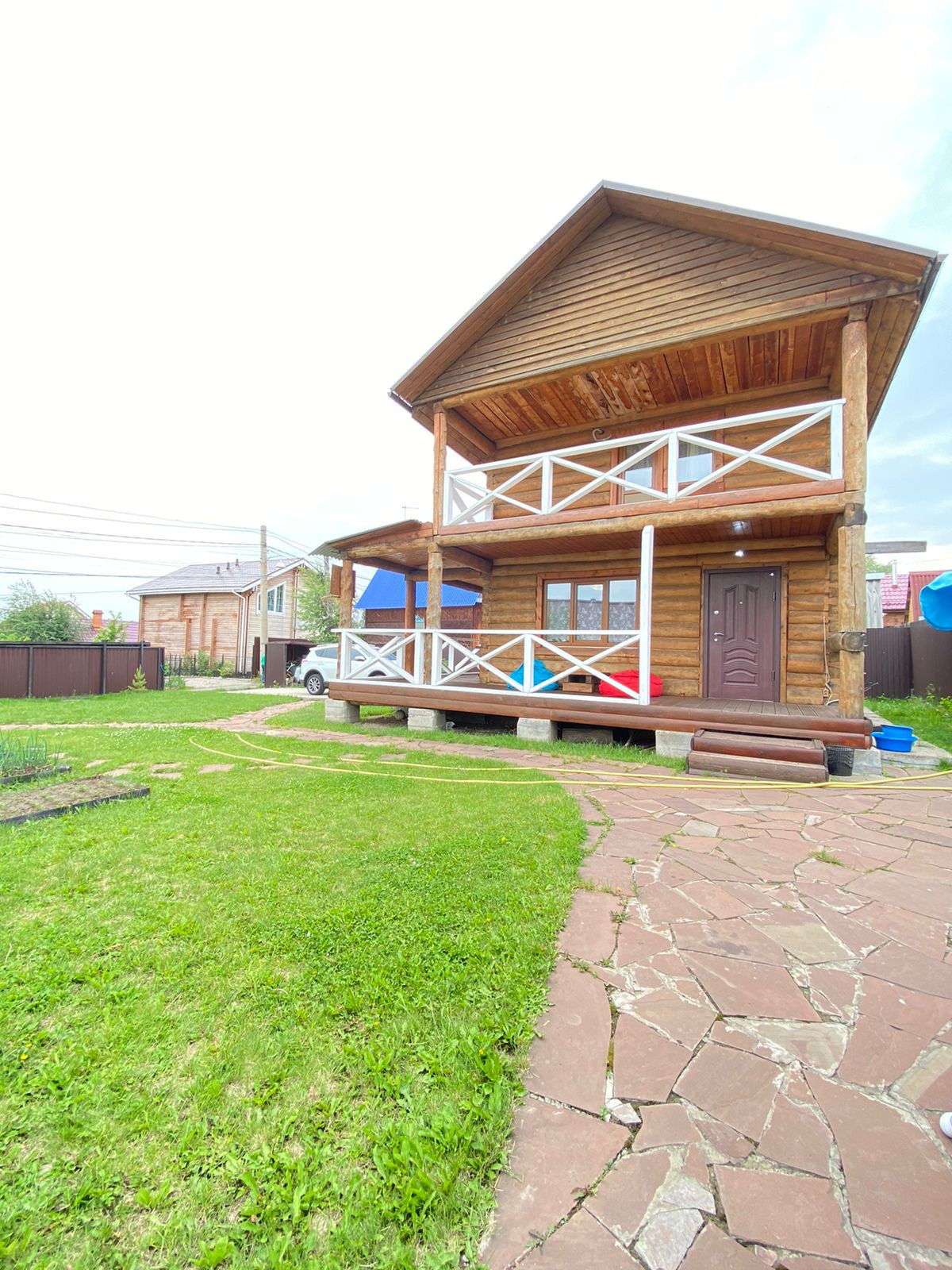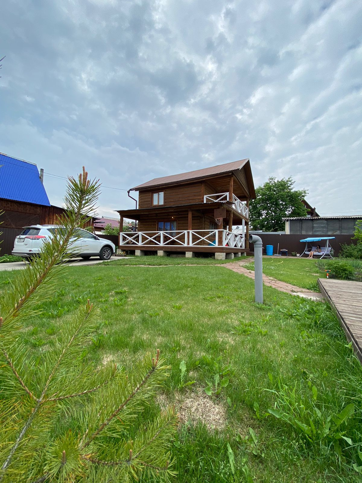 Дом использовался как дача: выезды в летний период для уединенного отдыха, купания детей в бассейне установленном на собственном подиуме, где также помещаются шезлонги, занятием огорода, уходом за зелеными насаждениями и просто проведением свободного времени от городской суеты в прекрасных, облагороженных условиях. Летний водопровод, есть возможность сделать скважину и завести воду  в специальную комнату на 1м этаже, а также установить бойлерную и сан.узел.