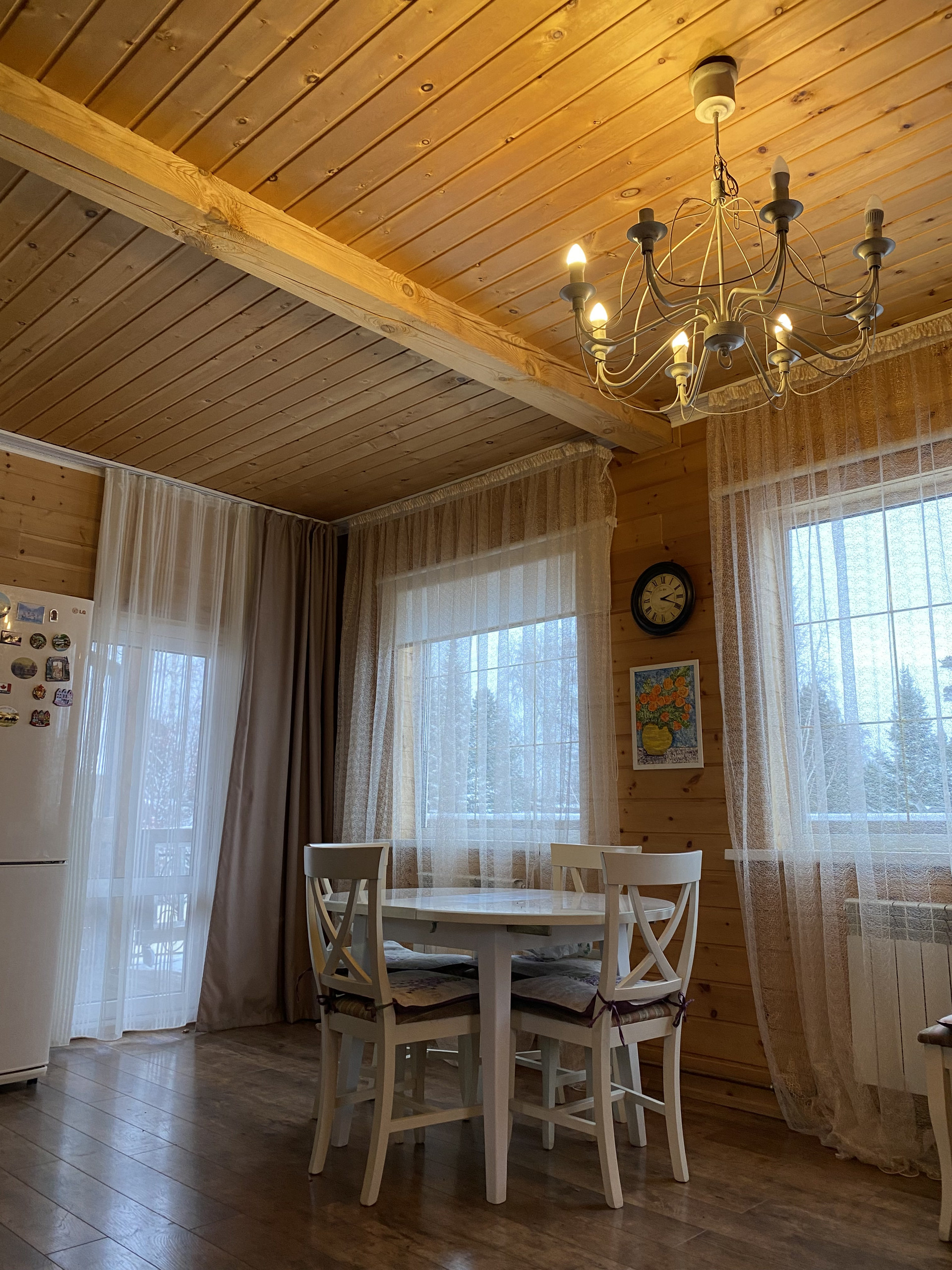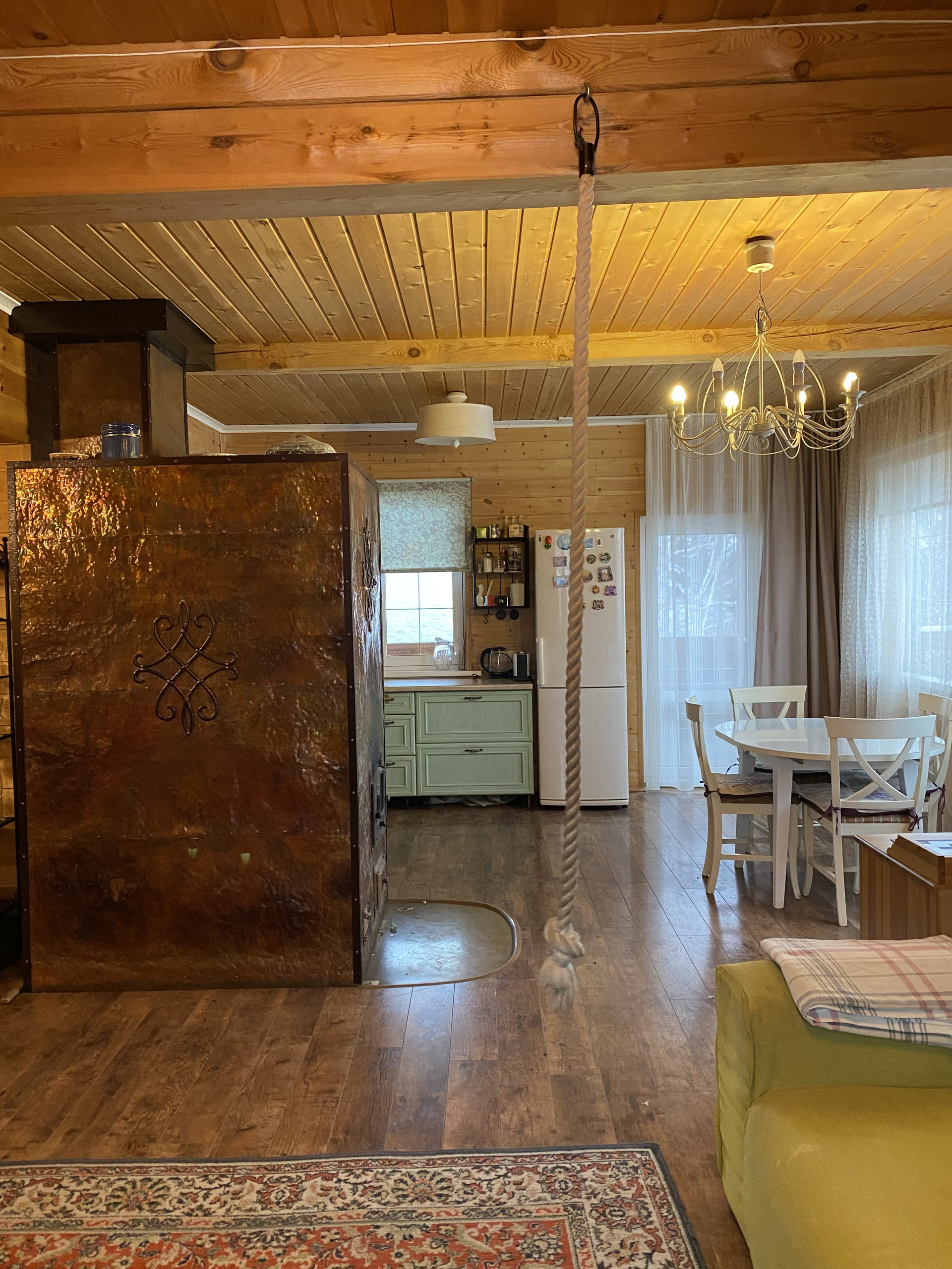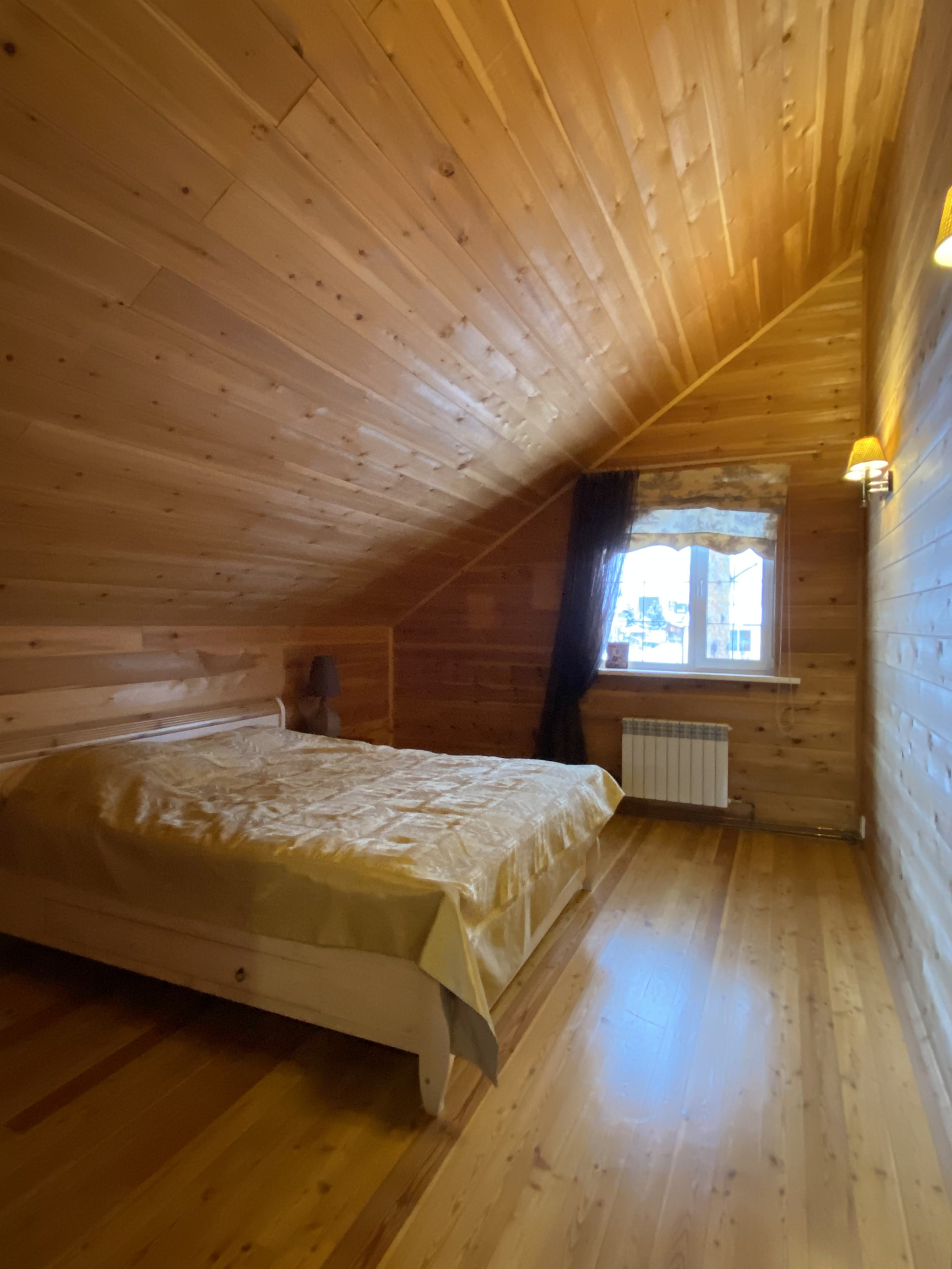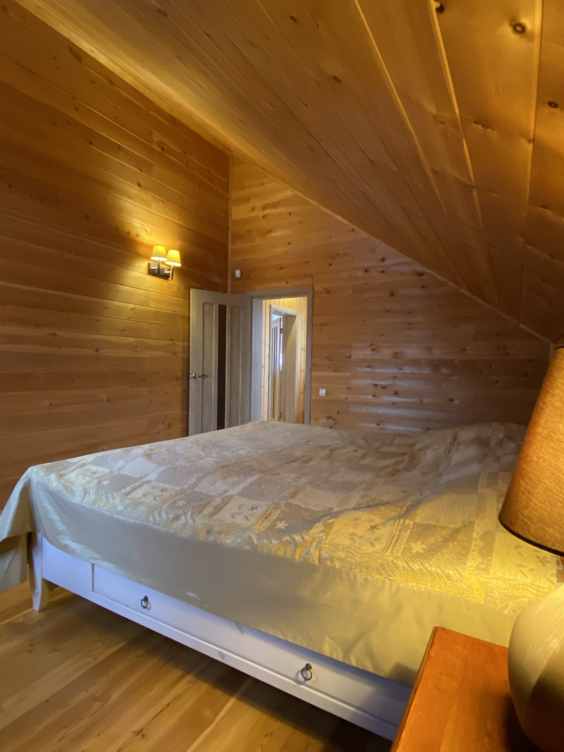 С первого на второй этаж – авторская лестница из массива дерева. Второй этаж обшит кедром, что создаёт в доме невероятно приятный аромат и ощущение уюта. В доме мягкий, тёплый свет. Изюминка дома - дровяная печь.