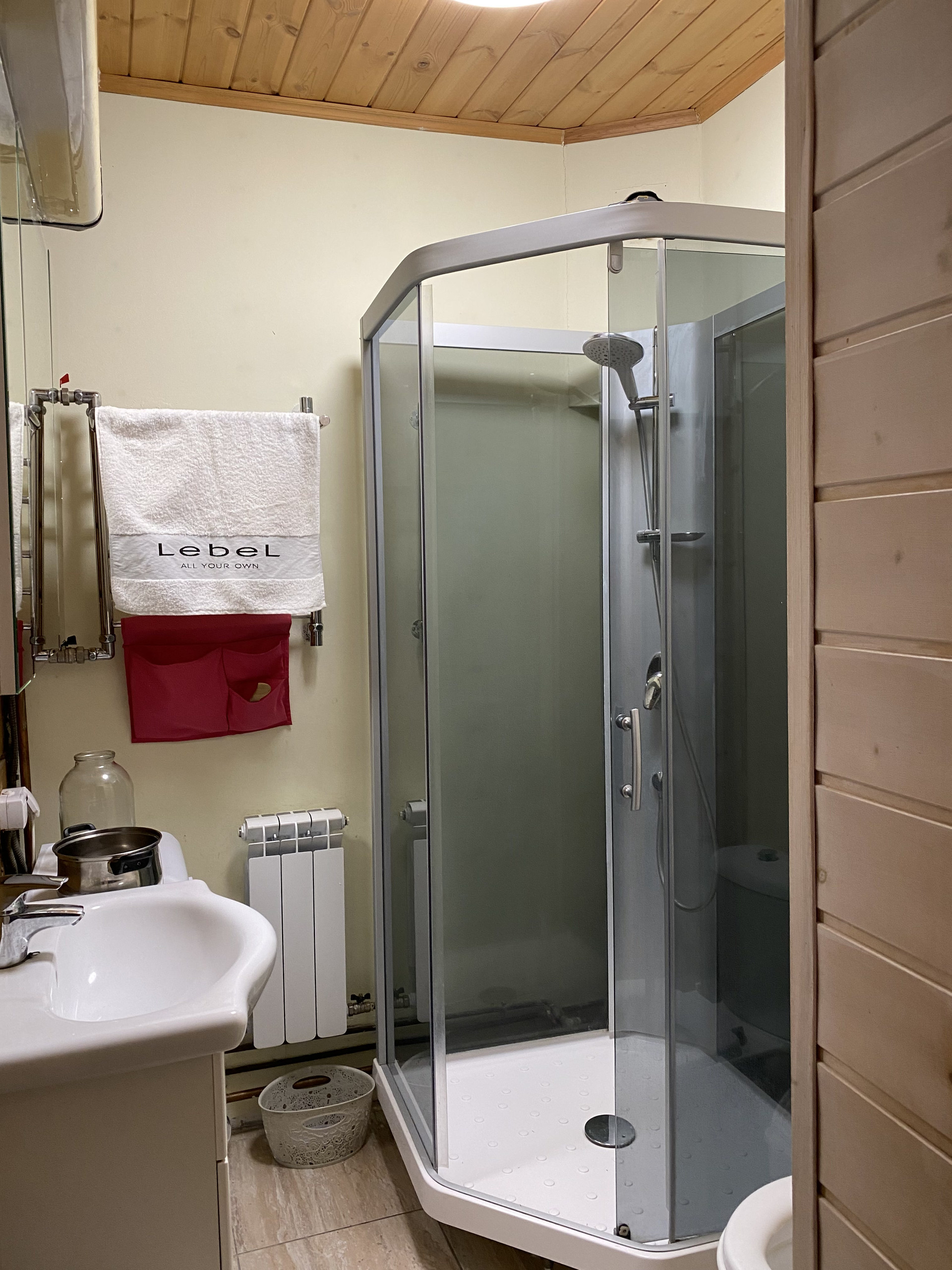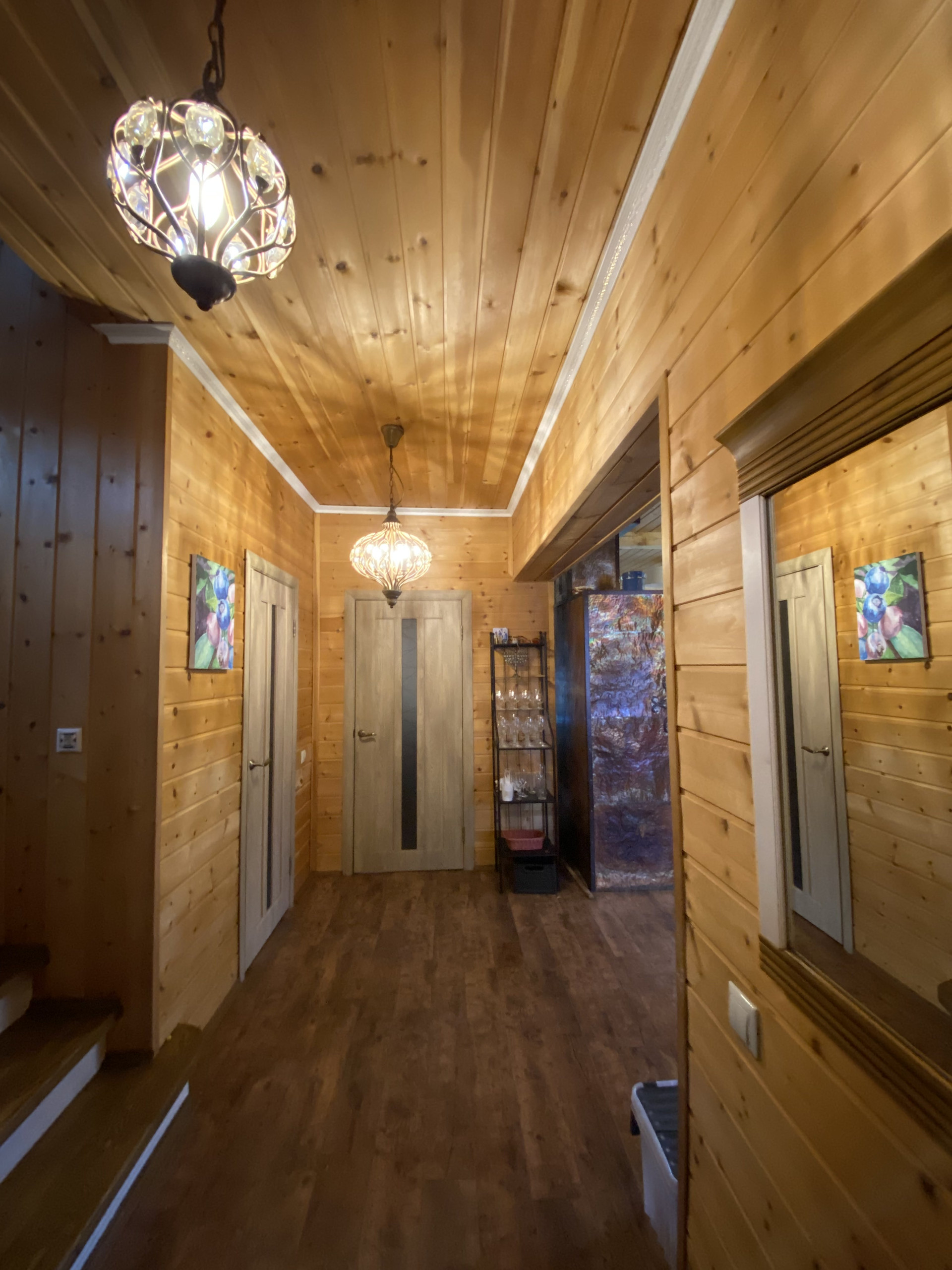 1 этаж: гостиная, просторная кухня, коридор, санузел с душевой кабиной, гардеробная, бойлерная, спальная комната;