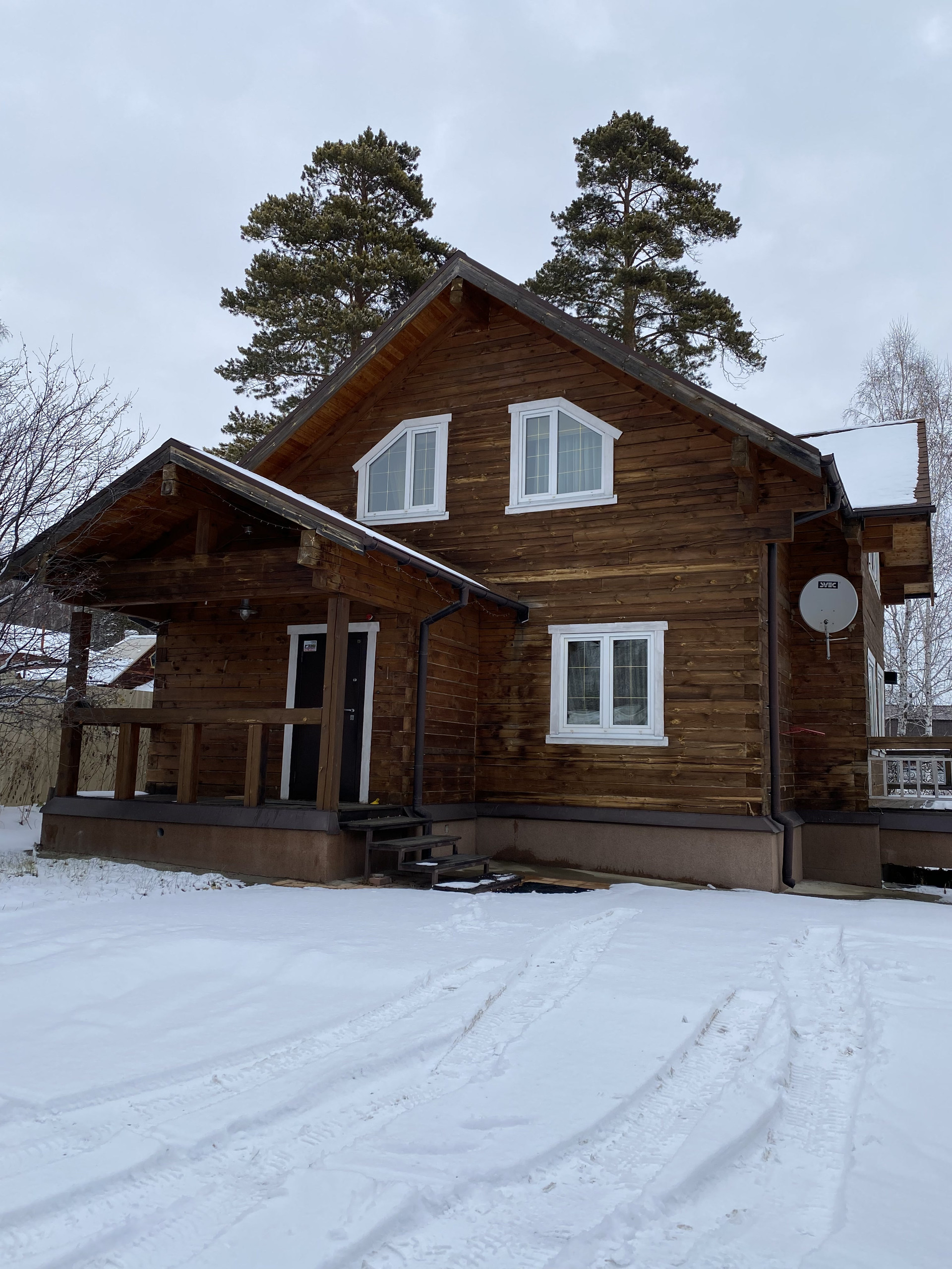 В доме скважина 35 метров, септик три кольца 6,5 кубов, электричество 18 кВт, спутниковая TV антенна, водяная система отопления.