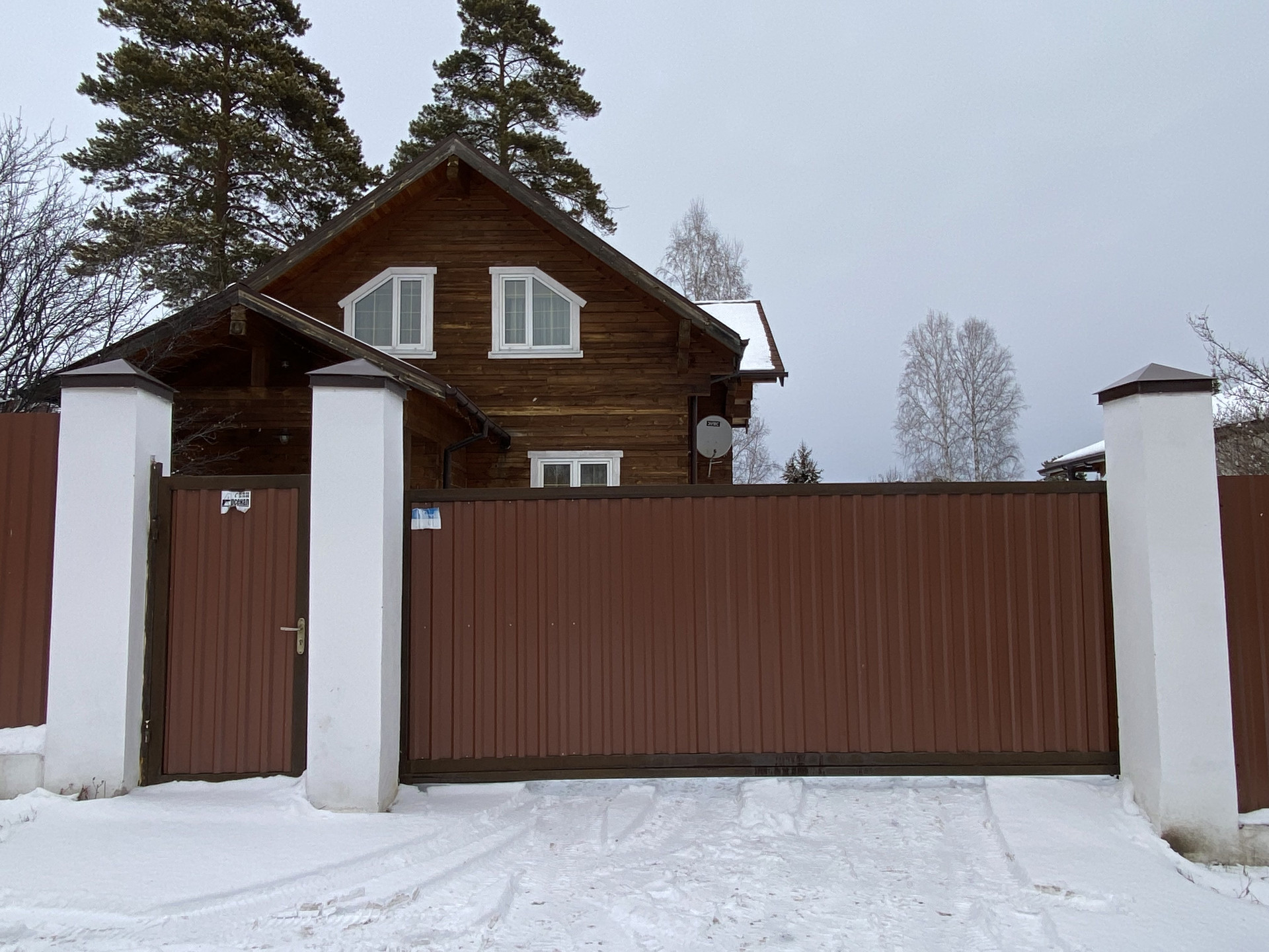 Участок огорожен: лицевая сторона - профлист на кирпичных столбах, откатные автоматические ворота, калитка. Остальной периметр забора – профлист.