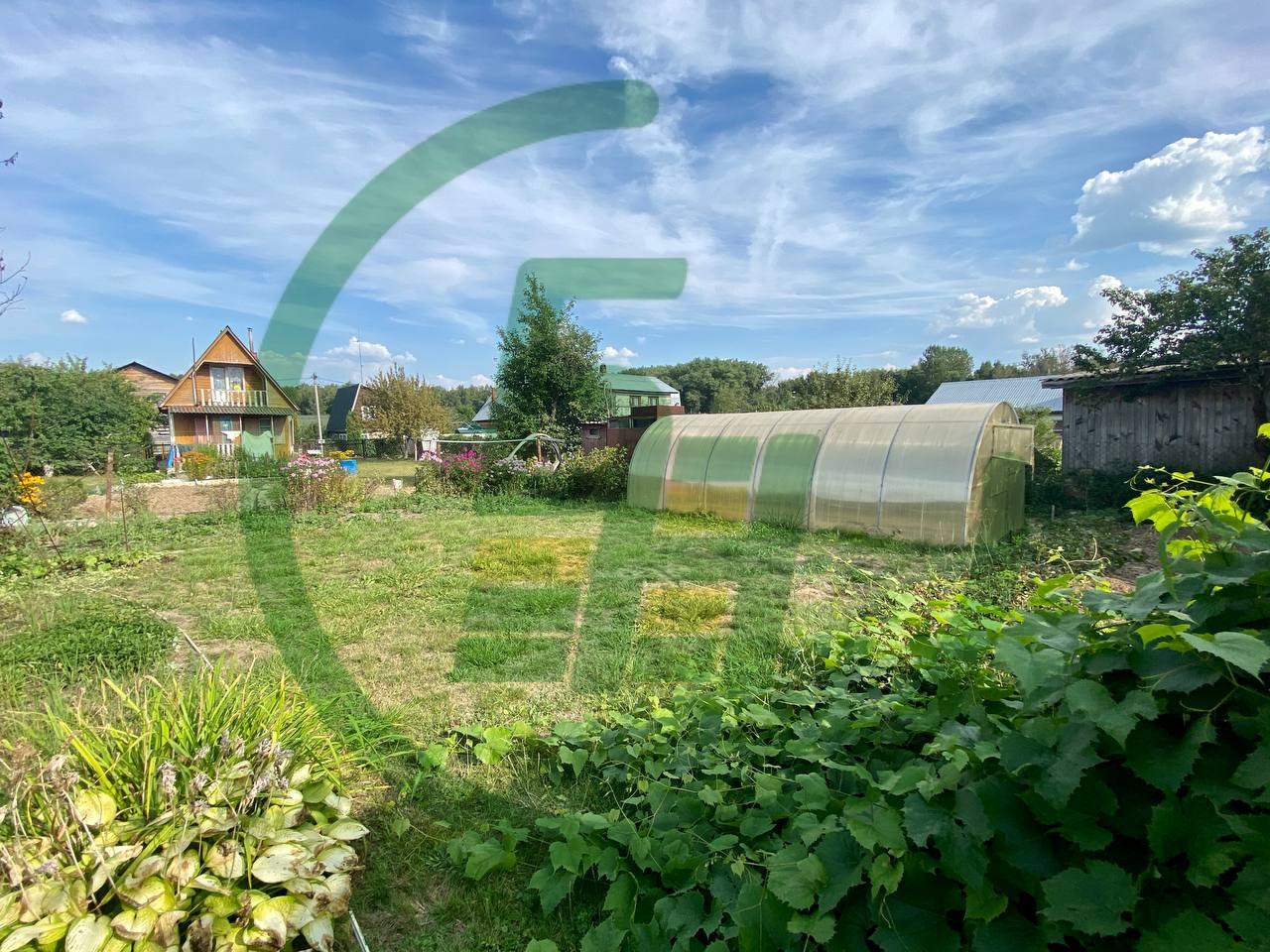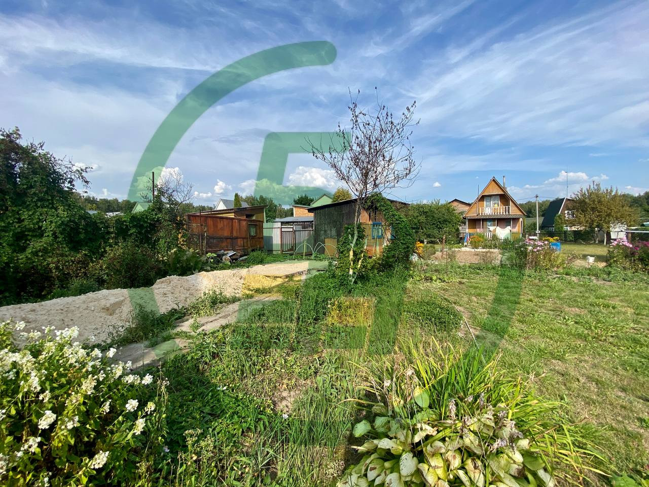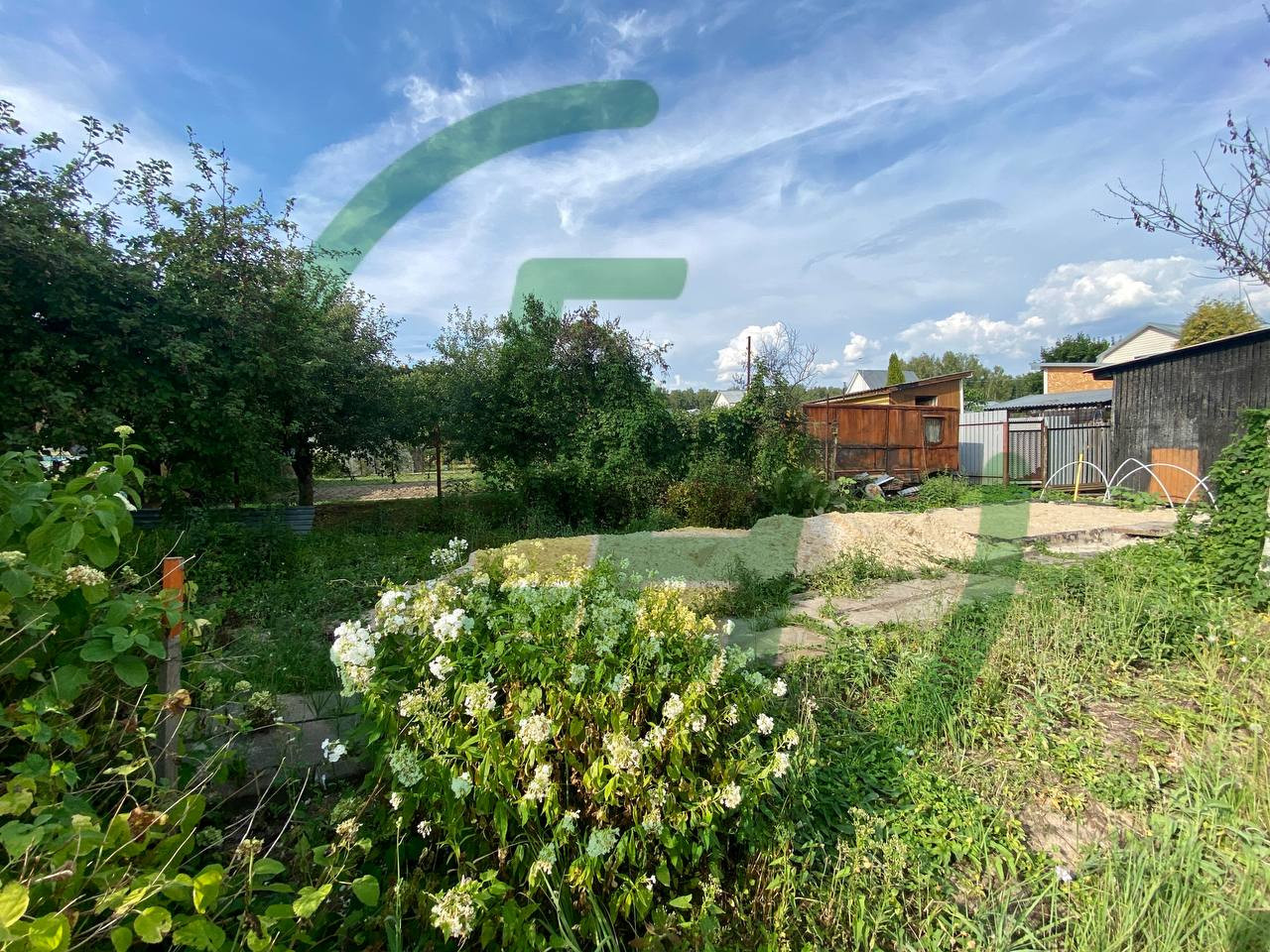 Участок ровный, 7 соток и дачный двухэтажный дом из бруса на бетонном фундаменте. Газ проходит по границе, подведён к забору. Электричество 15 кВт. Водоснабжение сезонное. Есть возможность разработать скважину на Вашем участке, глубина которой будет не более 25 м.