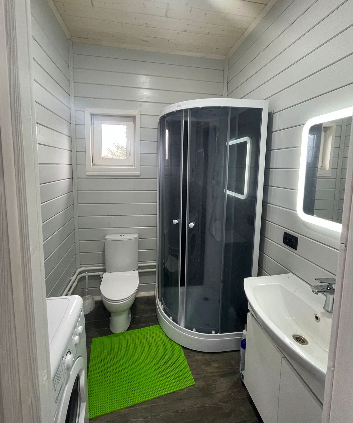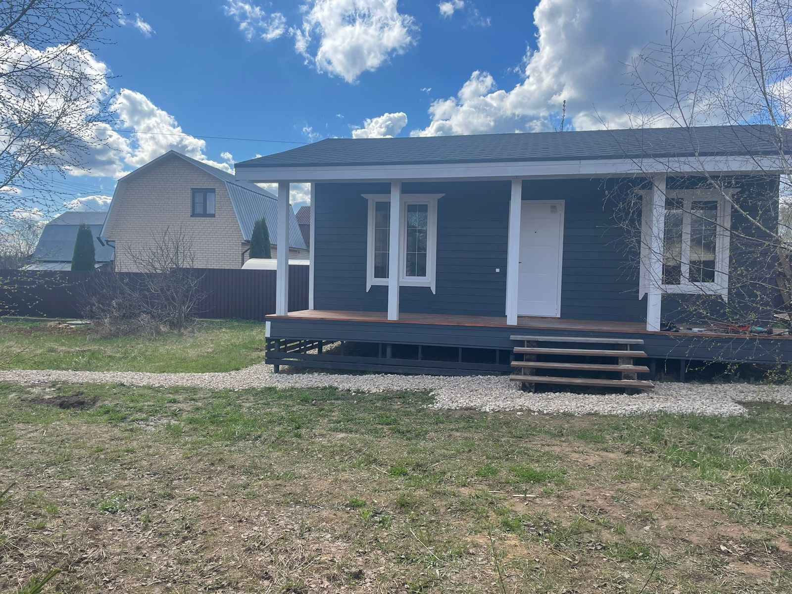 Участок 6 соток , сухой , огорожен забором , ворота. Площадка под автомобиль , дорожки . На участке плодовые , кустарники , елки и березки . Скважина 45 м с питьевой водой . Септик . Сан узел в доме . Дом 50 м , каркасный , кровля мягкая черепица , утепление зимнее .+ просторная терраса . В доме кухня , с/у с душевой кабиной ,стиральной машиной . На участке баня .